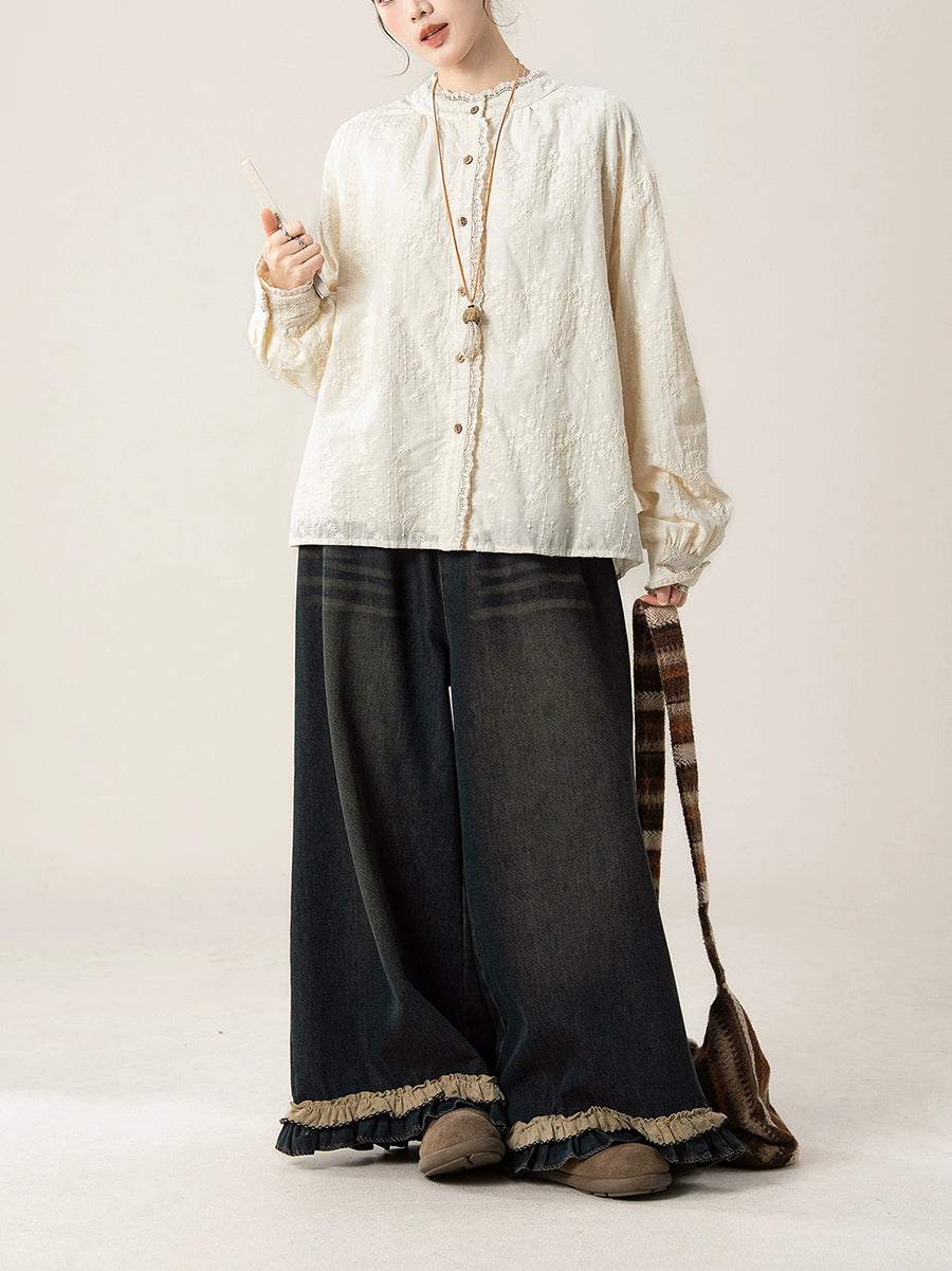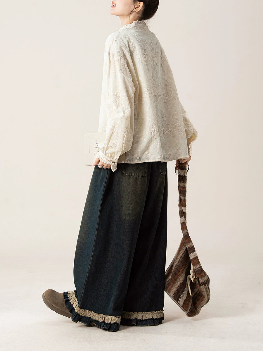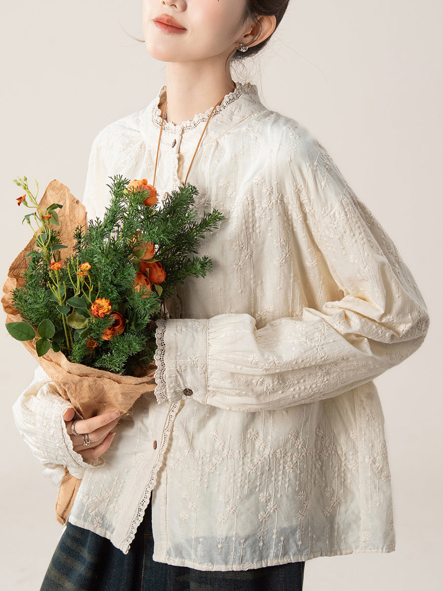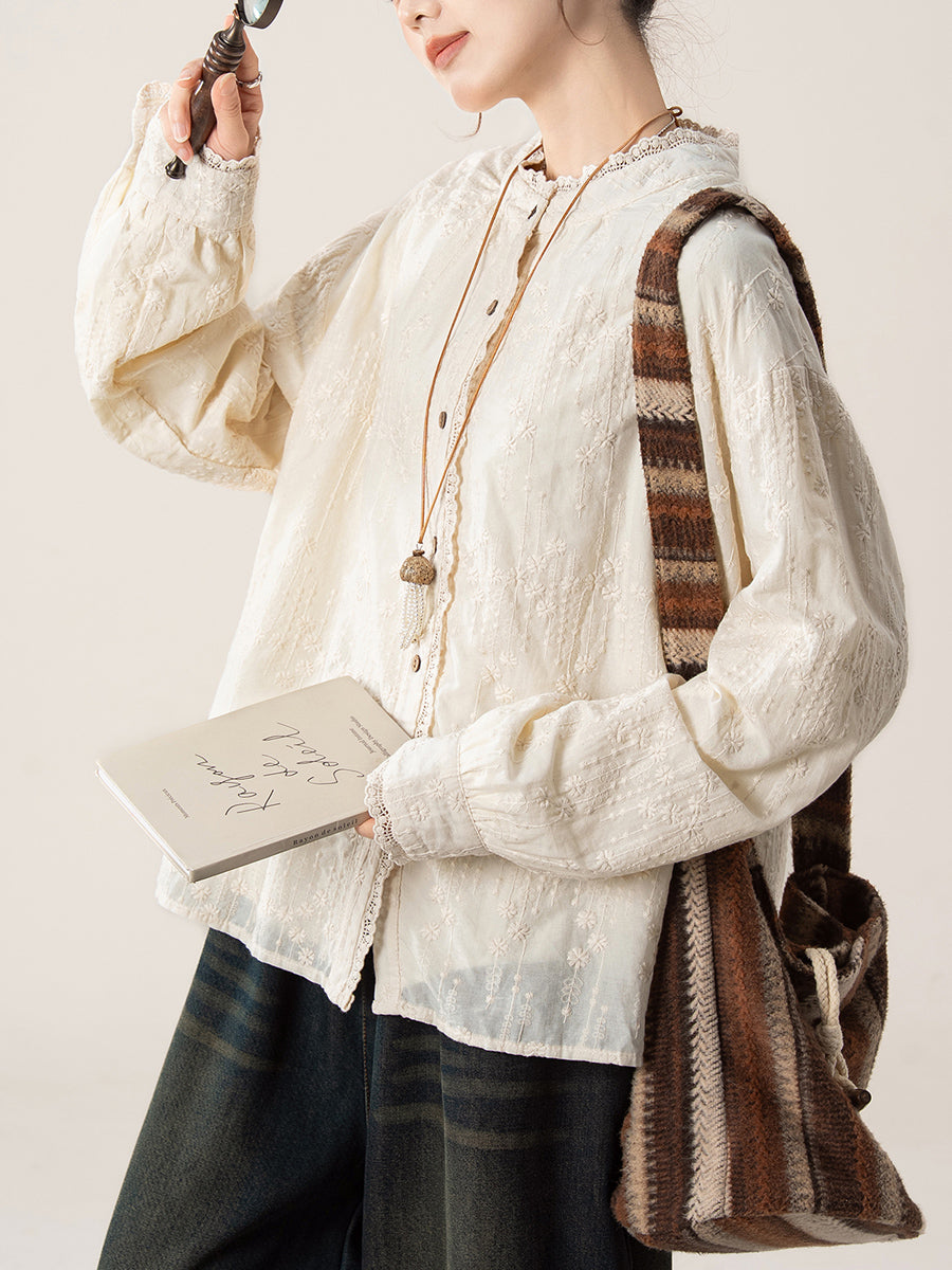 Dámská umělecká podzimní výšivka s krajkovým límcem