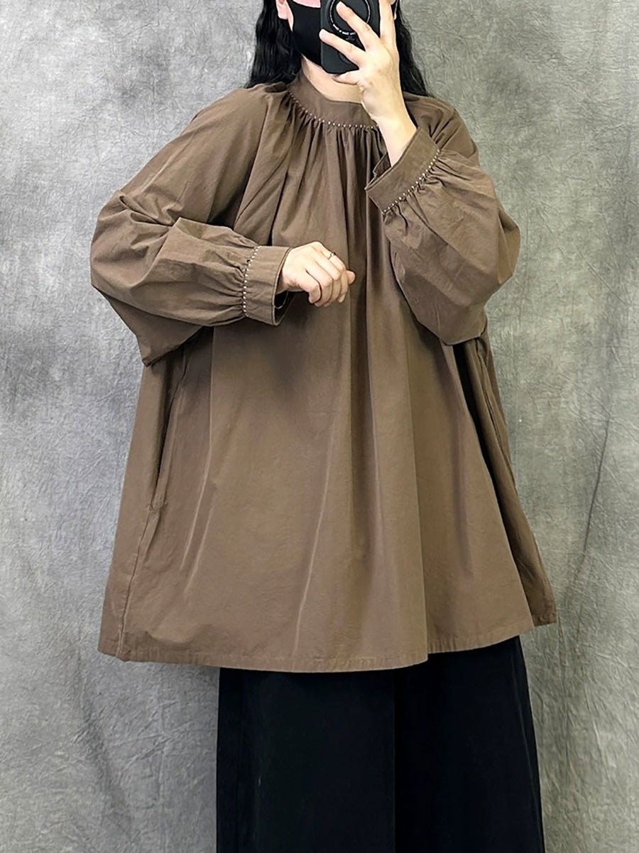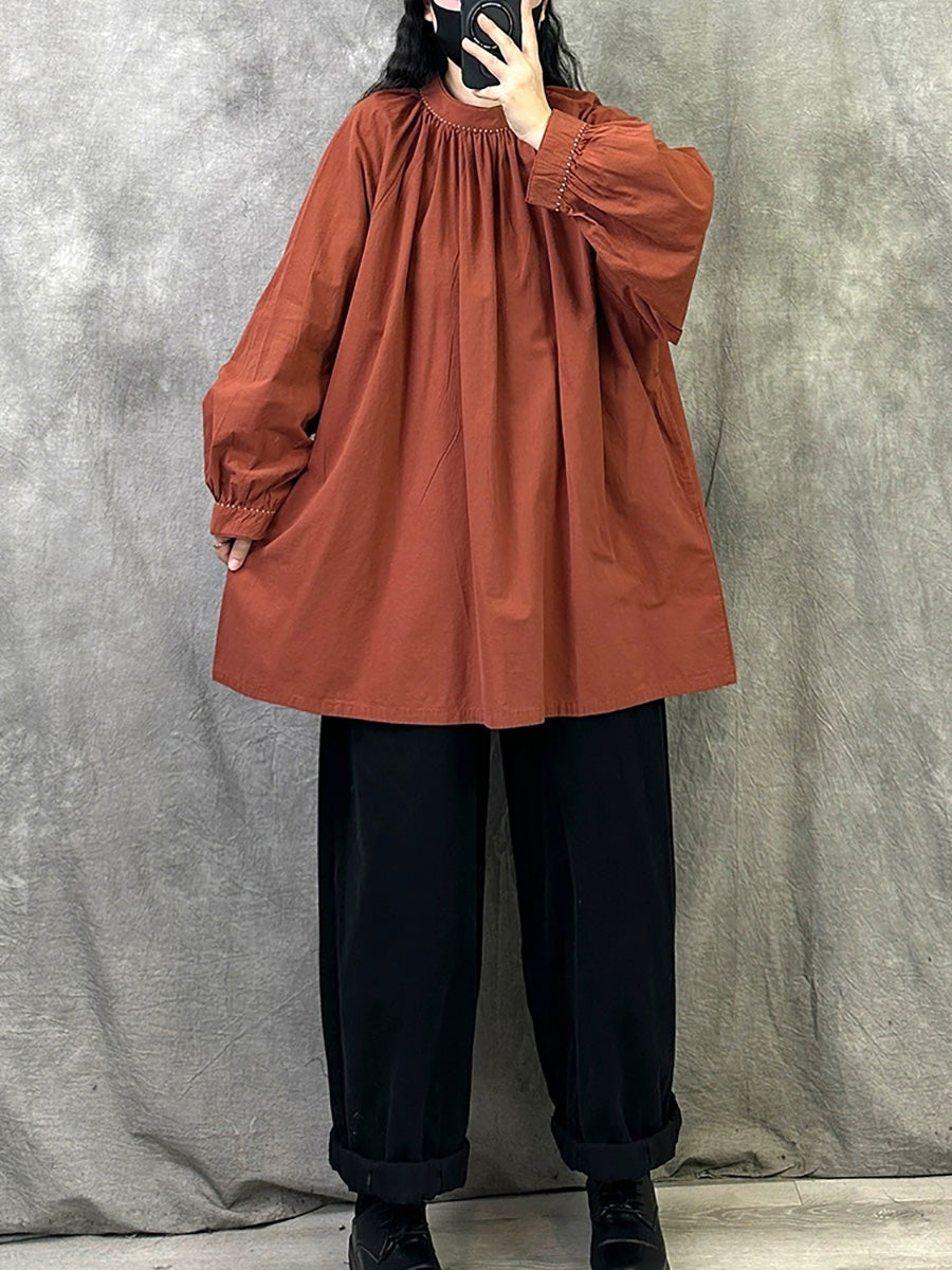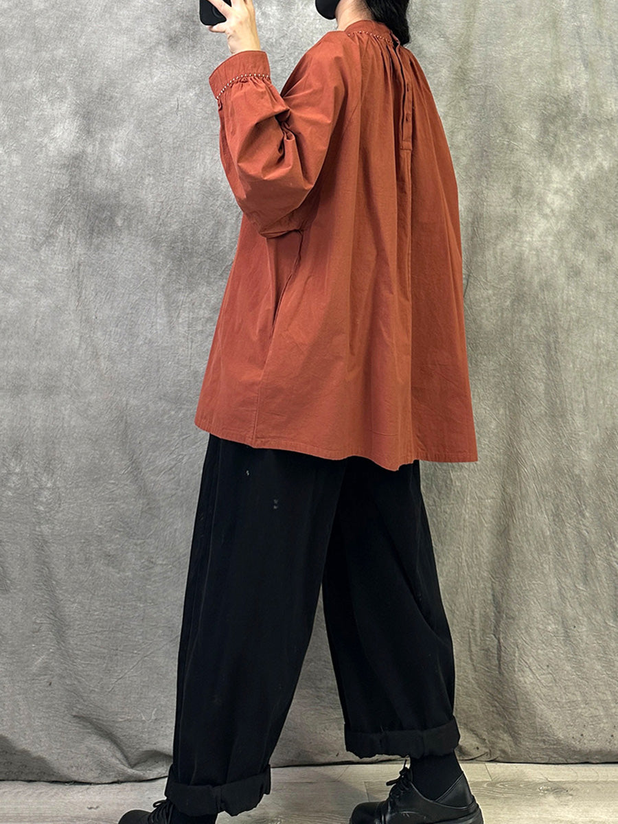 Dámská umělecká podzimní čistě barevná halenka se stojáčkem