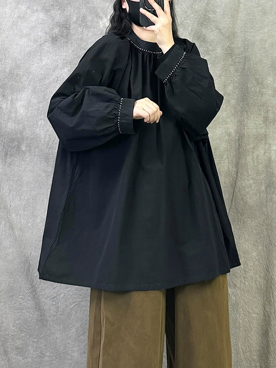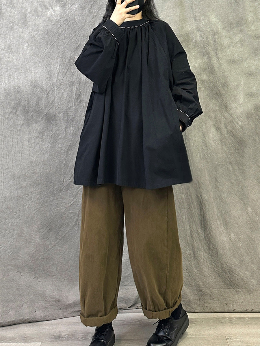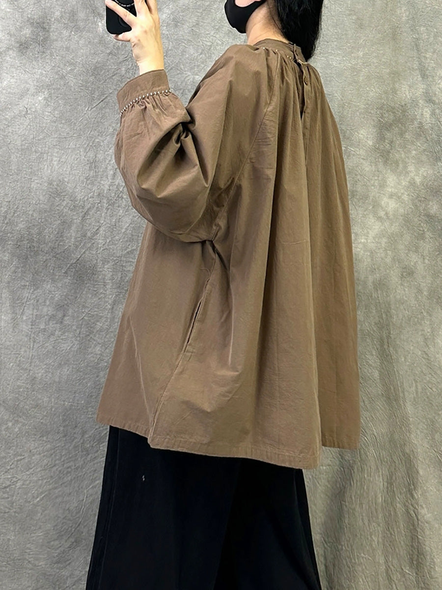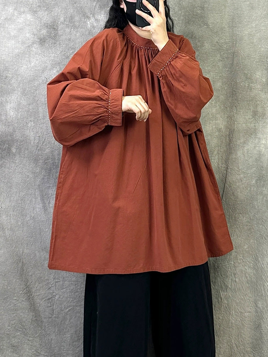 Dámská umělecká podzimní čistě barevná halenka se stojáčkem
