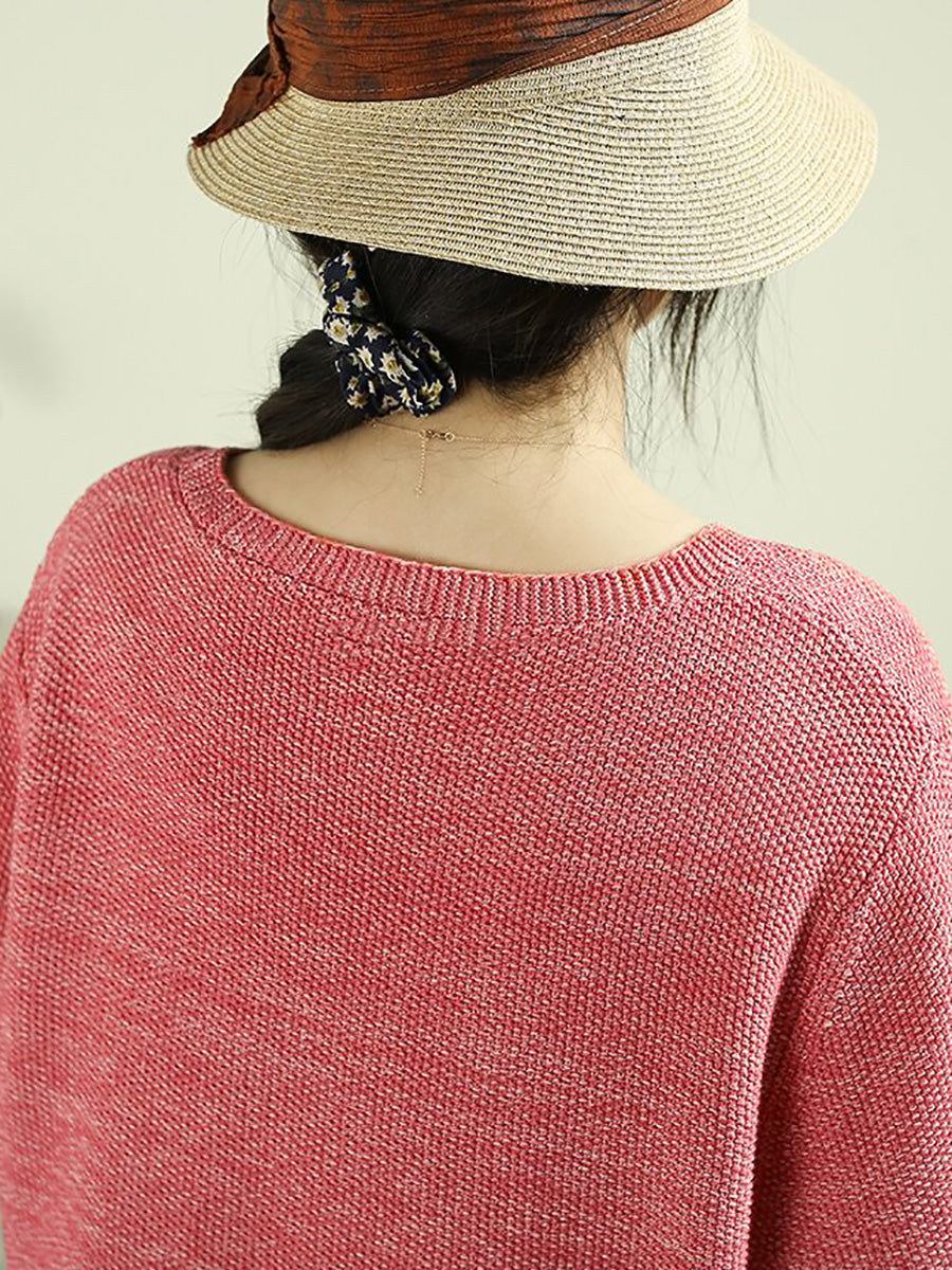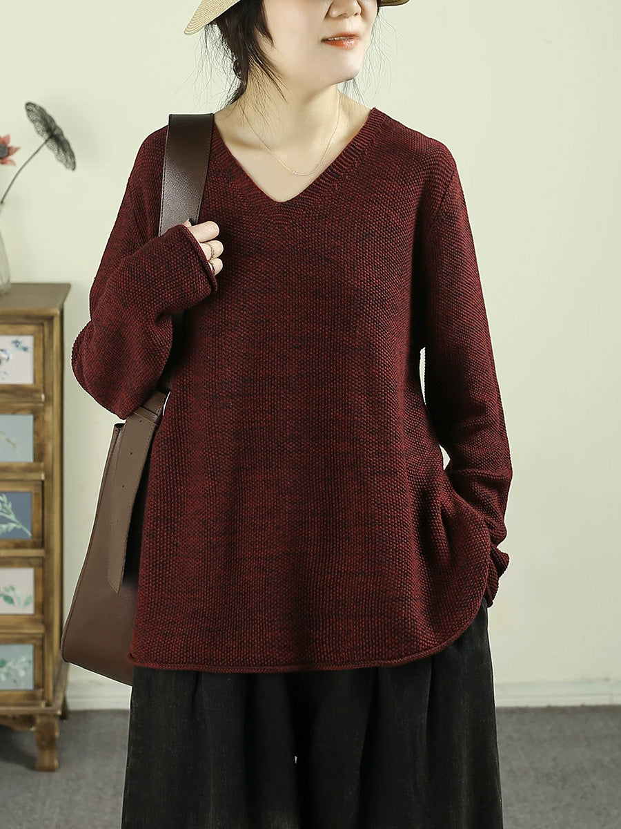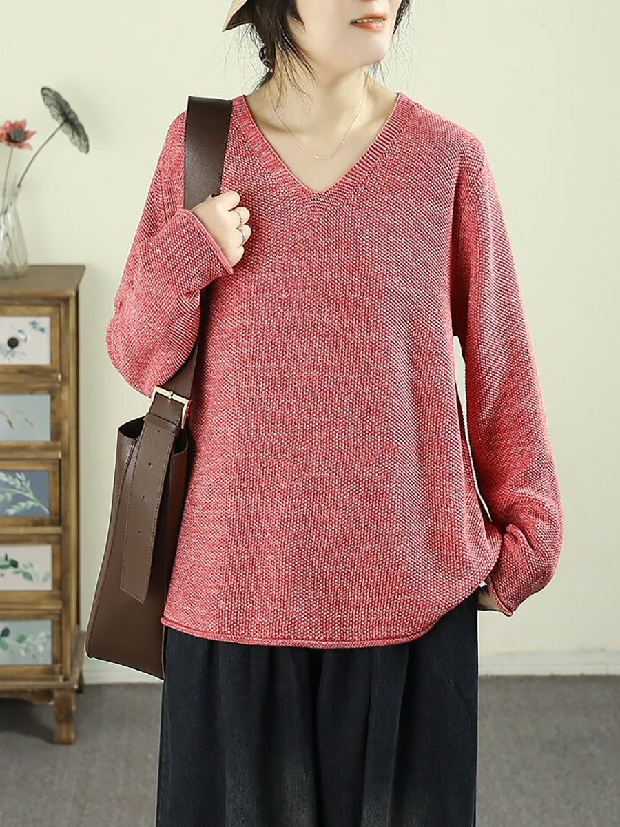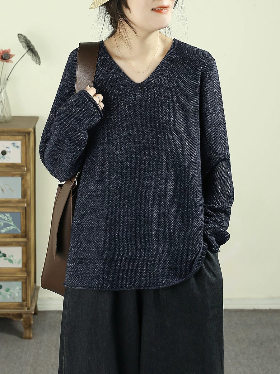 Dámský umělecký jarní ležérní čistě barevný svetr s výstřihem do V