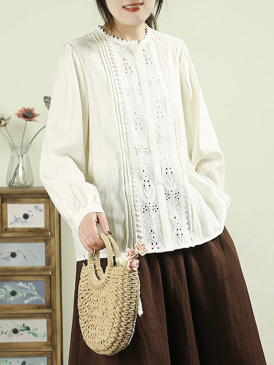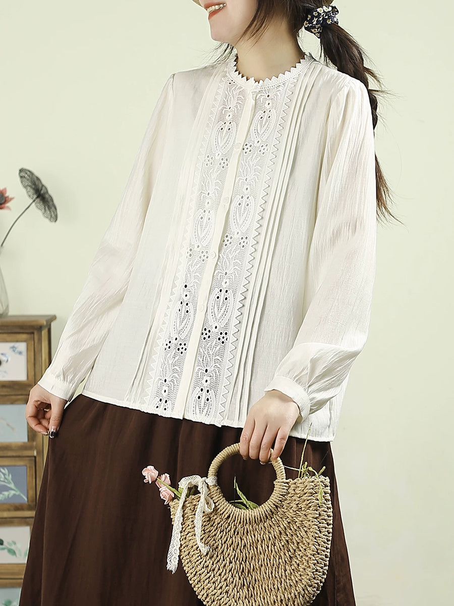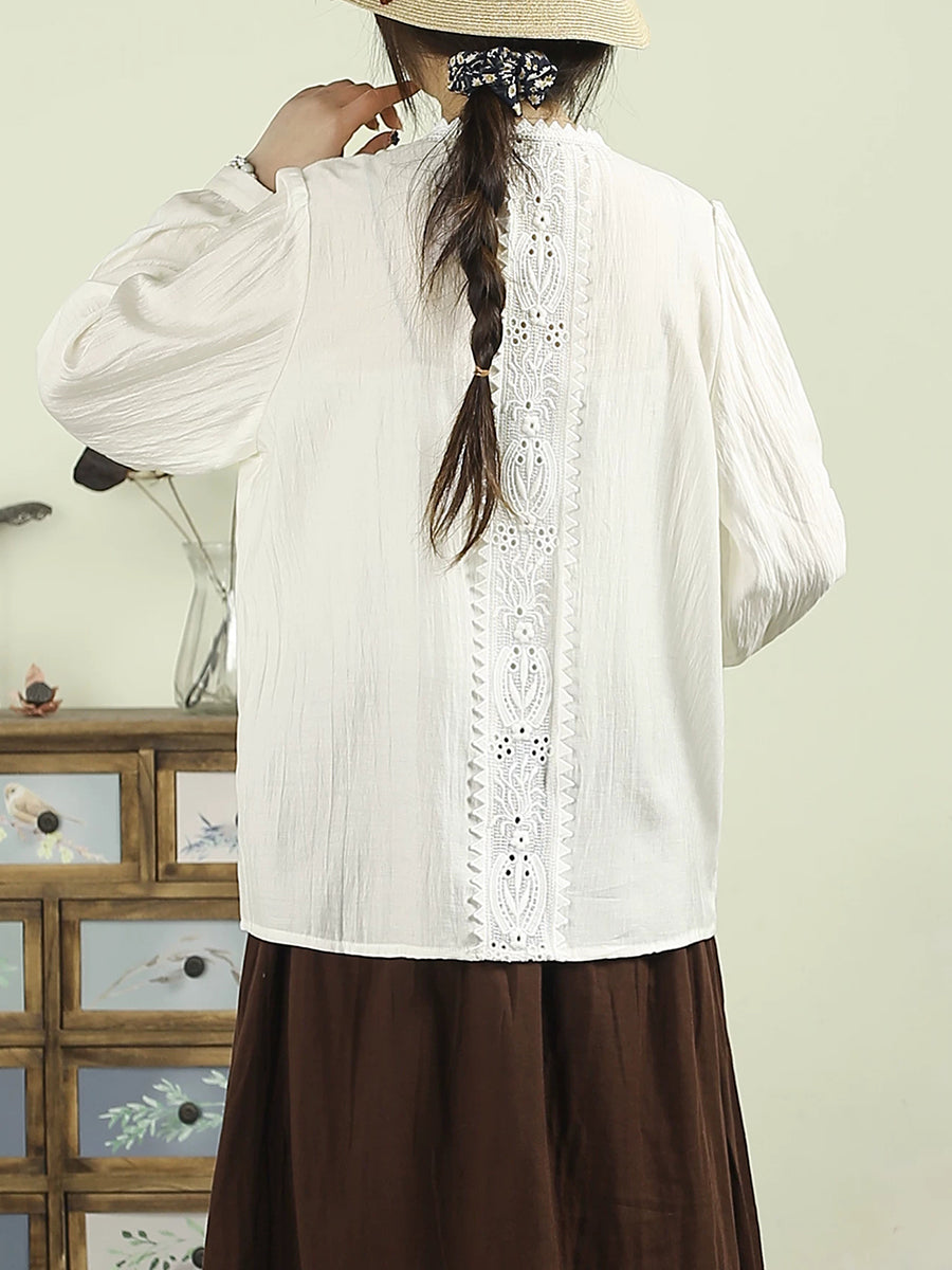 Dámská umělecká jarní výšivka s krajkou a sešitými rukávy