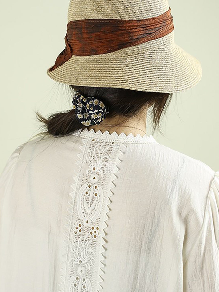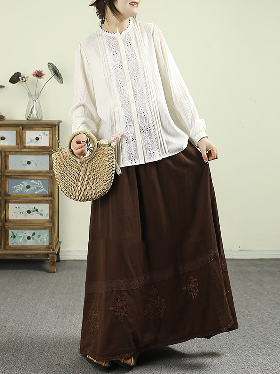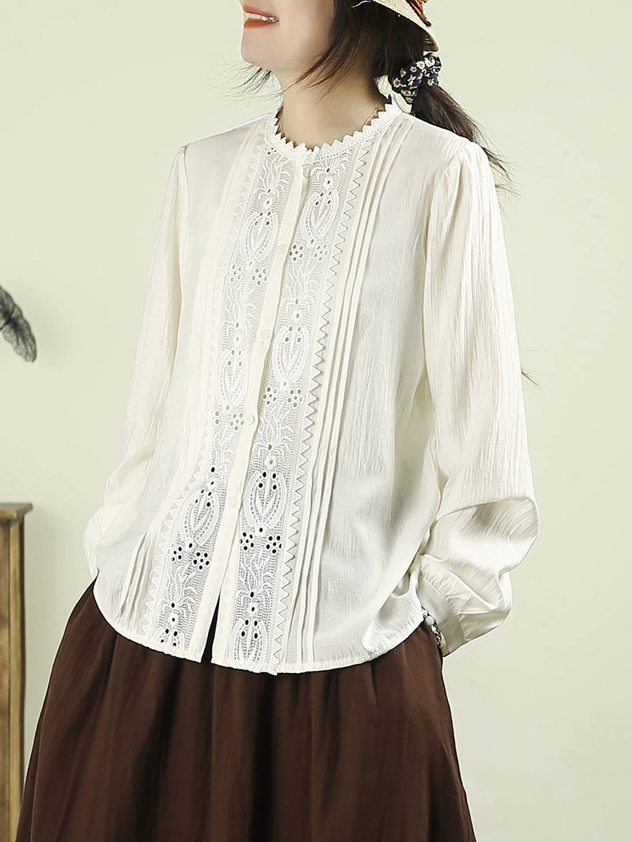 Dámská umělecká jarní výšivka s krajkou a sešitými rukávy