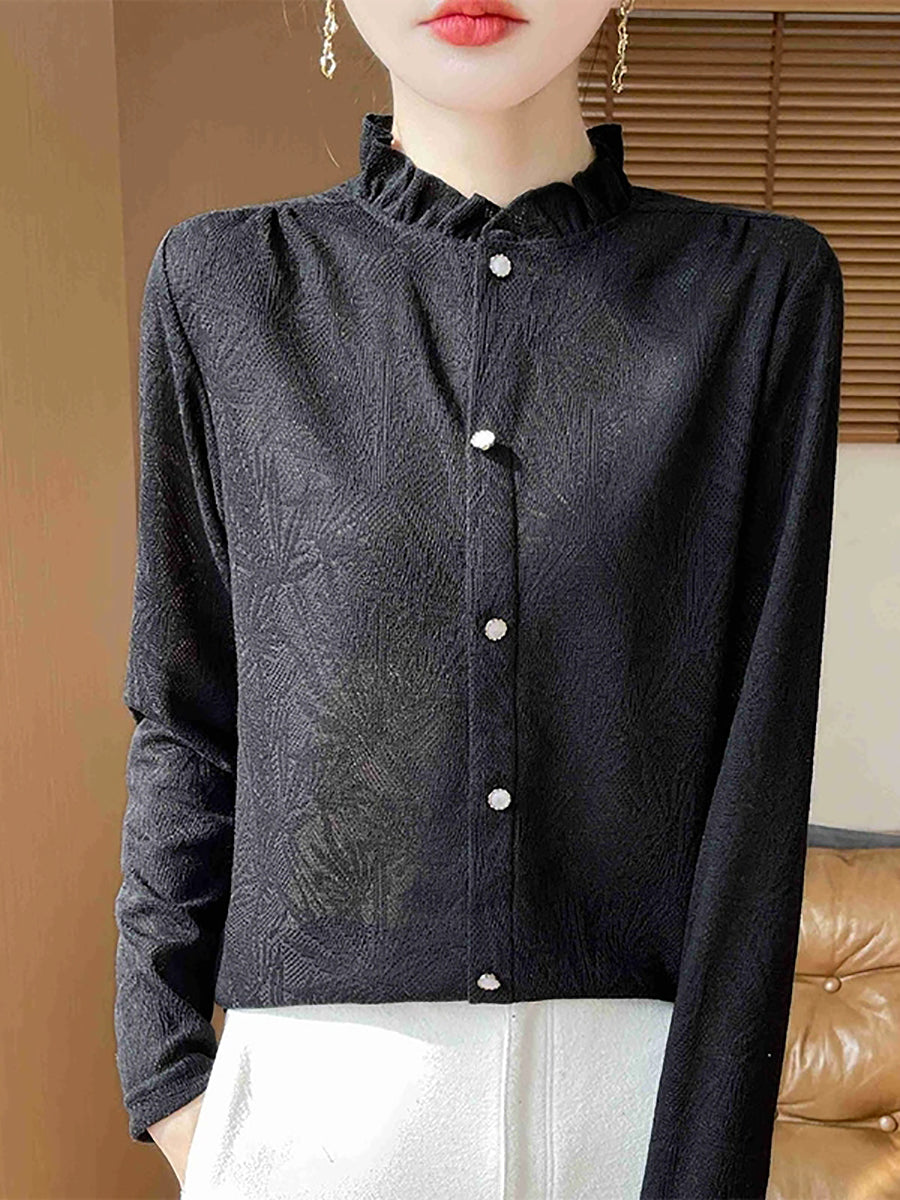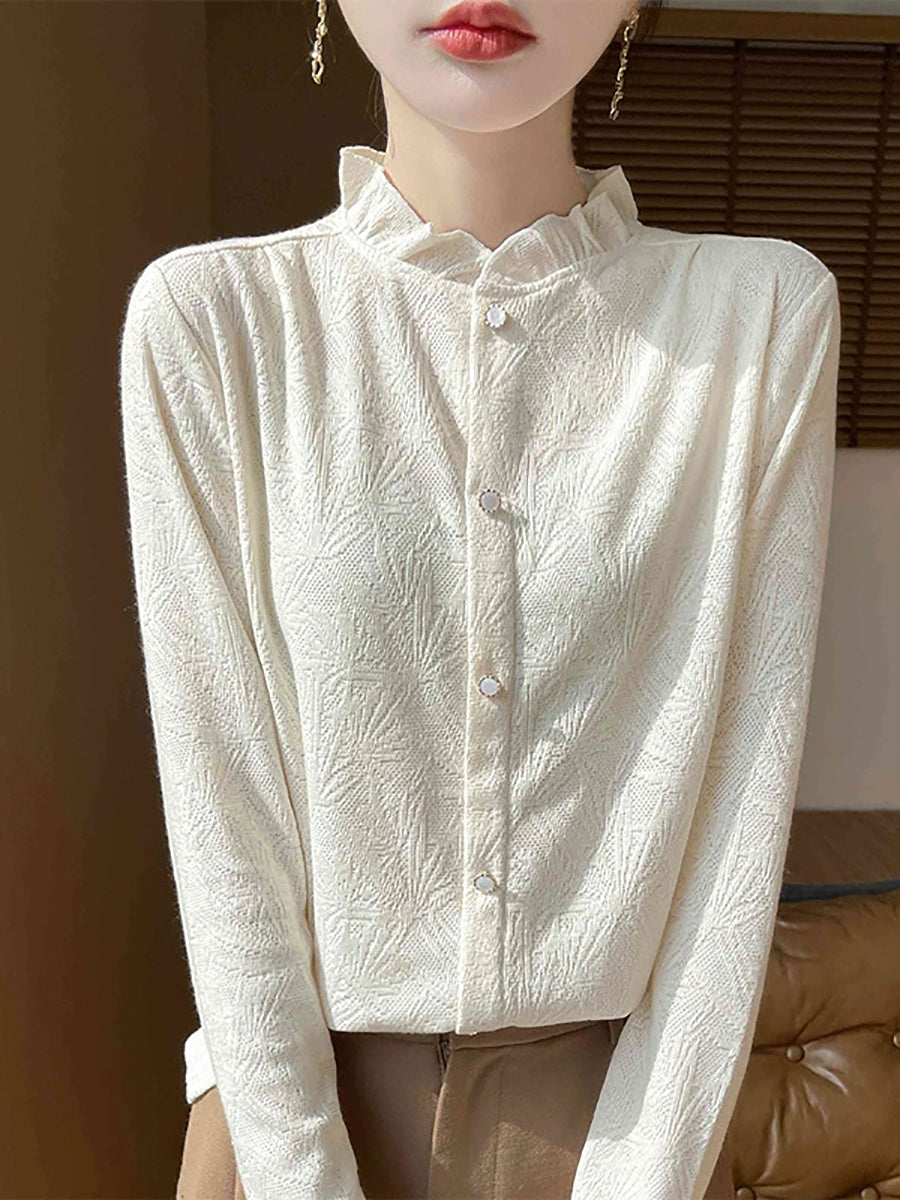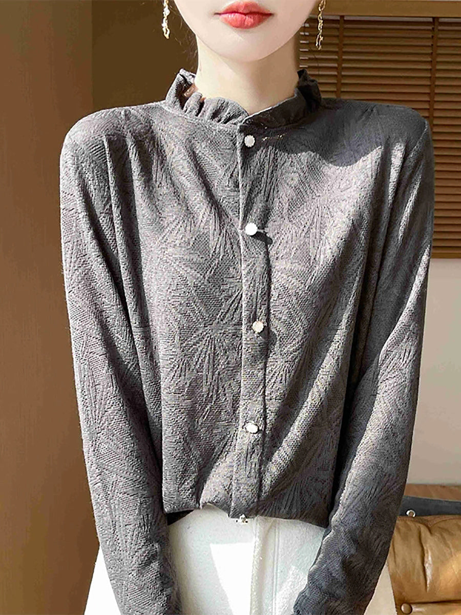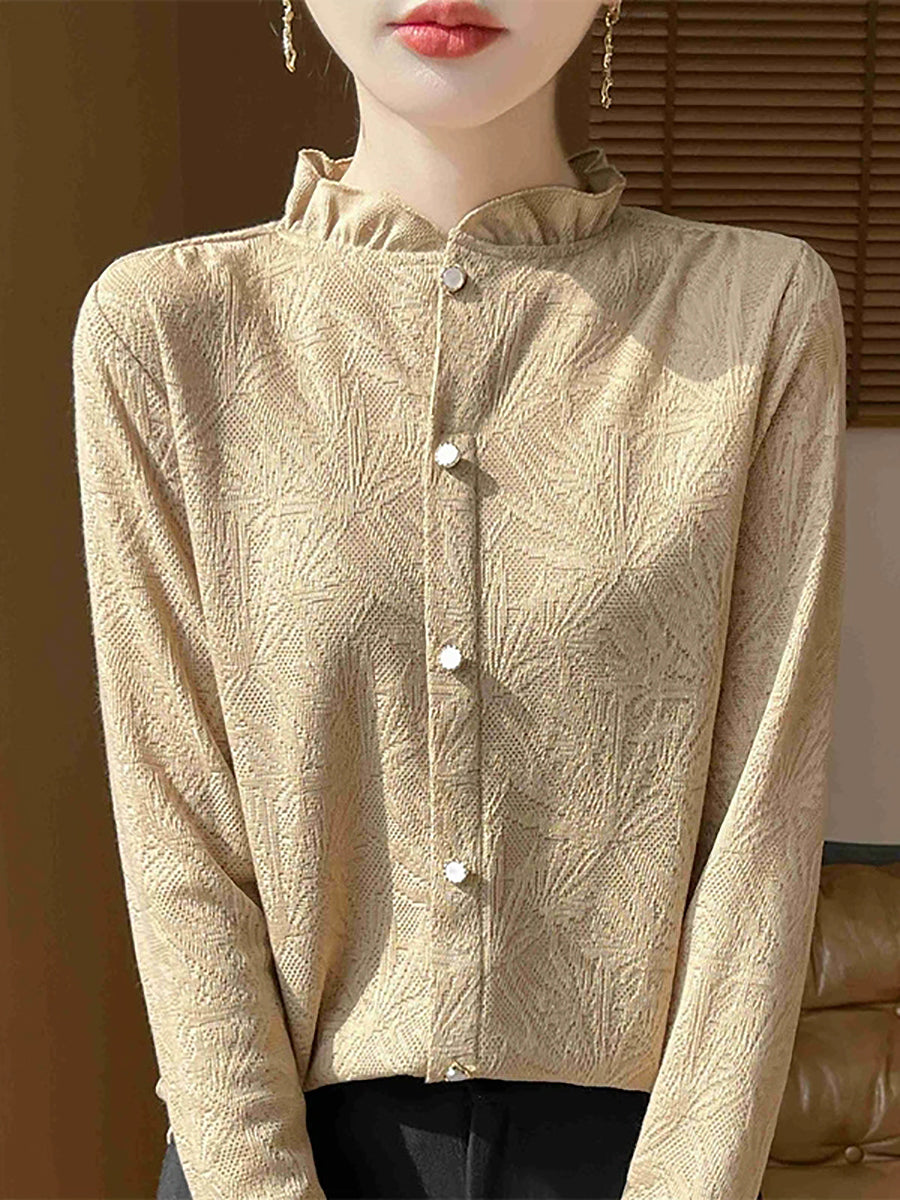 Dámský jarní svetr s uměleckým límcem Jackqard a stojáčkem