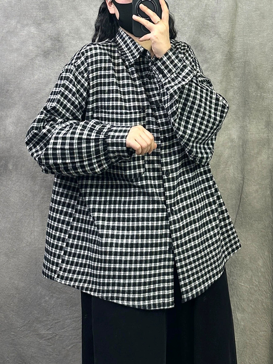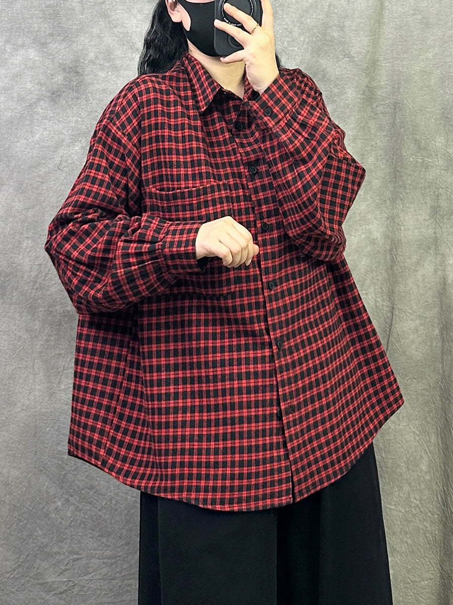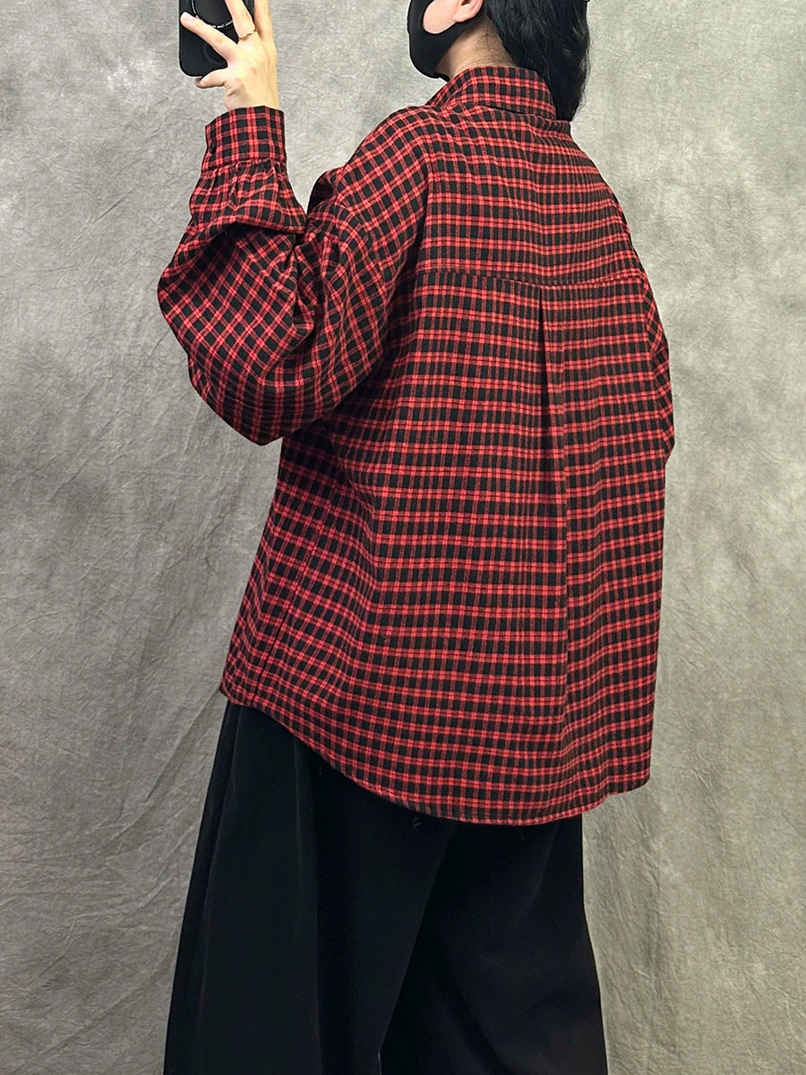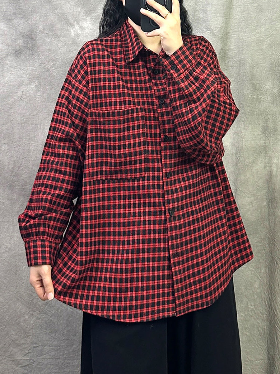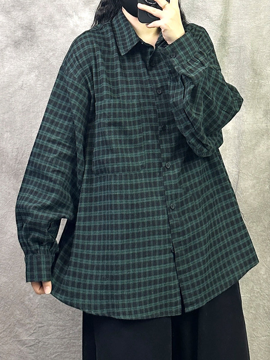 Dámská umělecká jarní kostkovaná bavlněná košile s odkládacím límcem