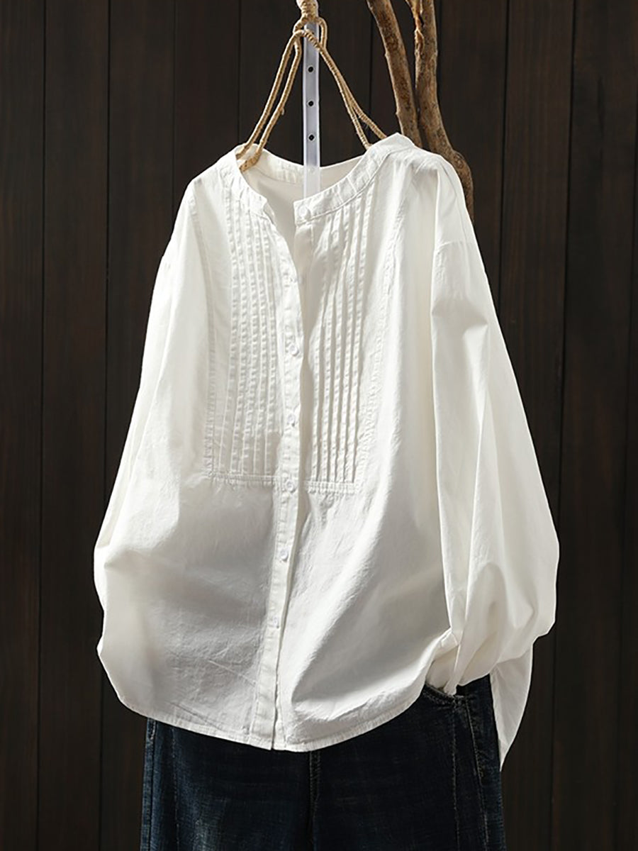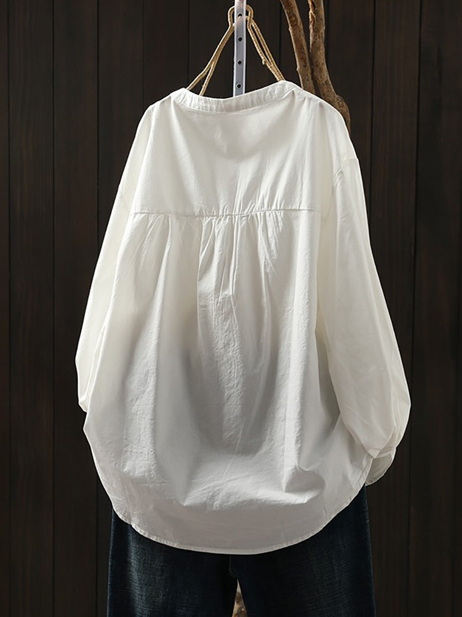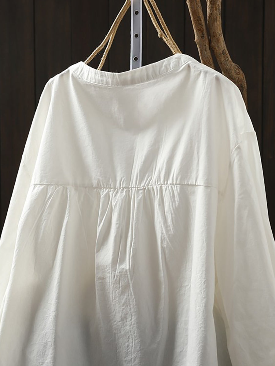 Dámská umělecká jarní nařasená košile s výstřihem do O-tvaru ze 100% bavlny