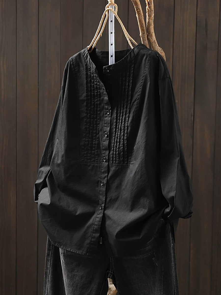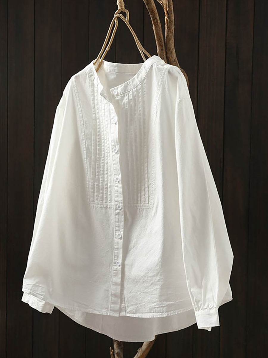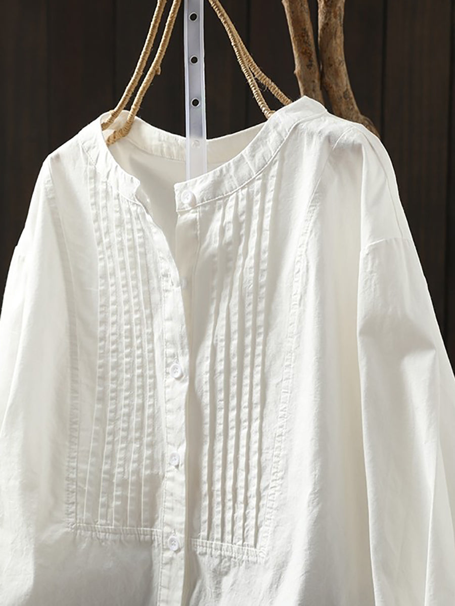 Dámská umělecká jarní nařasená košile s výstřihem do O-tvaru ze 100% bavlny