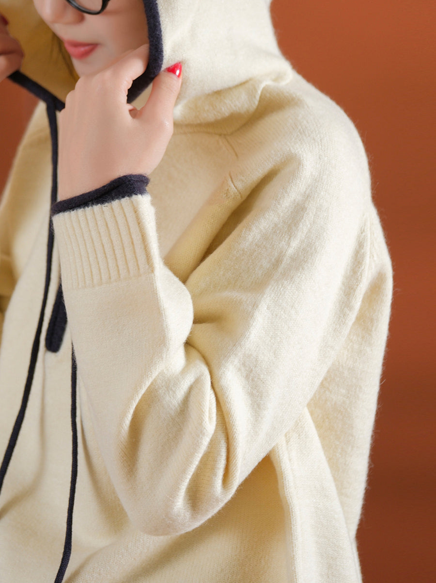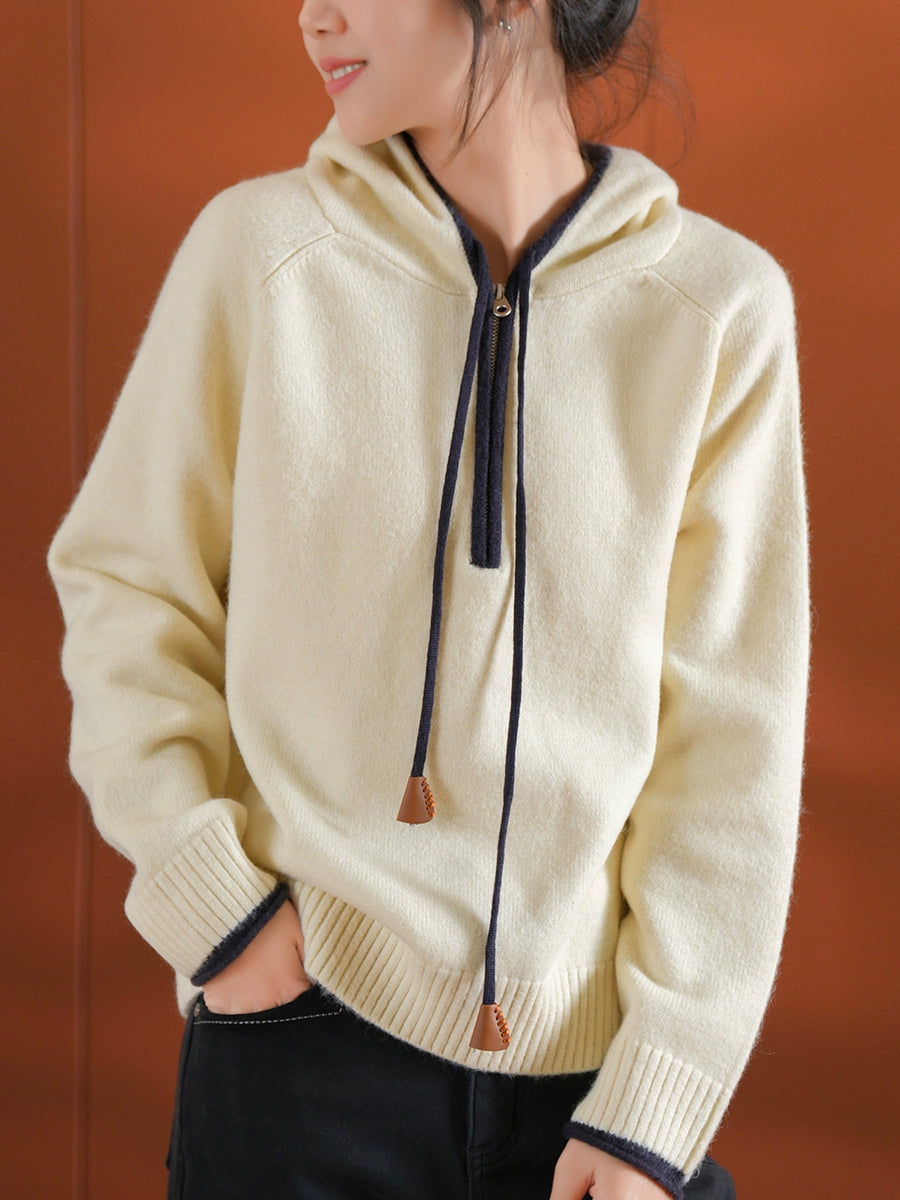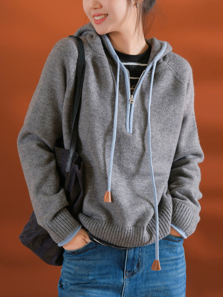 Dámský podzimní umělecký barevný svetr s kapucí
