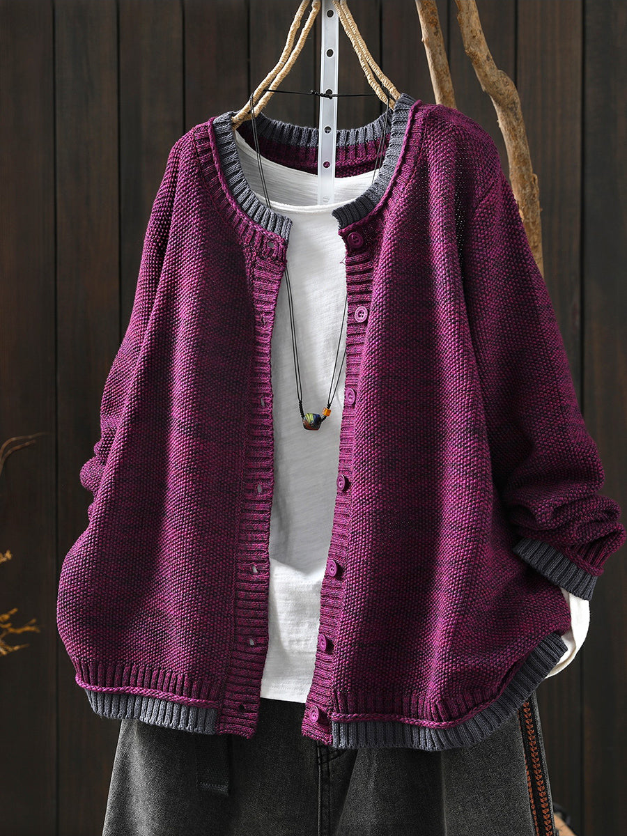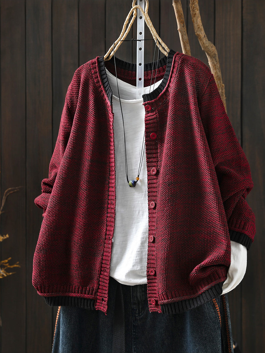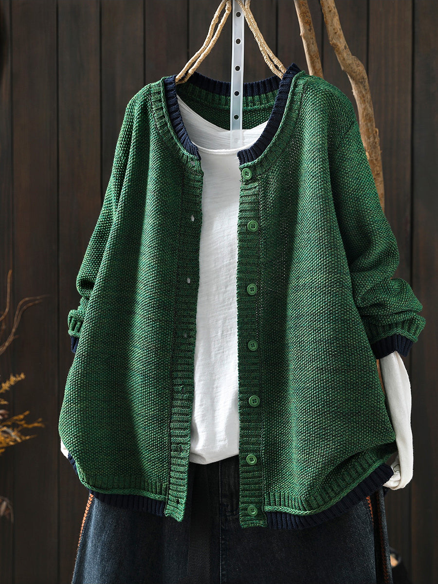 Dámský podzimní pletený kardigan s barevnými bloky a uměleckým vzorem