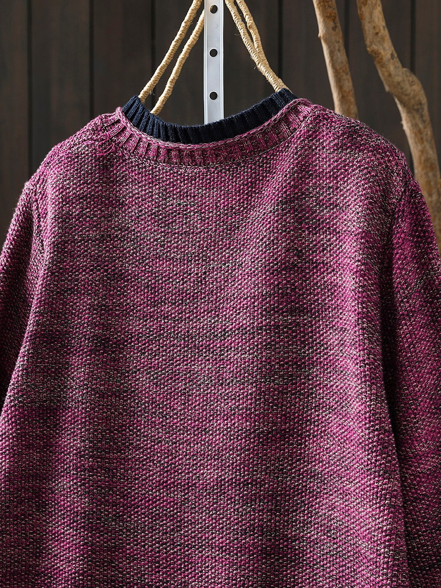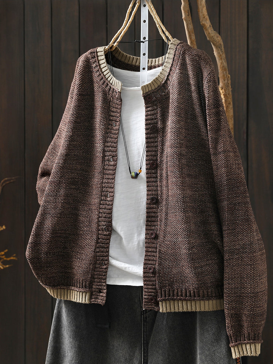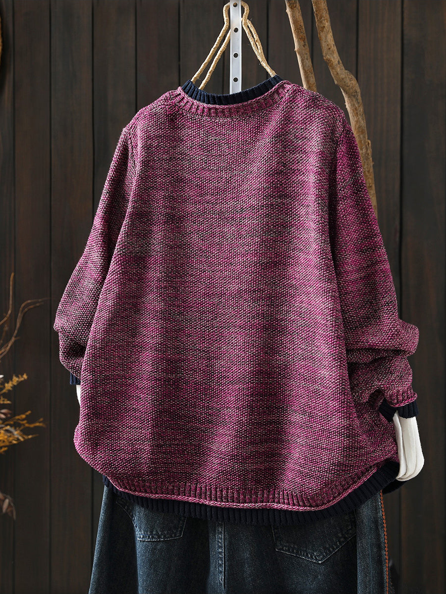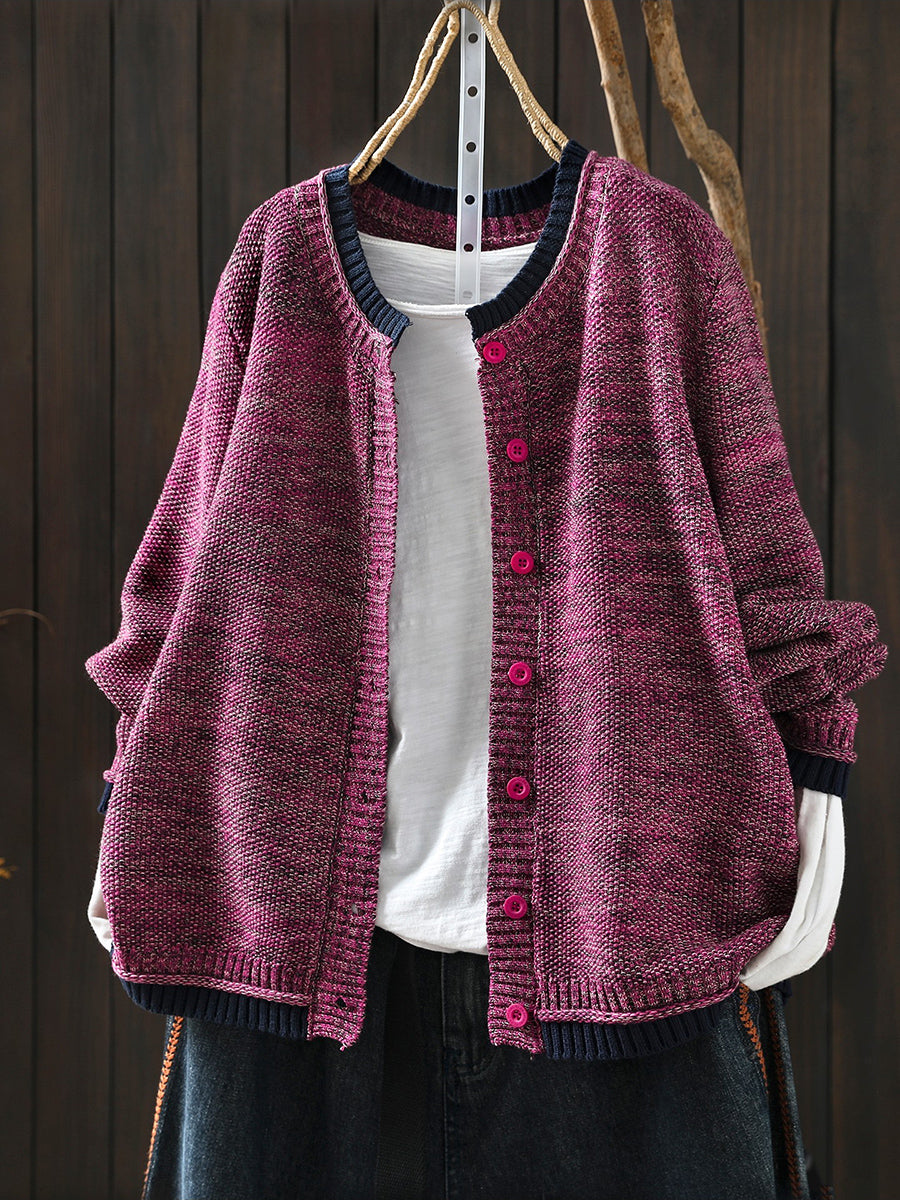 Dámský podzimní pletený kardigan s barevnými bloky a uměleckým vzorem