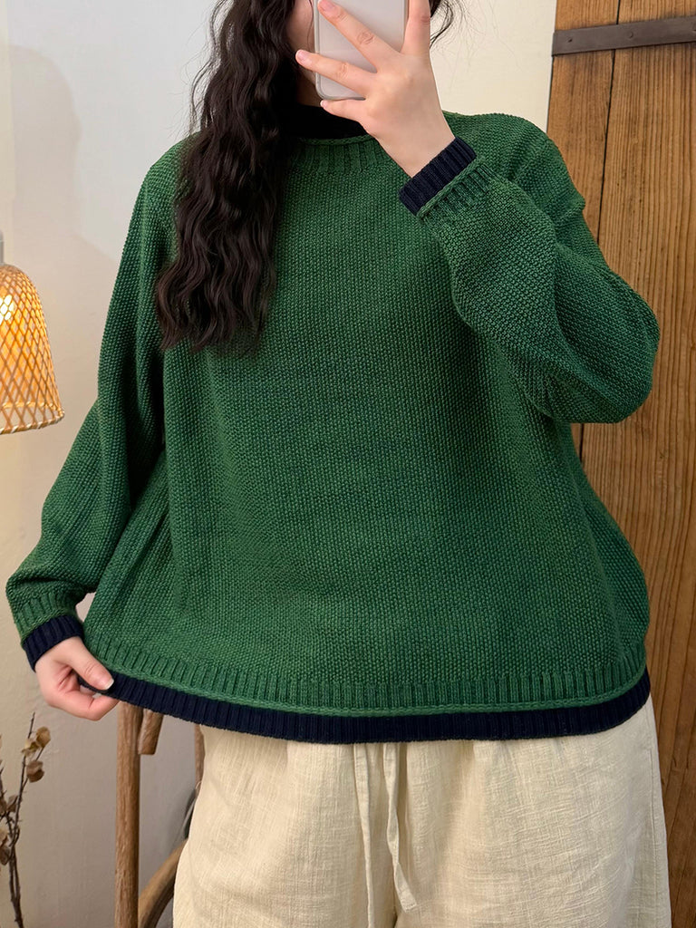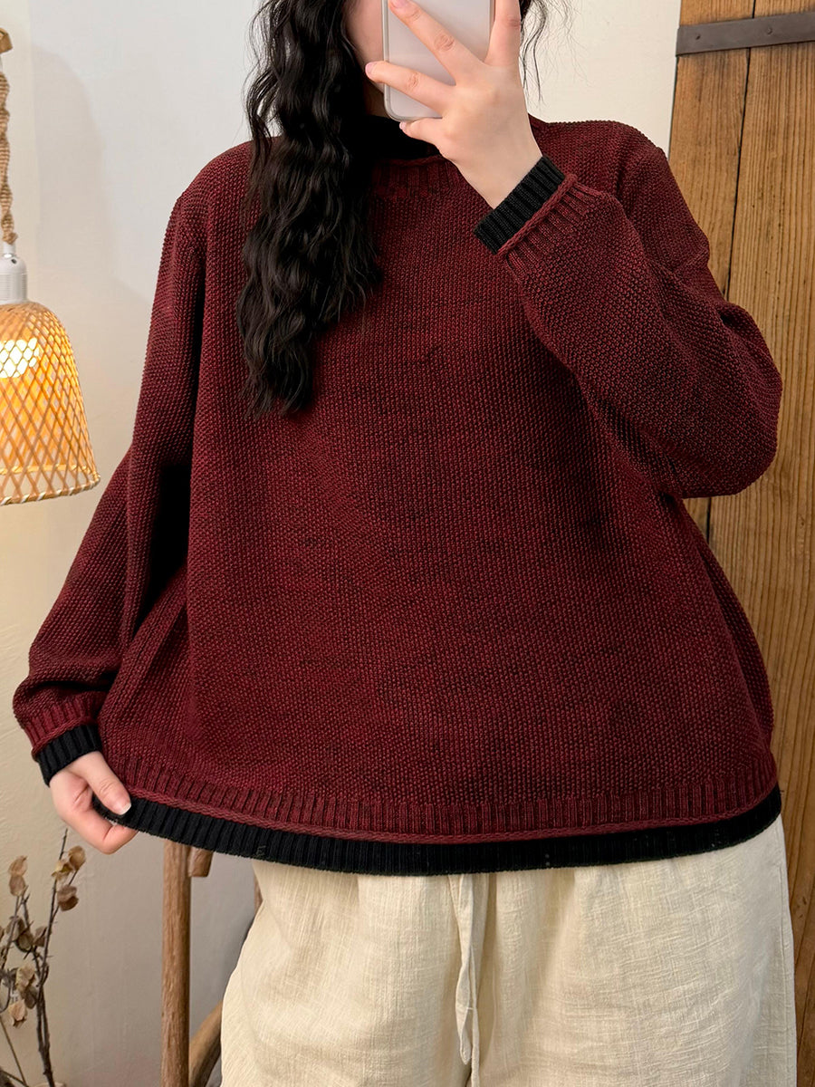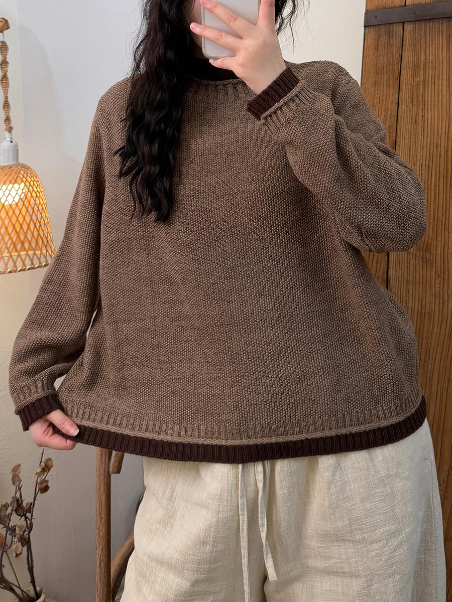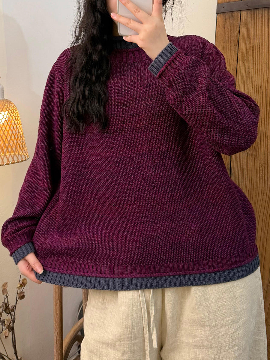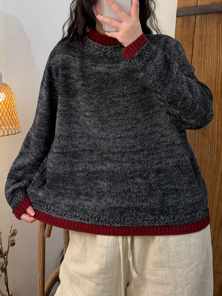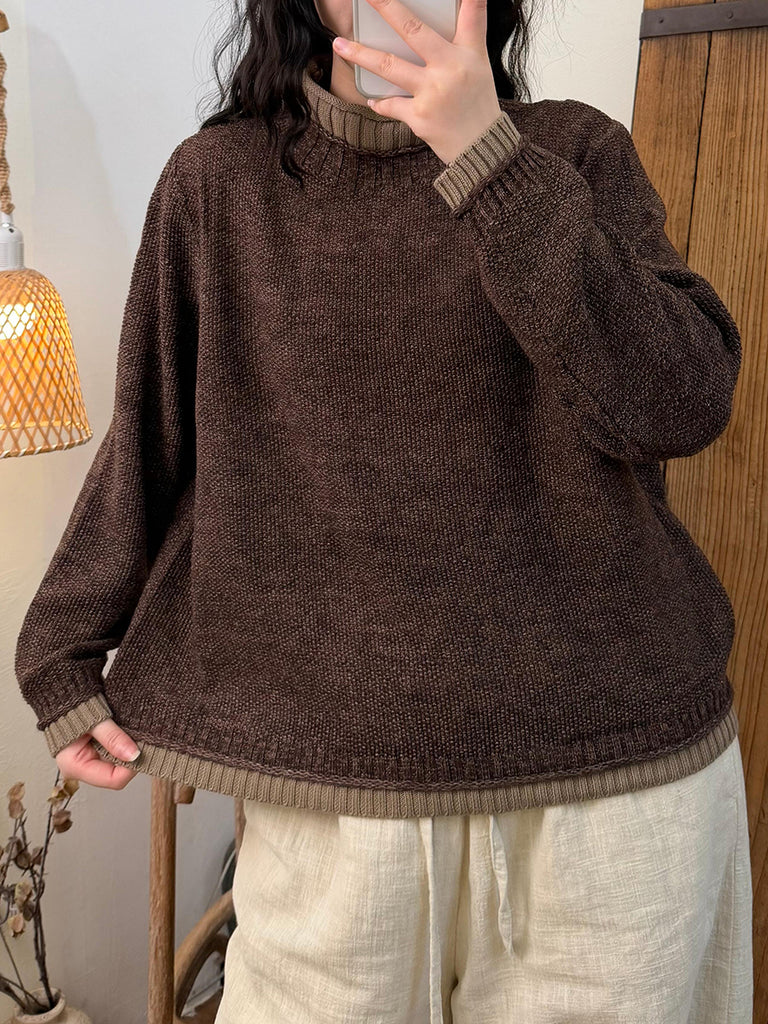 Dámský podzimní pletený svetr s uměleckými barevnými bloky a rolákem
