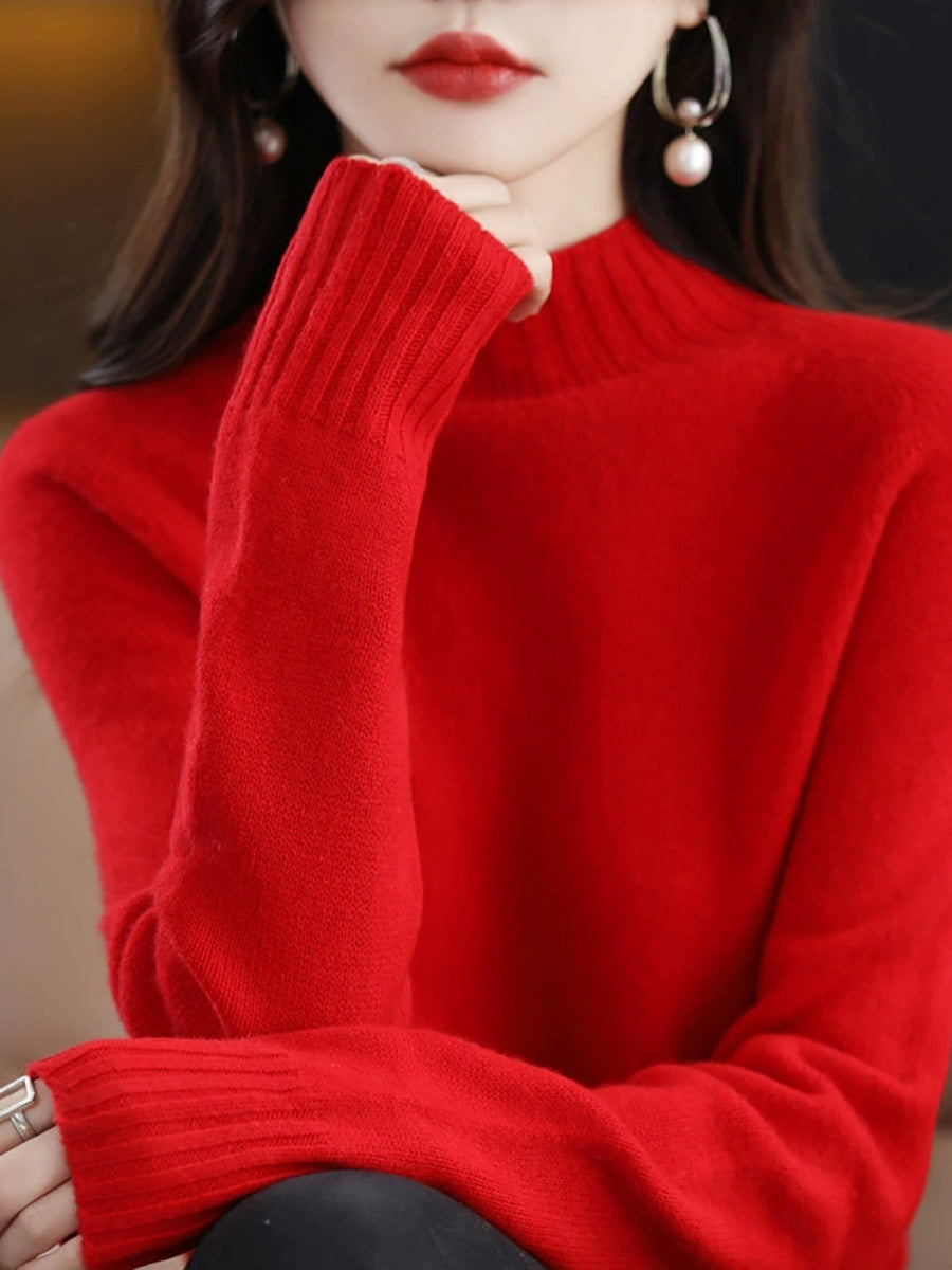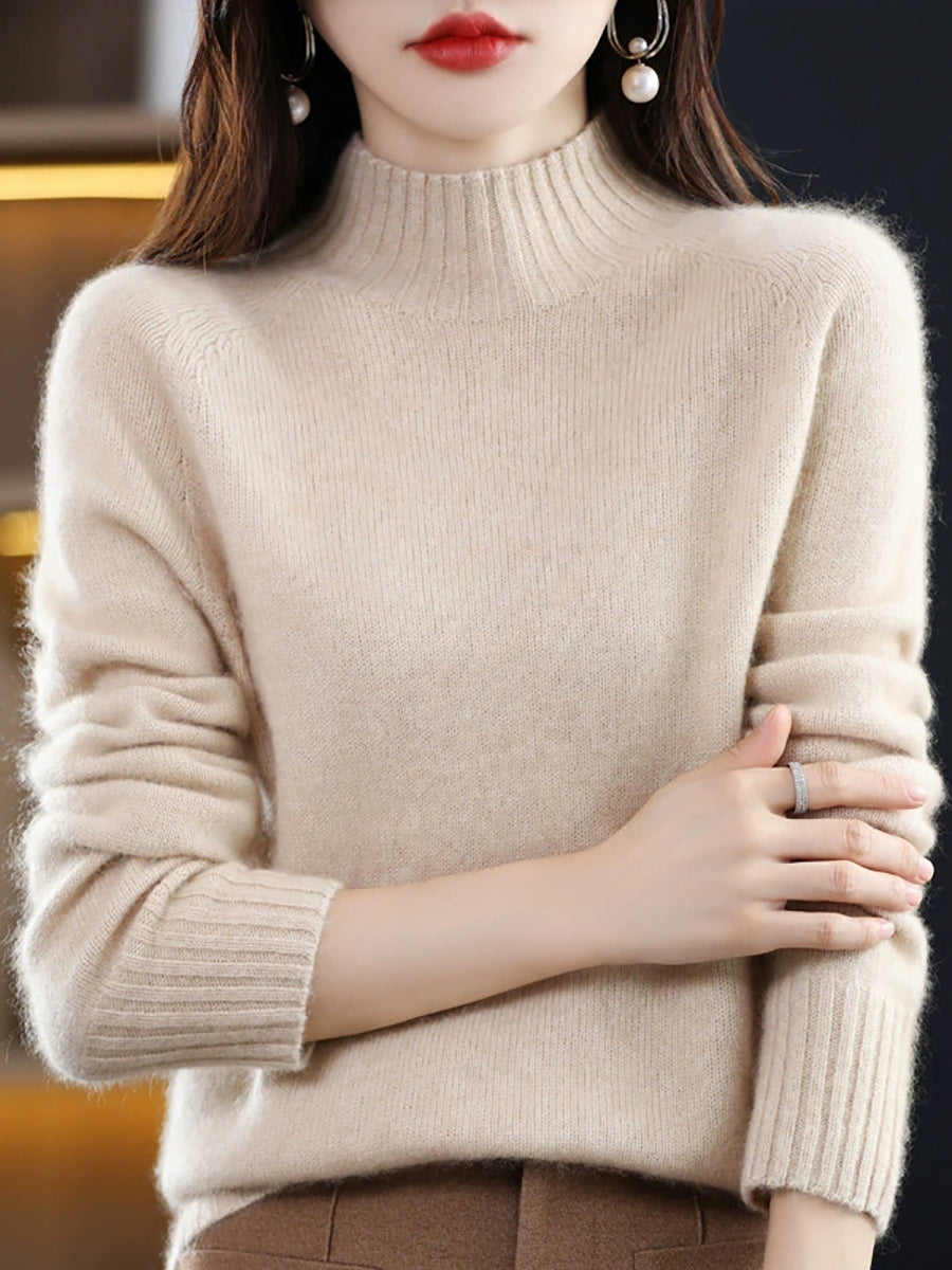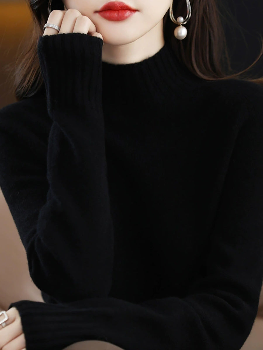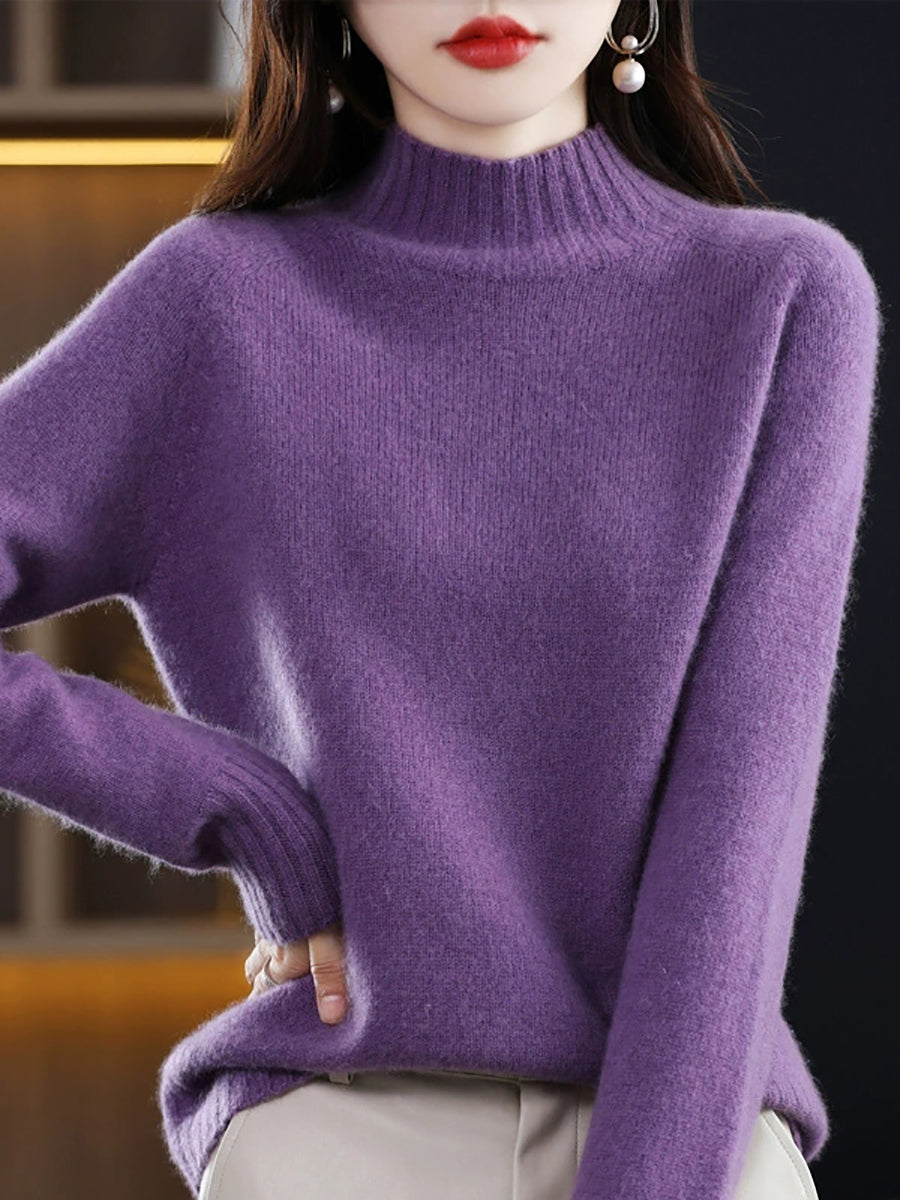 Dámský podzimní umělecký pletený svetr s půlrolákem v čistě barevných barvách