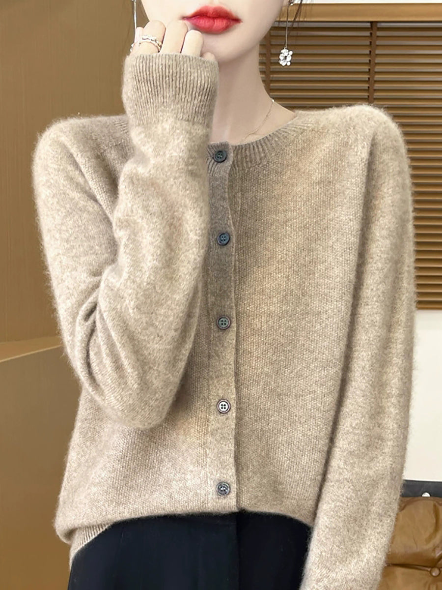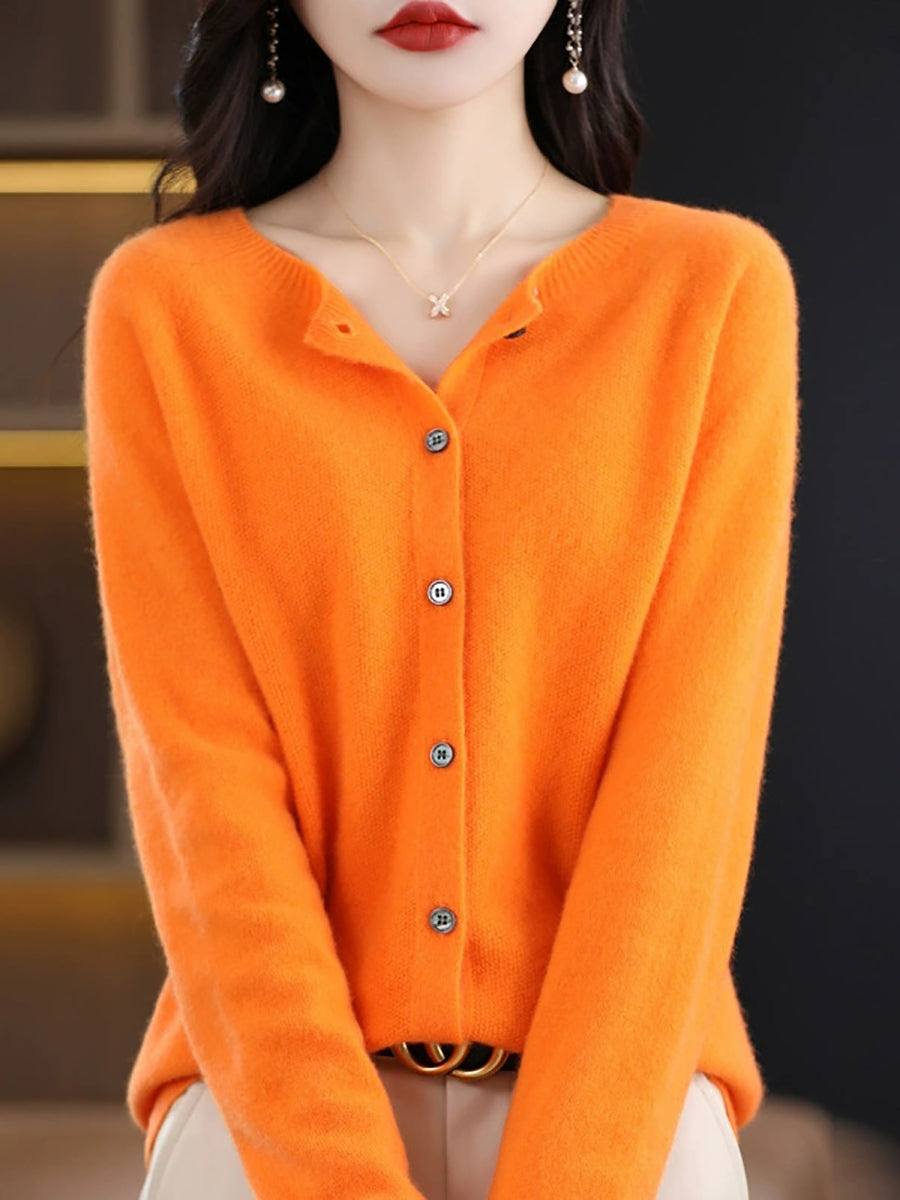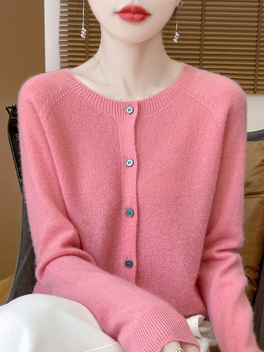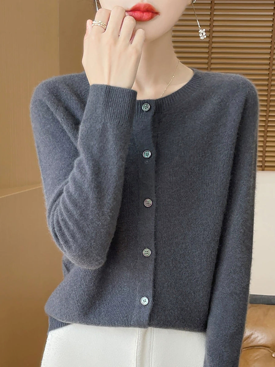 Dámský podzimní umělecký čistobarevný kardigan s výstřihem do O-neck