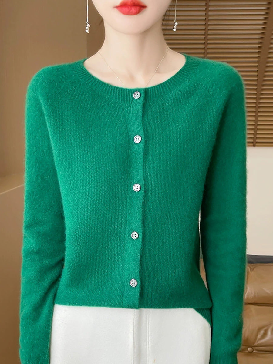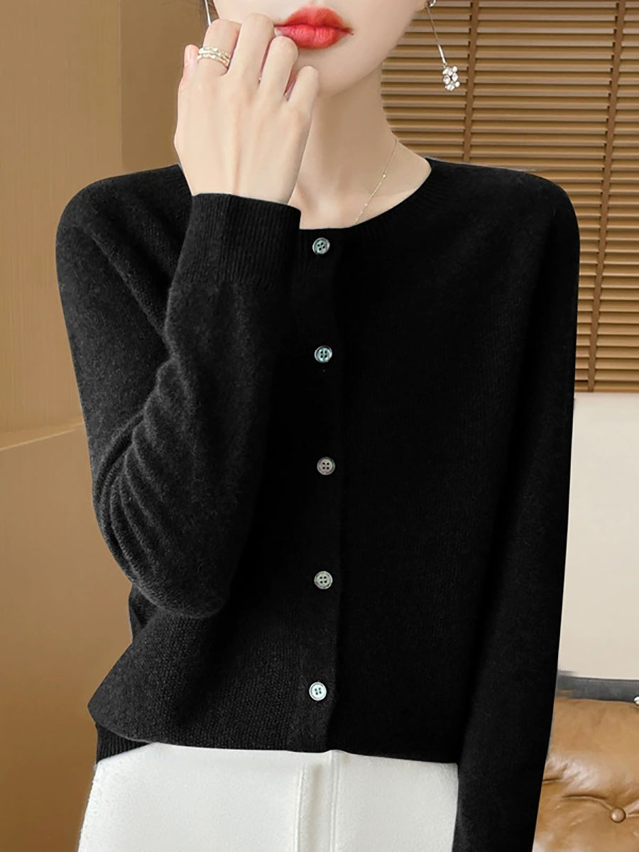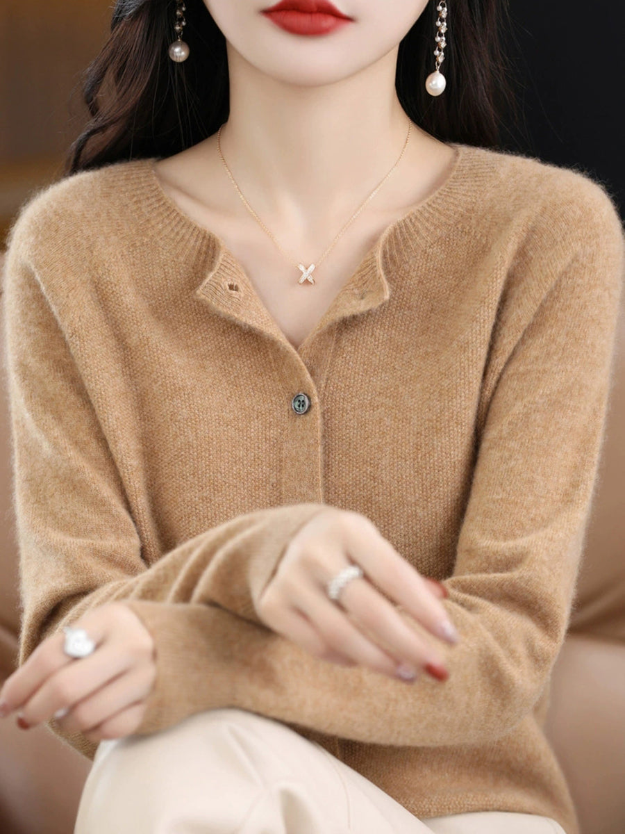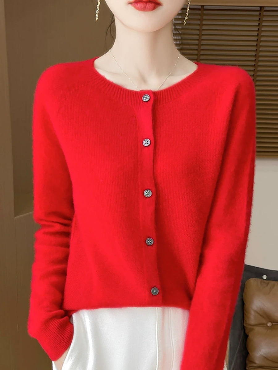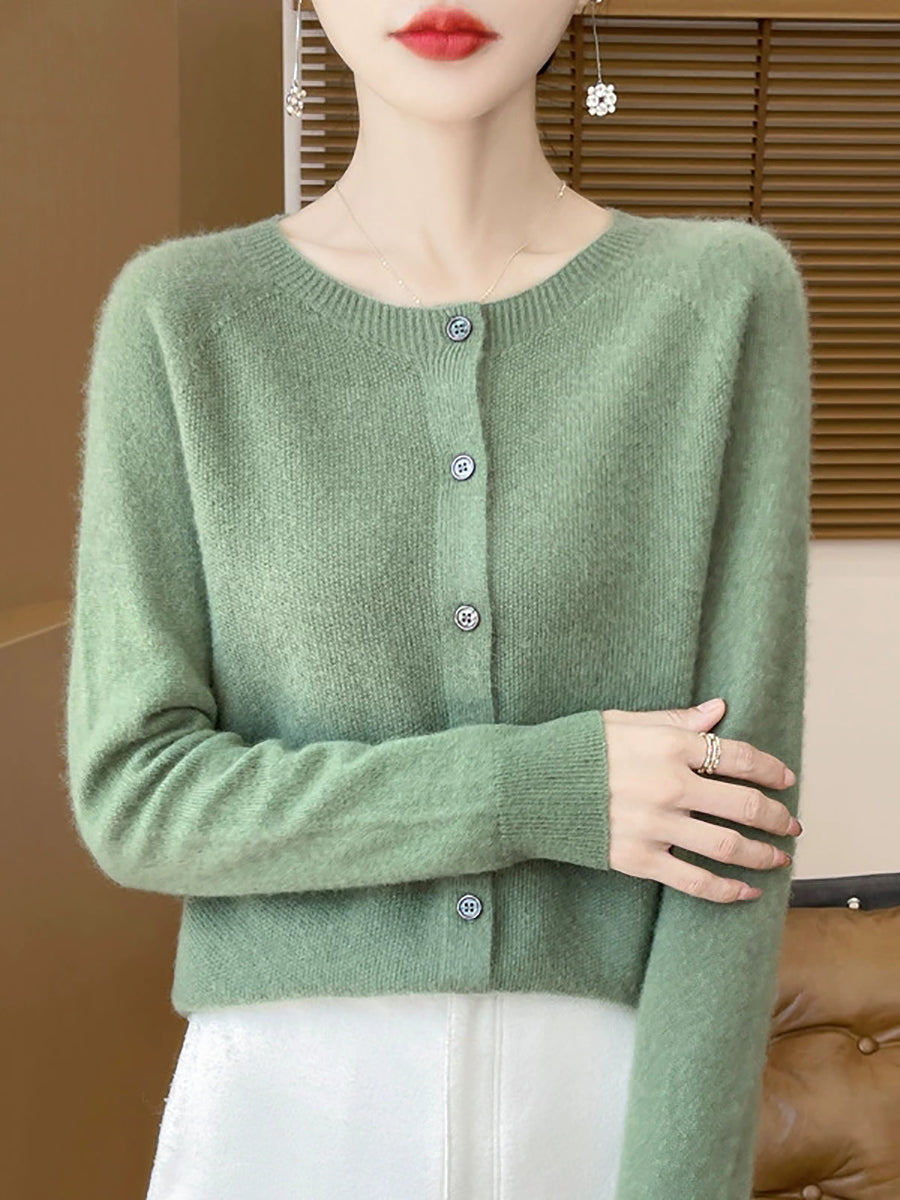 Dámský podzimní umělecký čistobarevný kardigan s výstřihem do O-neck