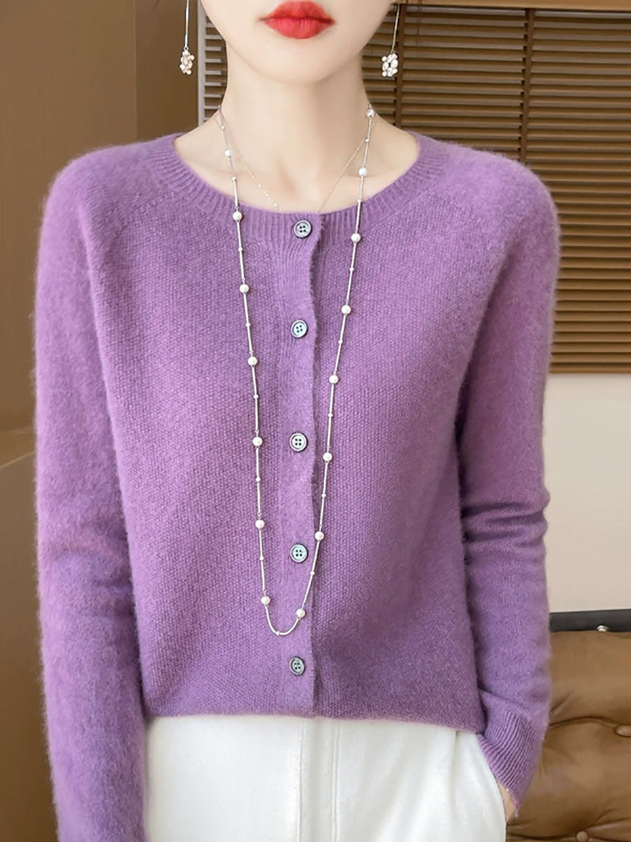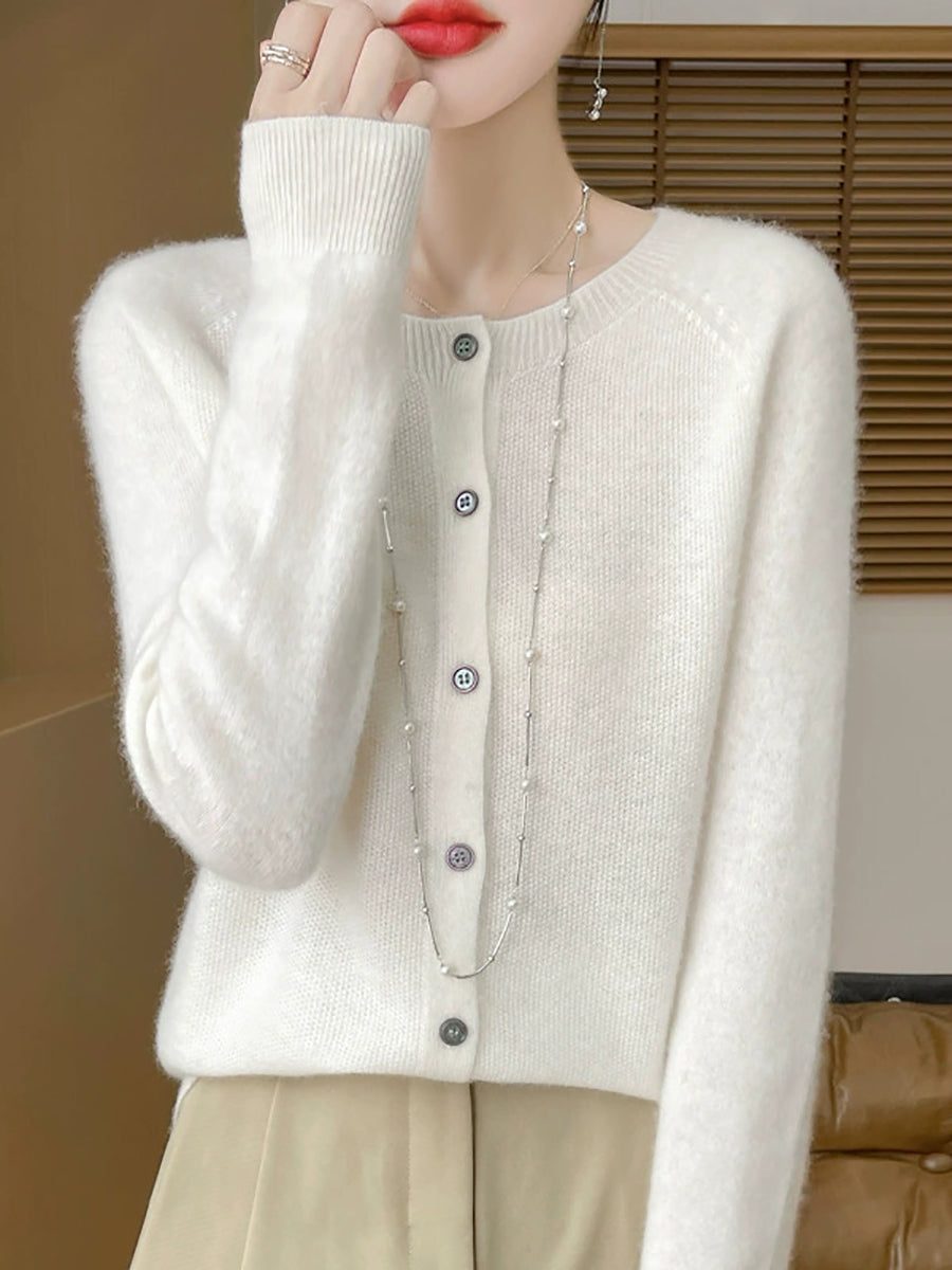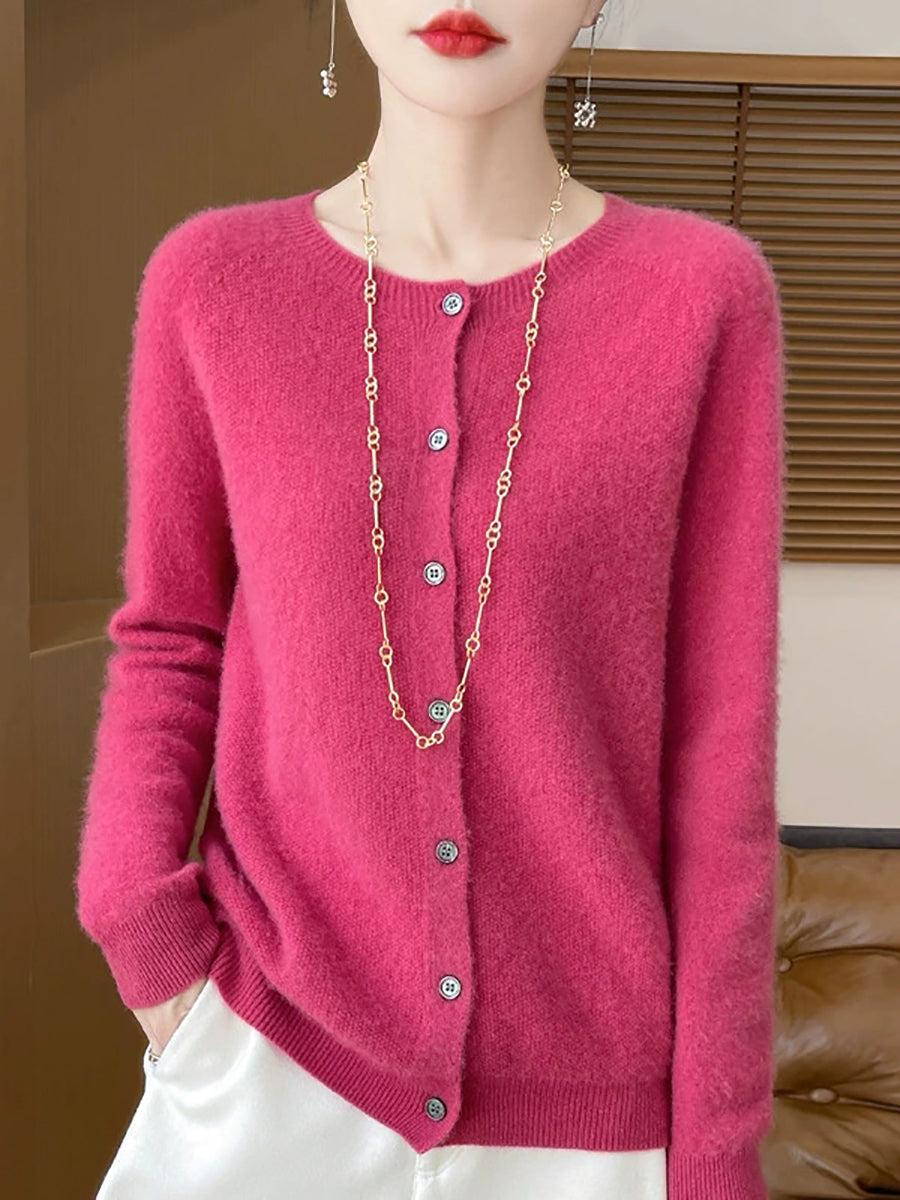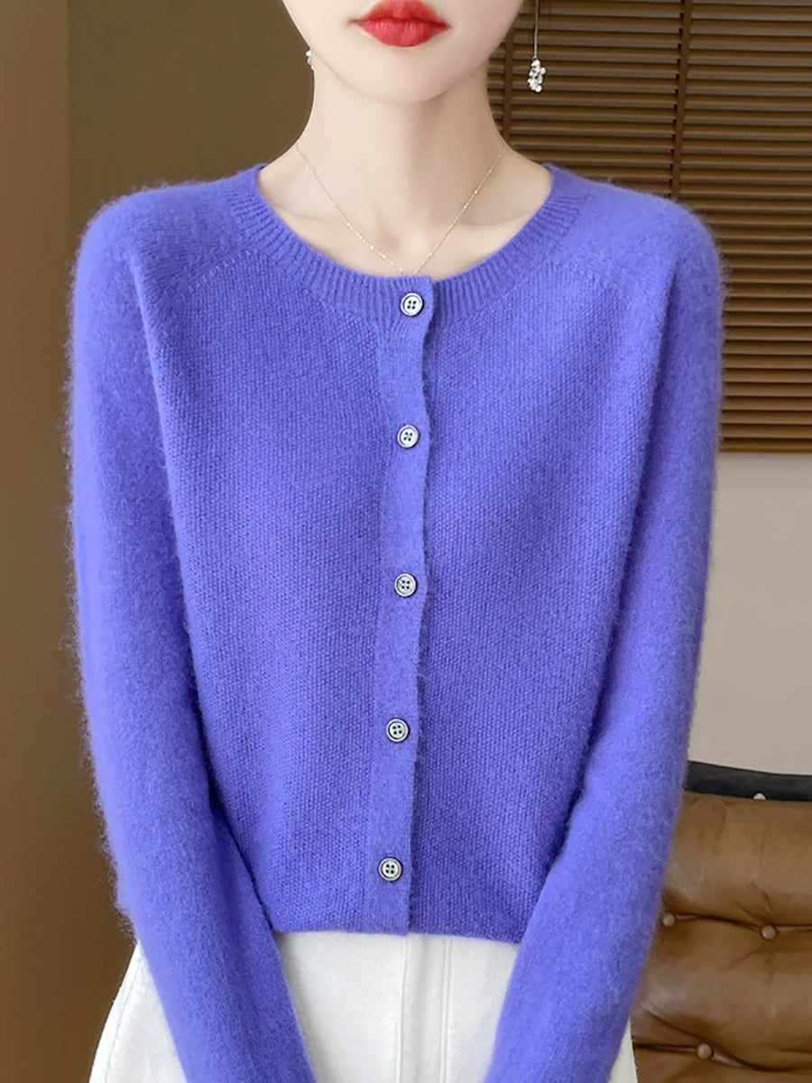 Dámský podzimní umělecký čistobarevný kardigan s výstřihem do O-neck