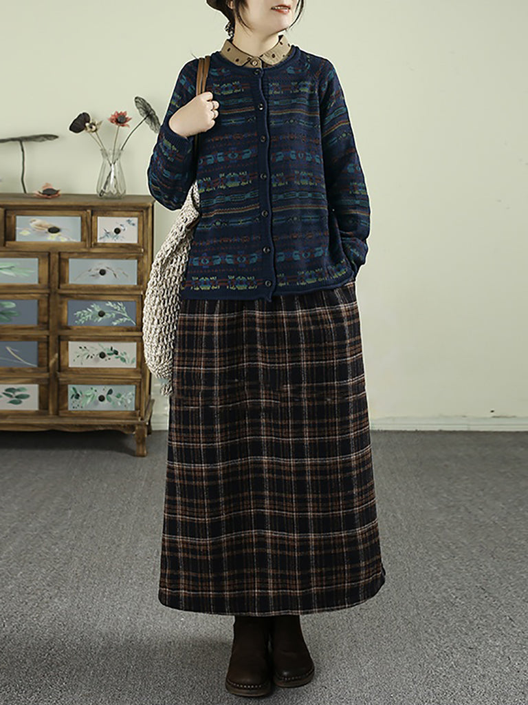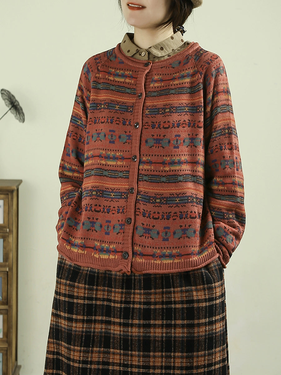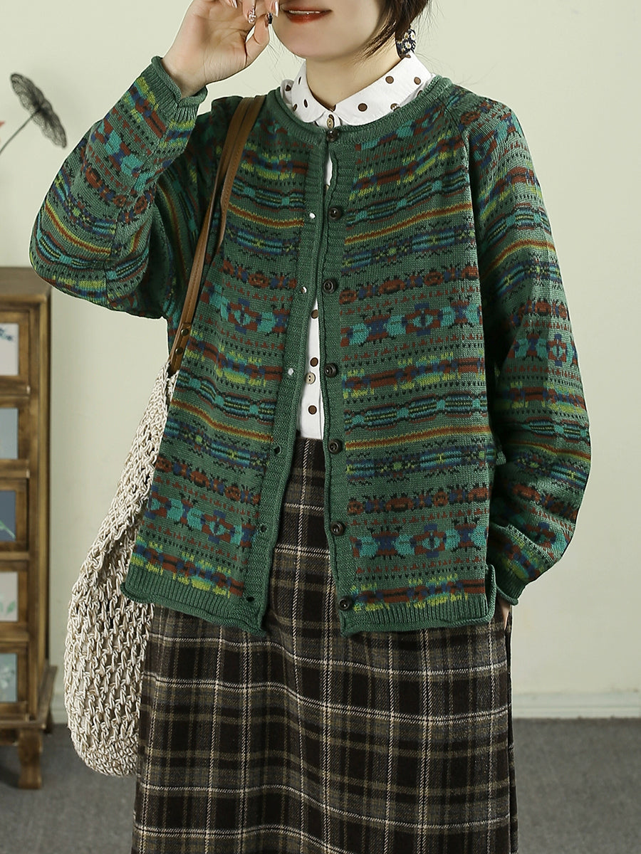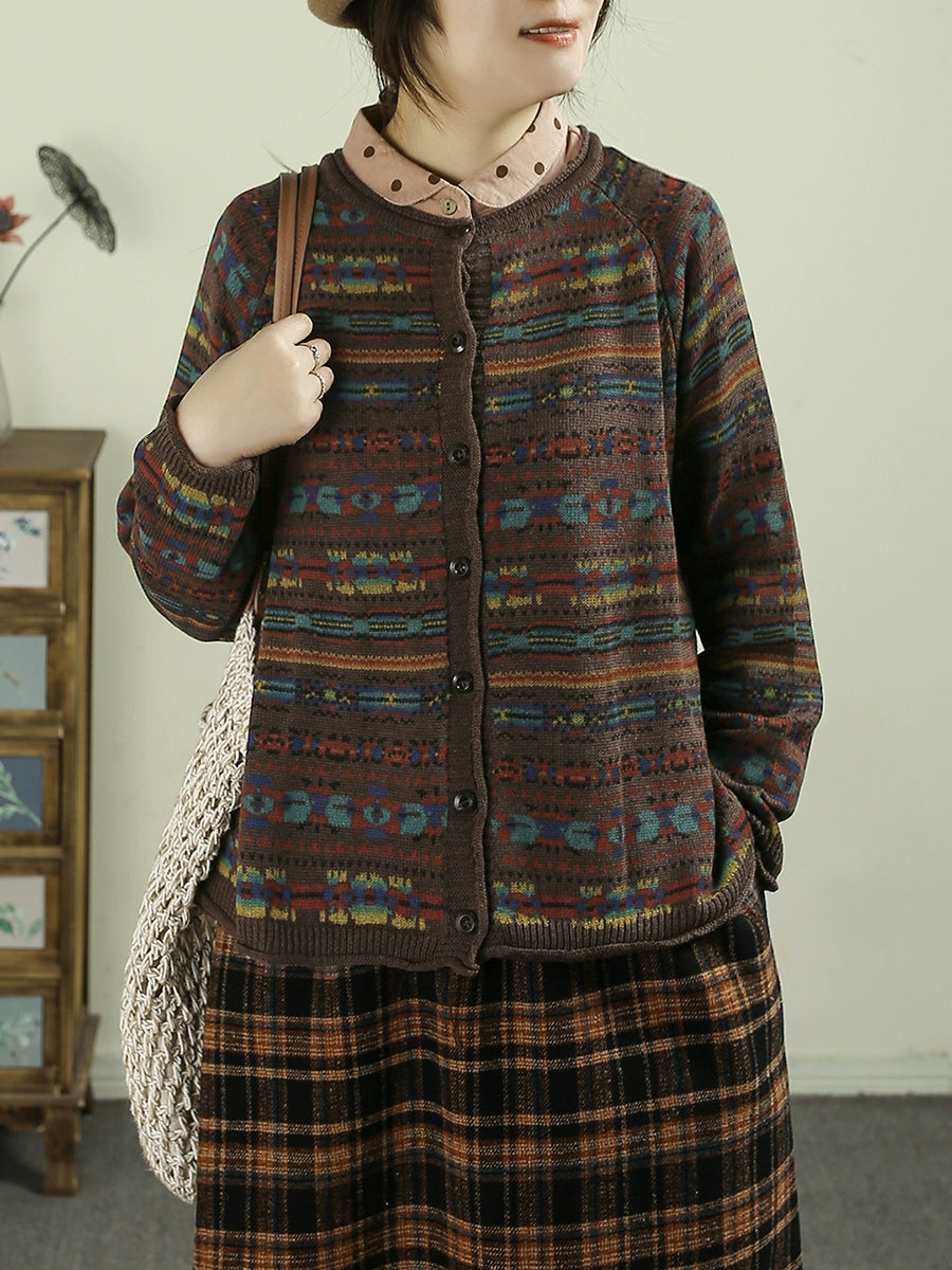Dámský podzimní pletený svetr s uměleckými pruhy a výstřihem do O-neck