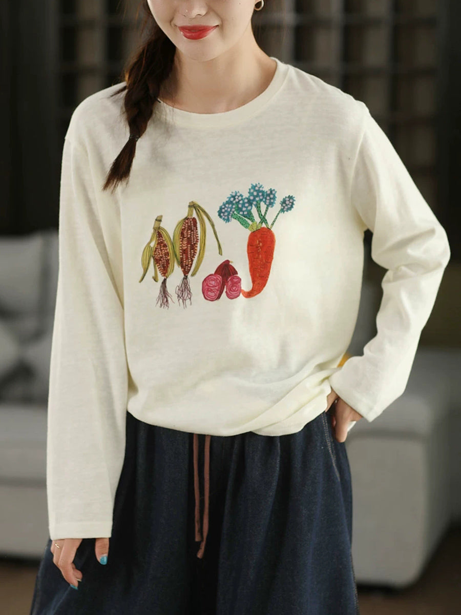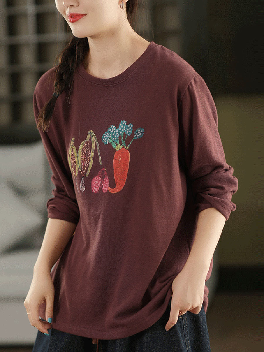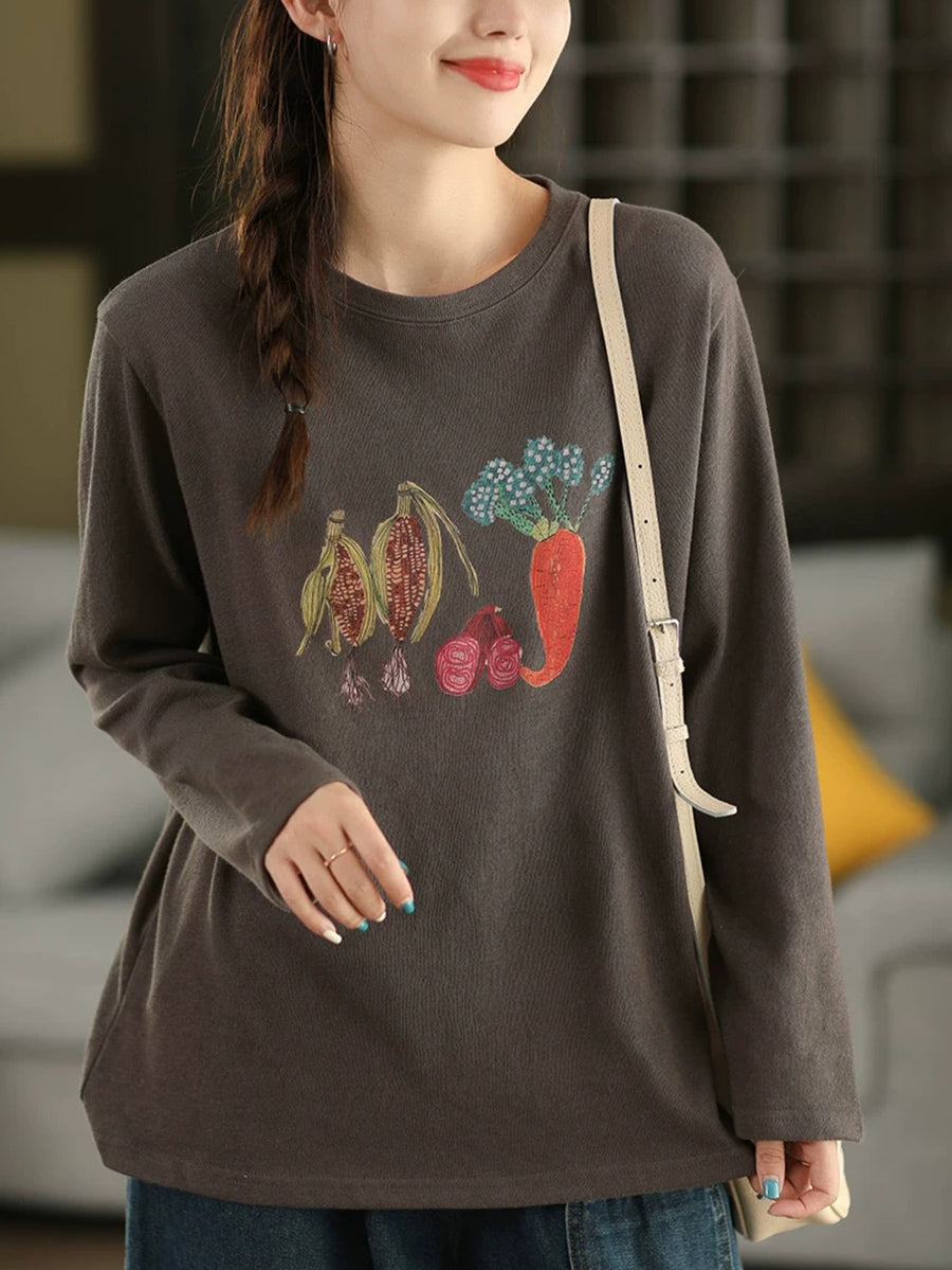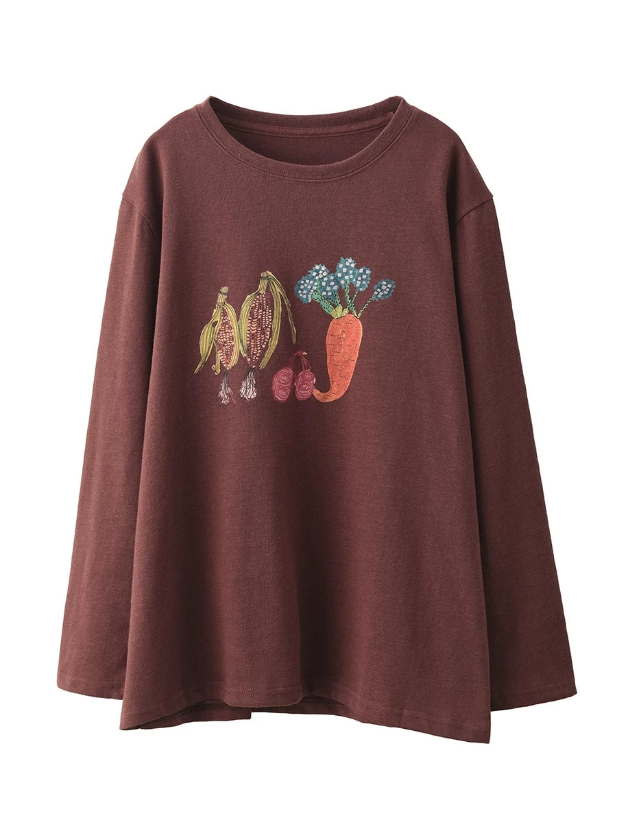 Dámská podzimní bavlněná halenka s uměleckým vzorem a zeleninou do O-neck