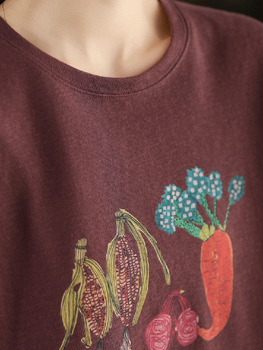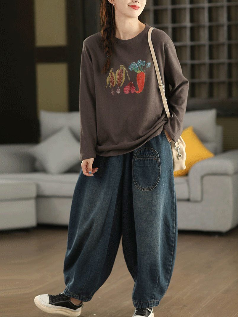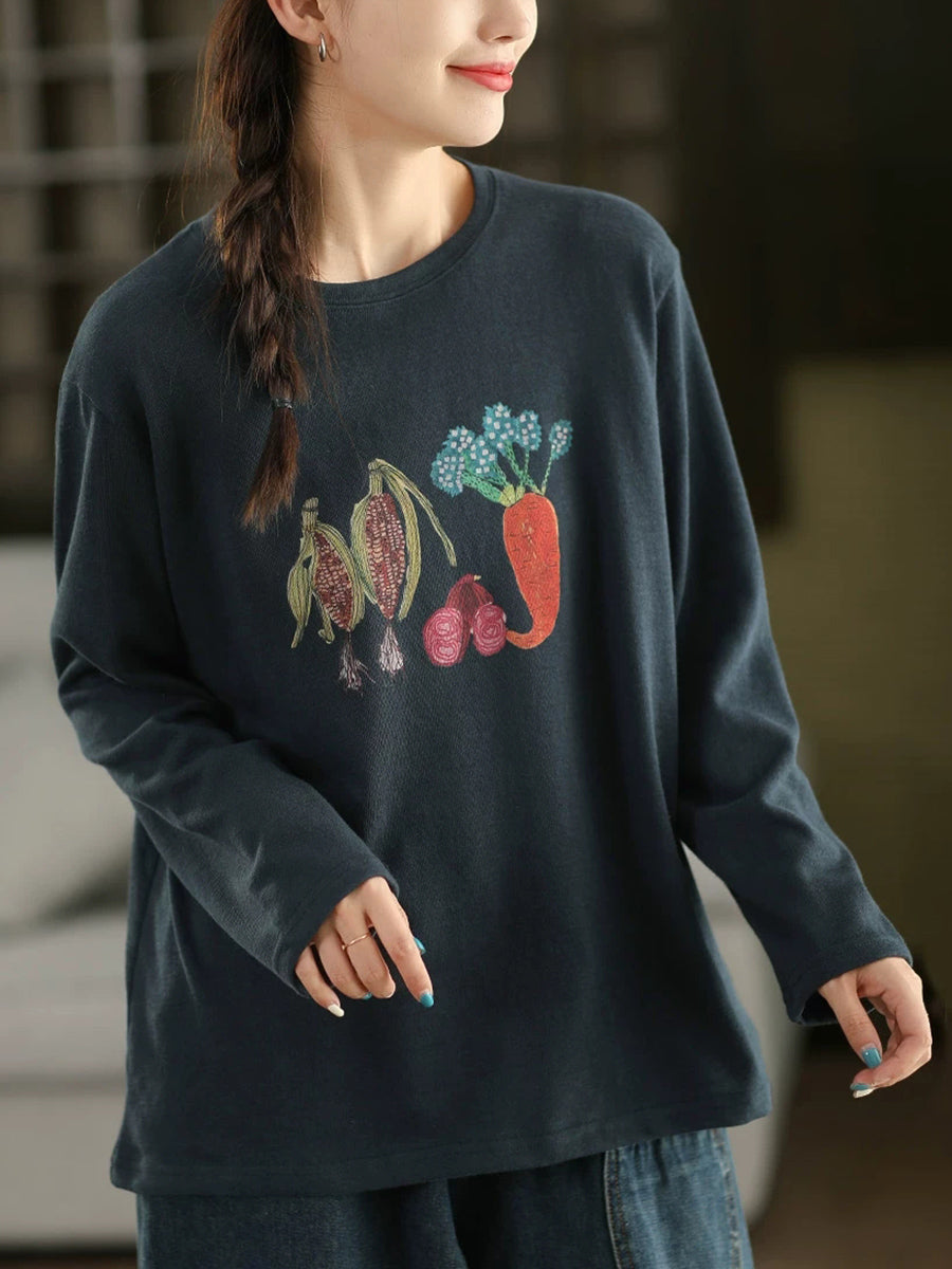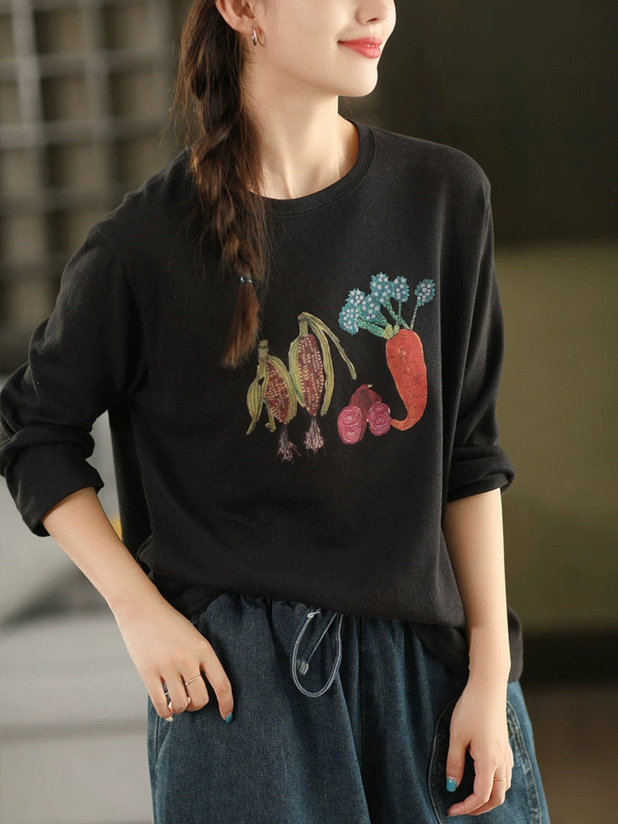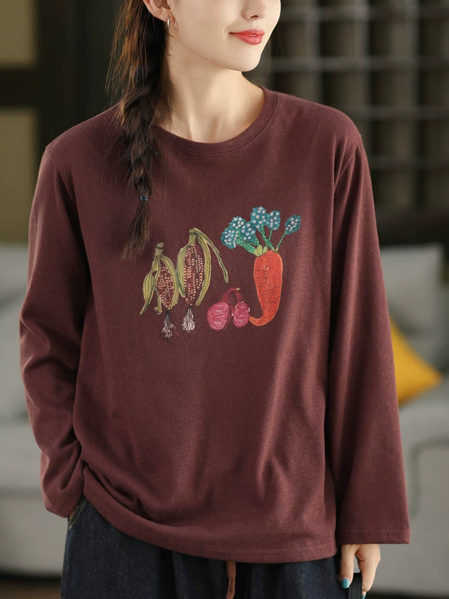Dámská podzimní bavlněná halenka s uměleckým vzorem a zeleninou do O-neck
