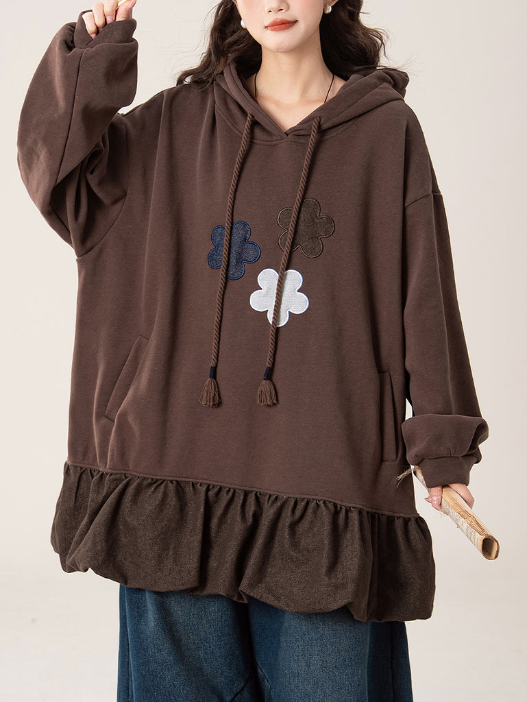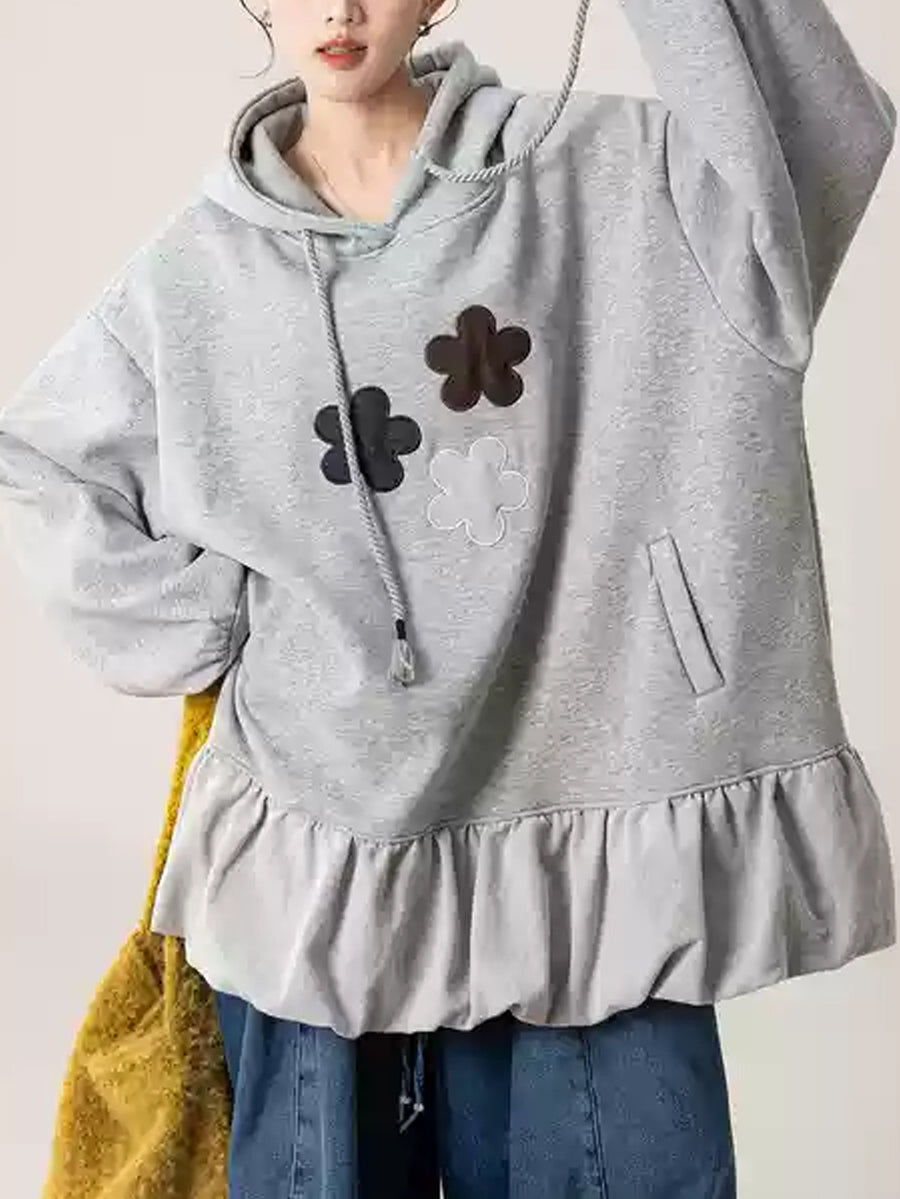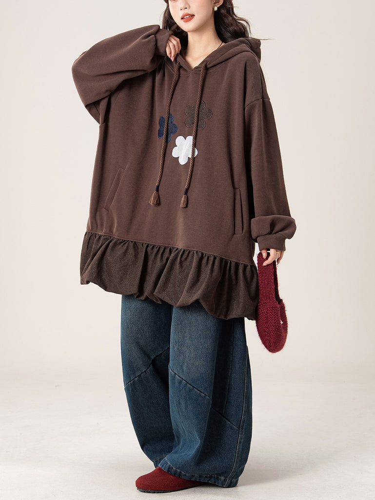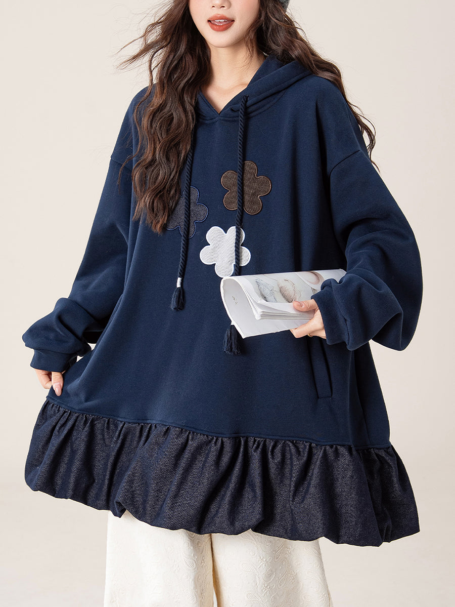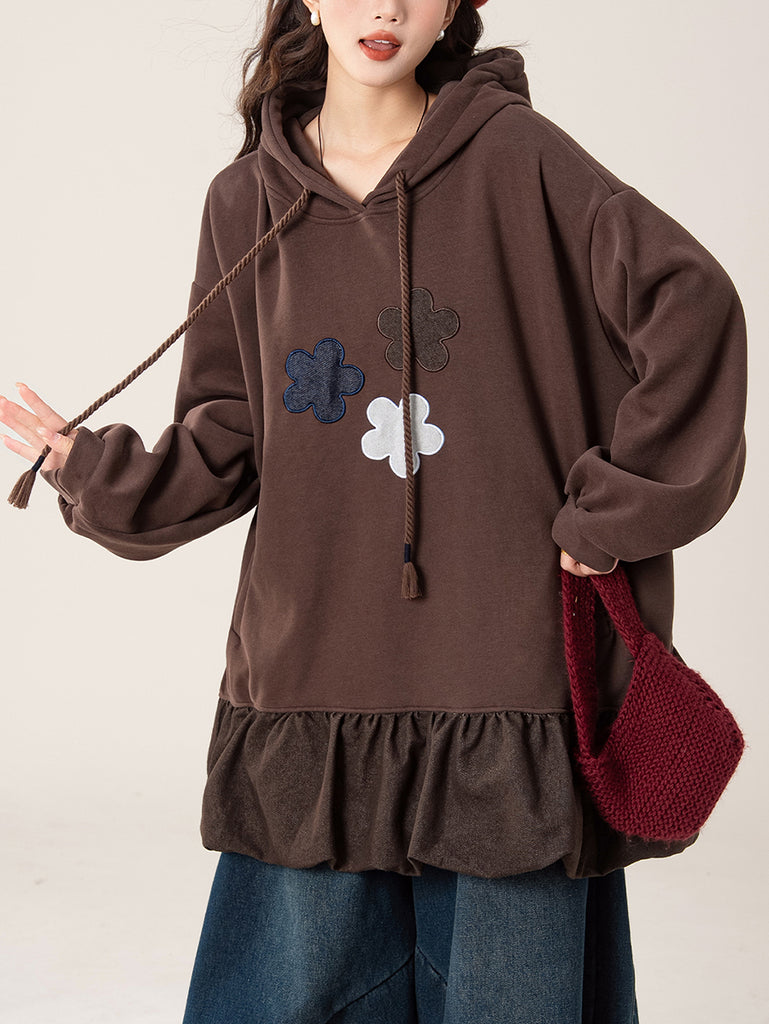 Dámské podzimní ležérní květinové šaty s kapucí a splývavým výstřihem