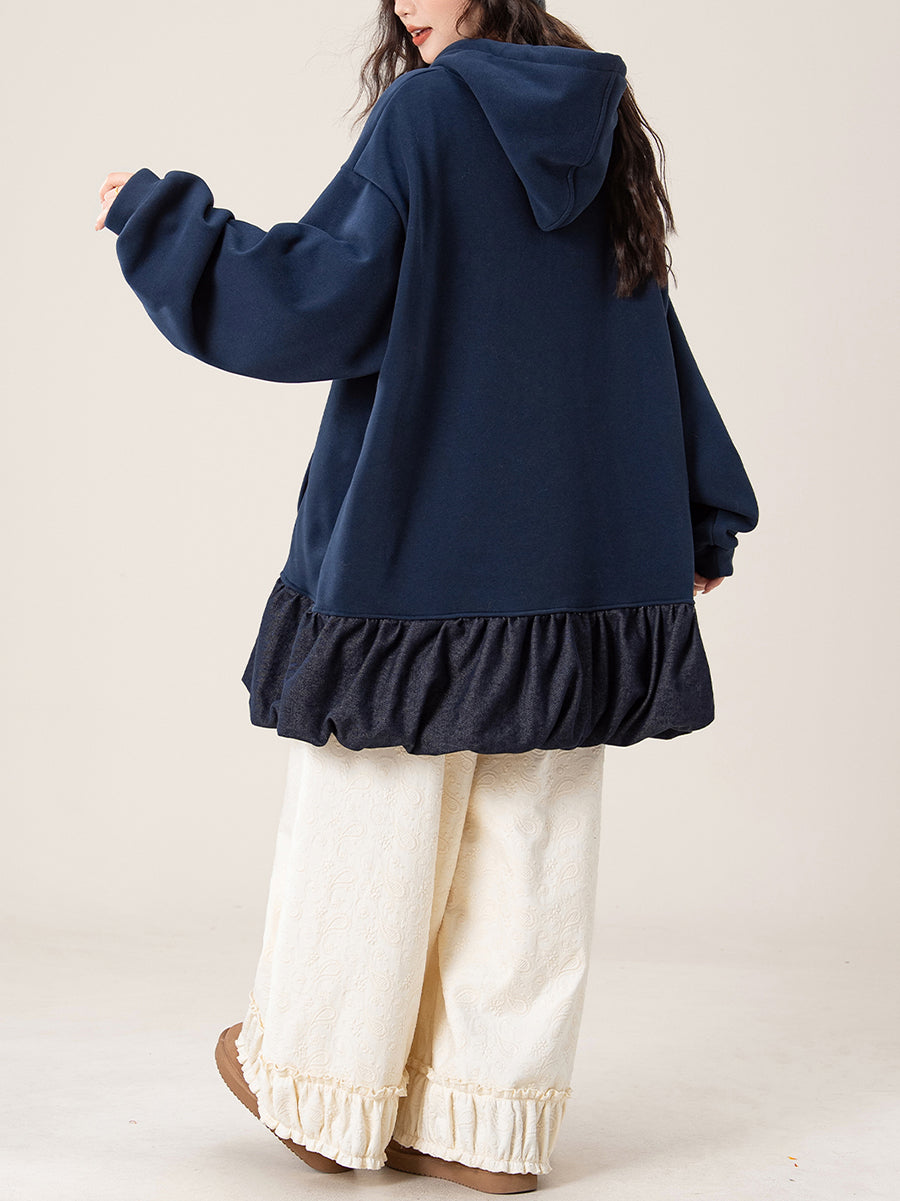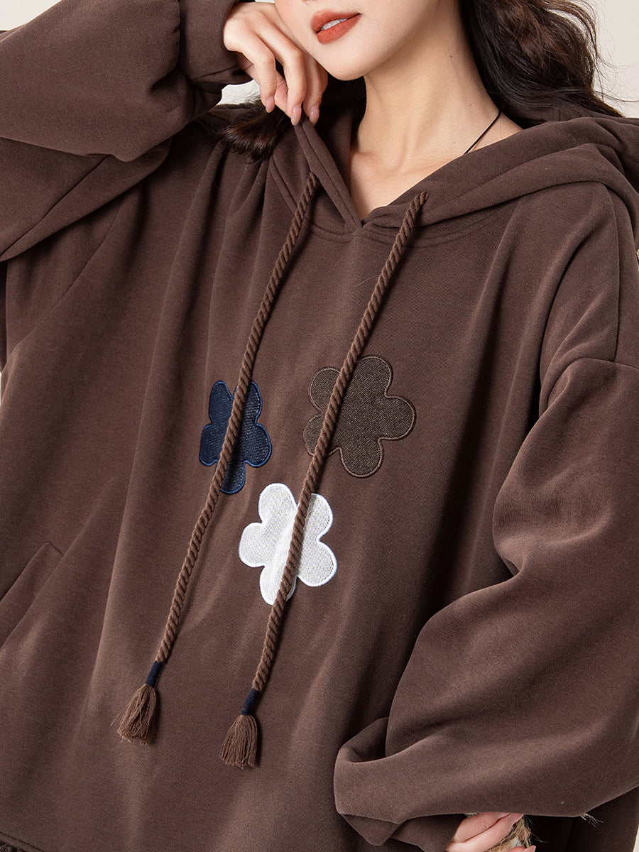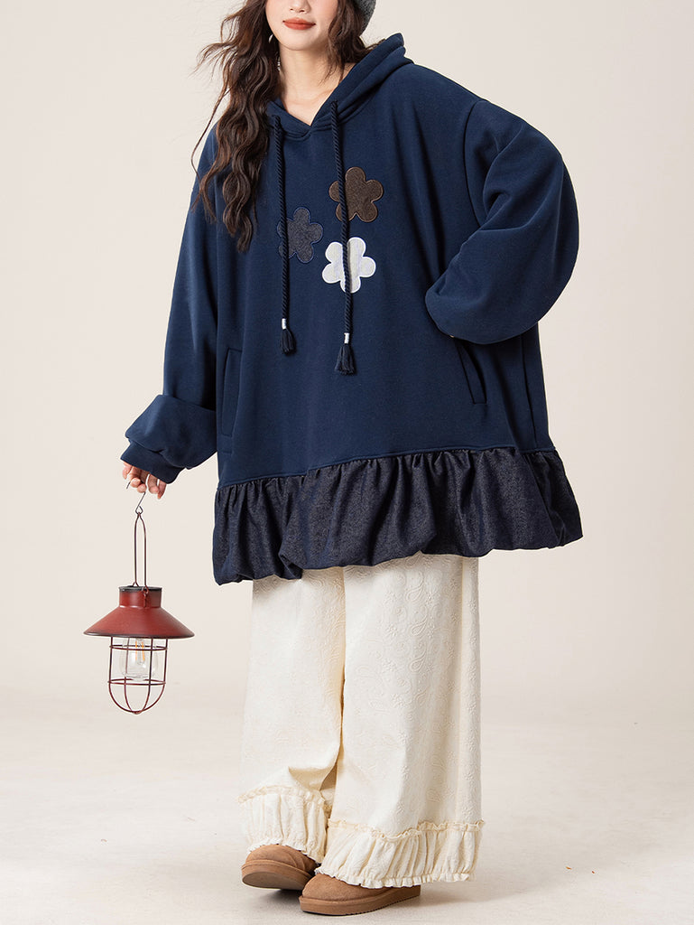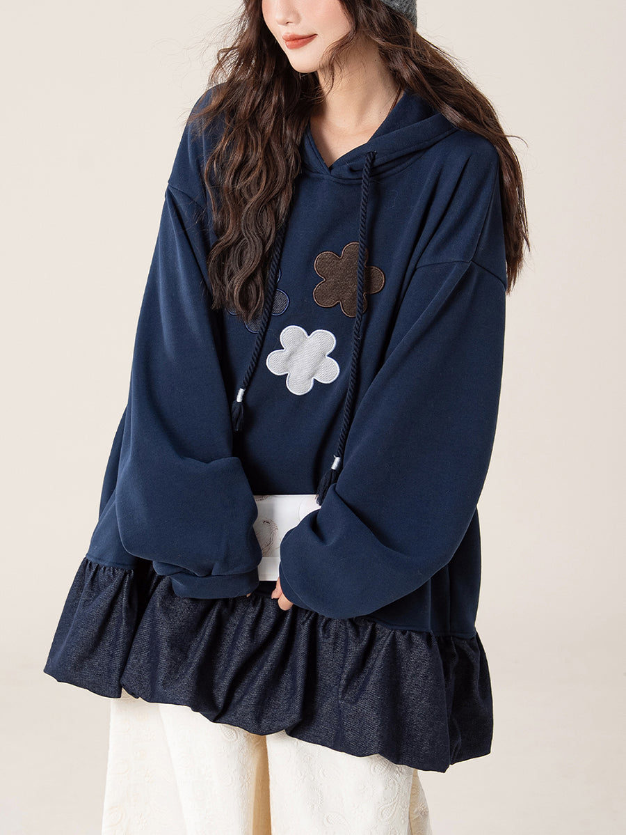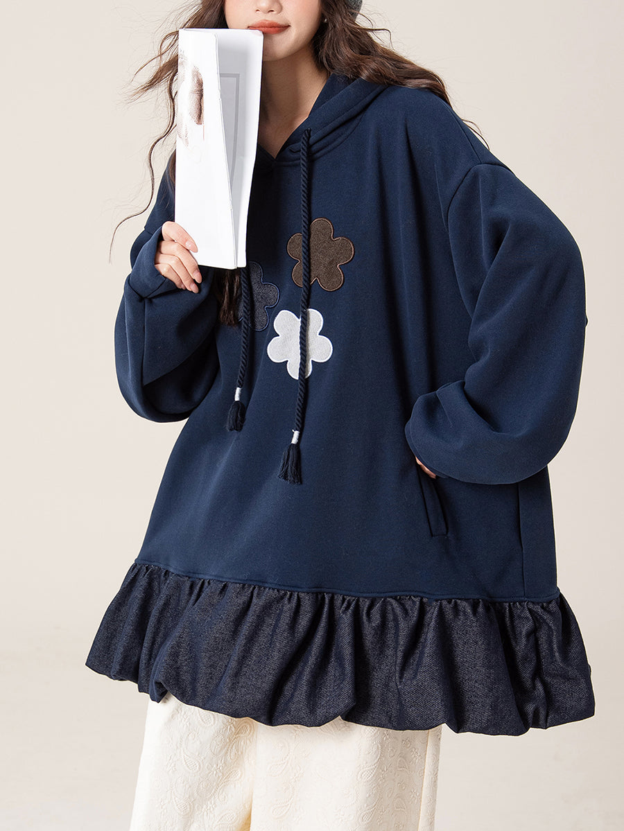 Dámské podzimní ležérní květinové šaty s kapucí a splývavým výstřihem