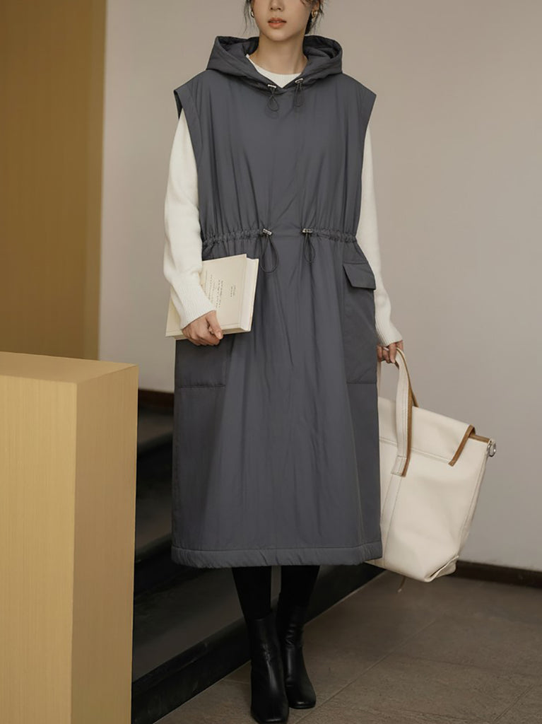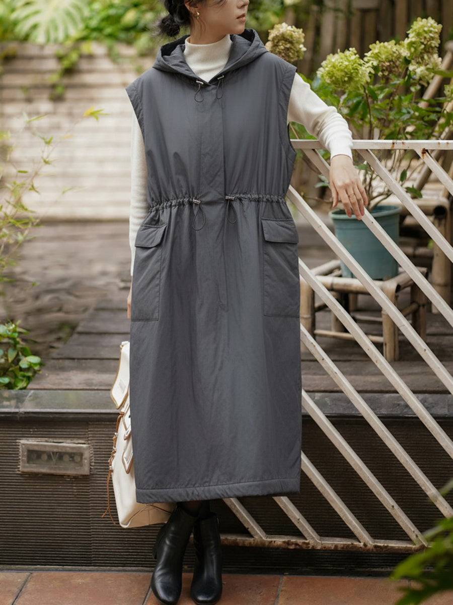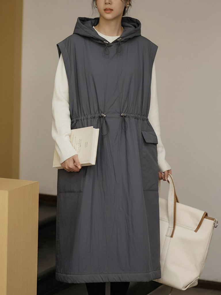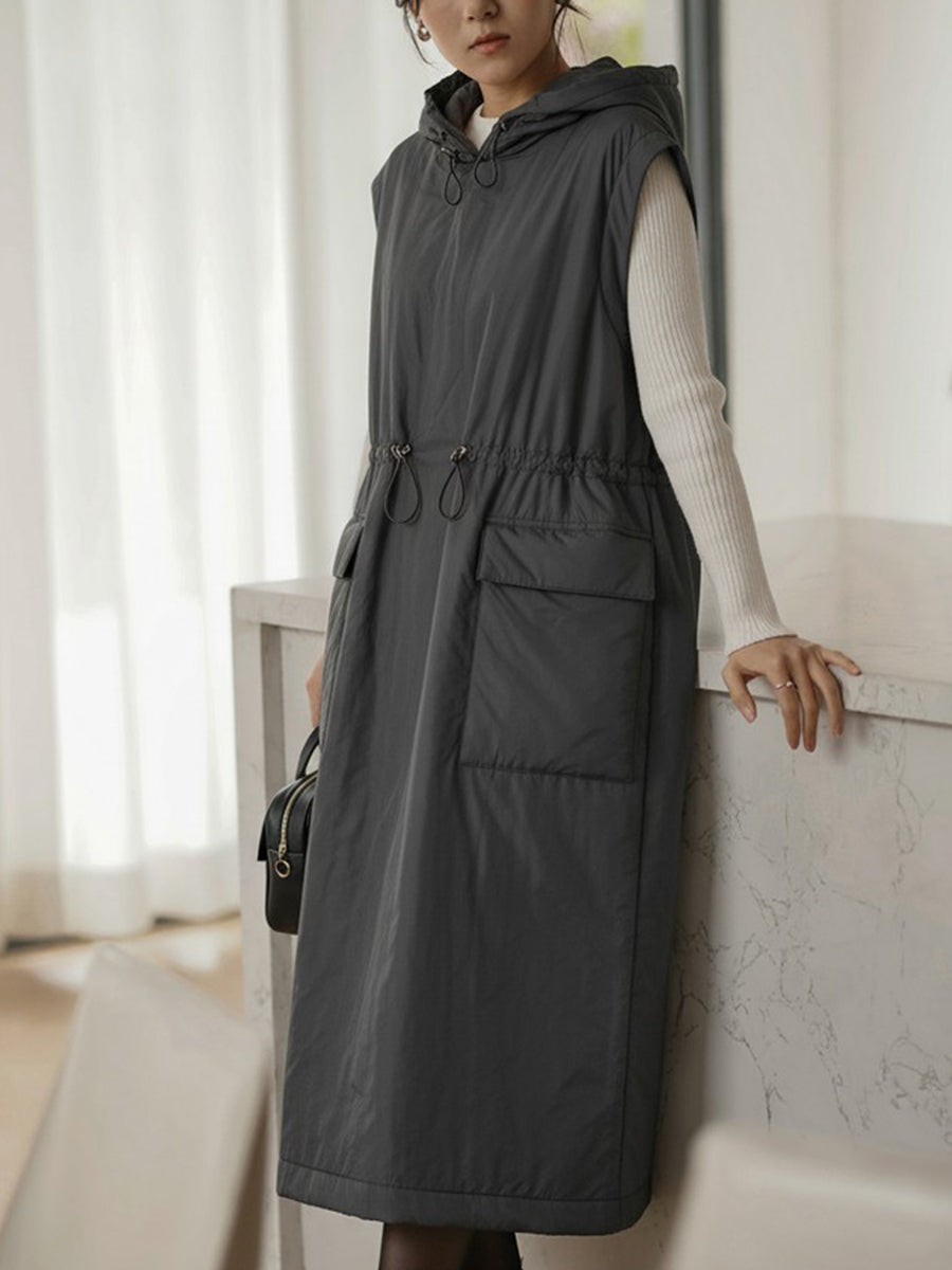 Dámské podzimní ležérní čisté barvy s kapucí vesta
