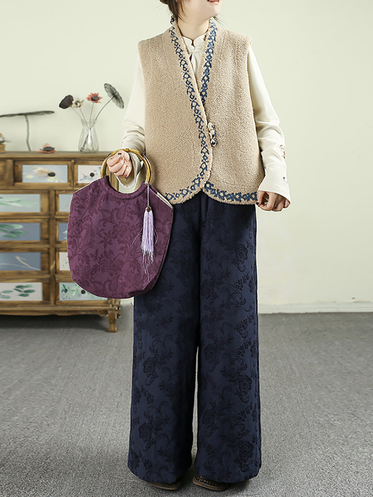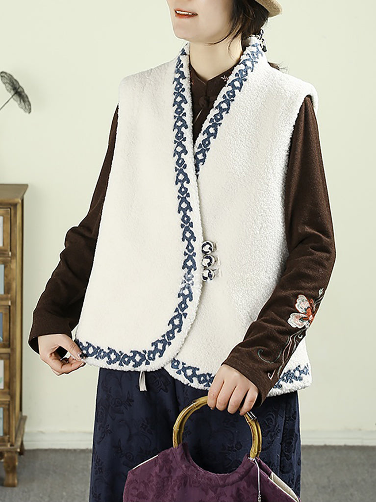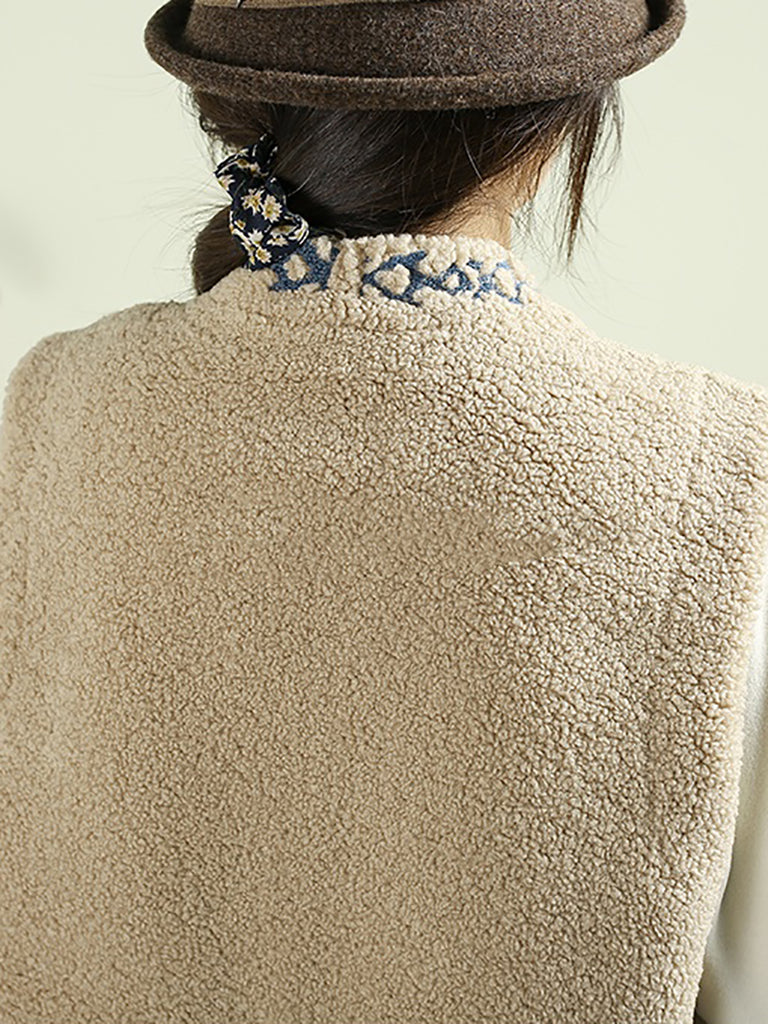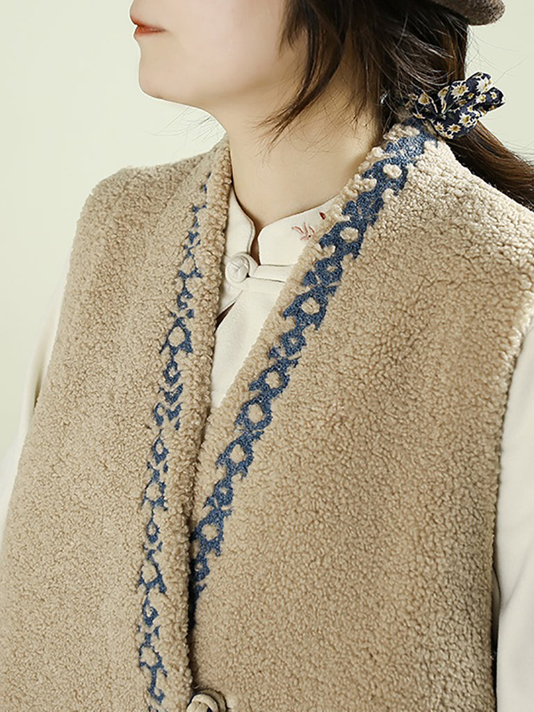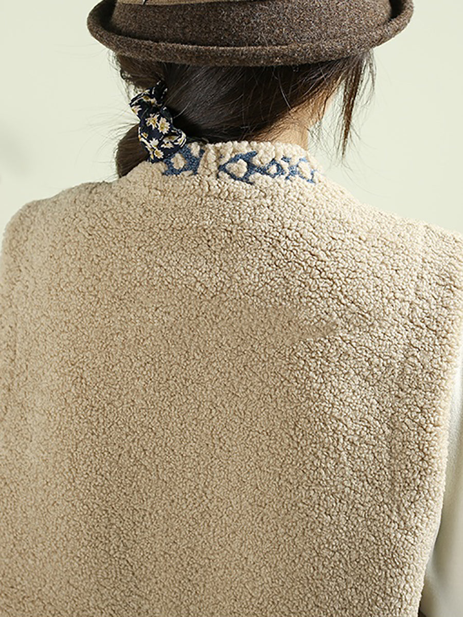 Dámská podzimní fleecová vesta s výstřihem do V a výšivkou