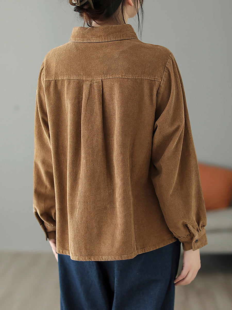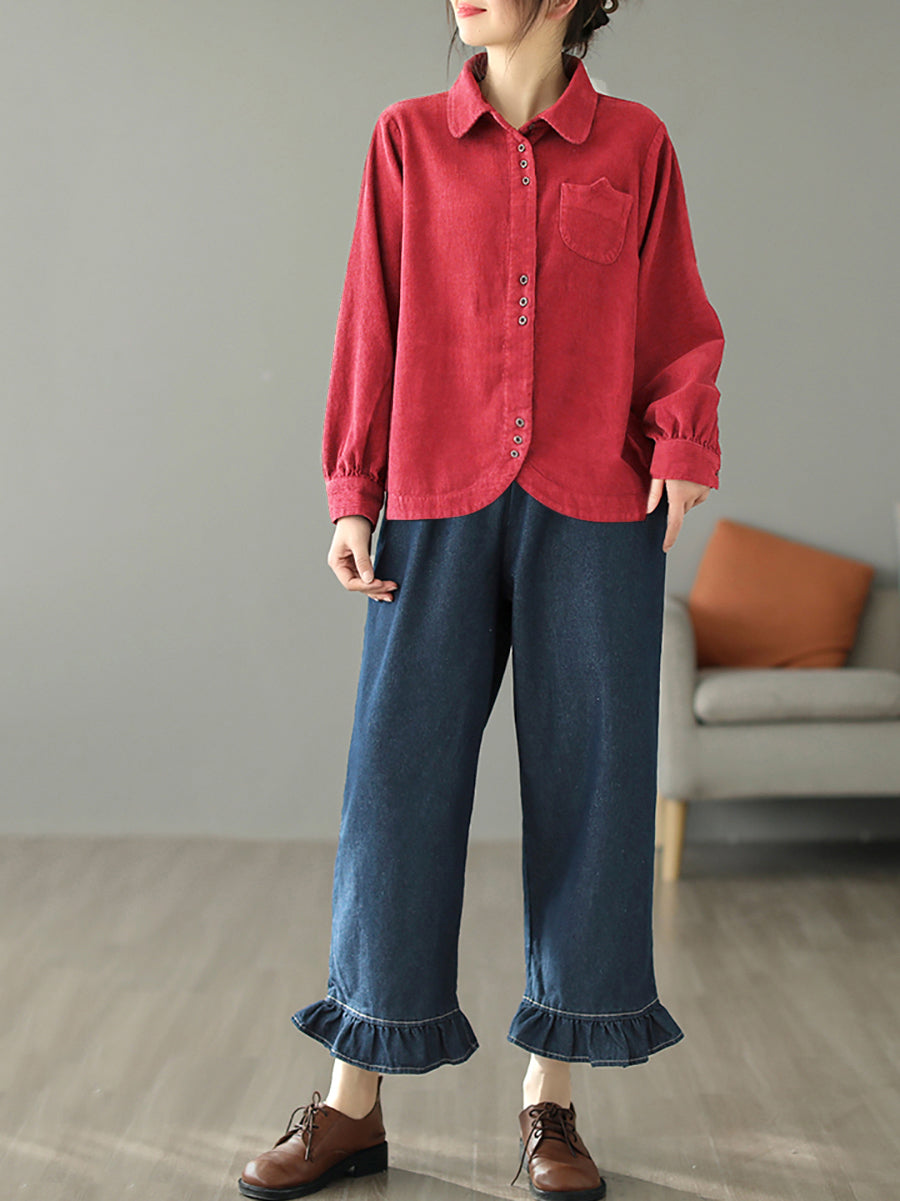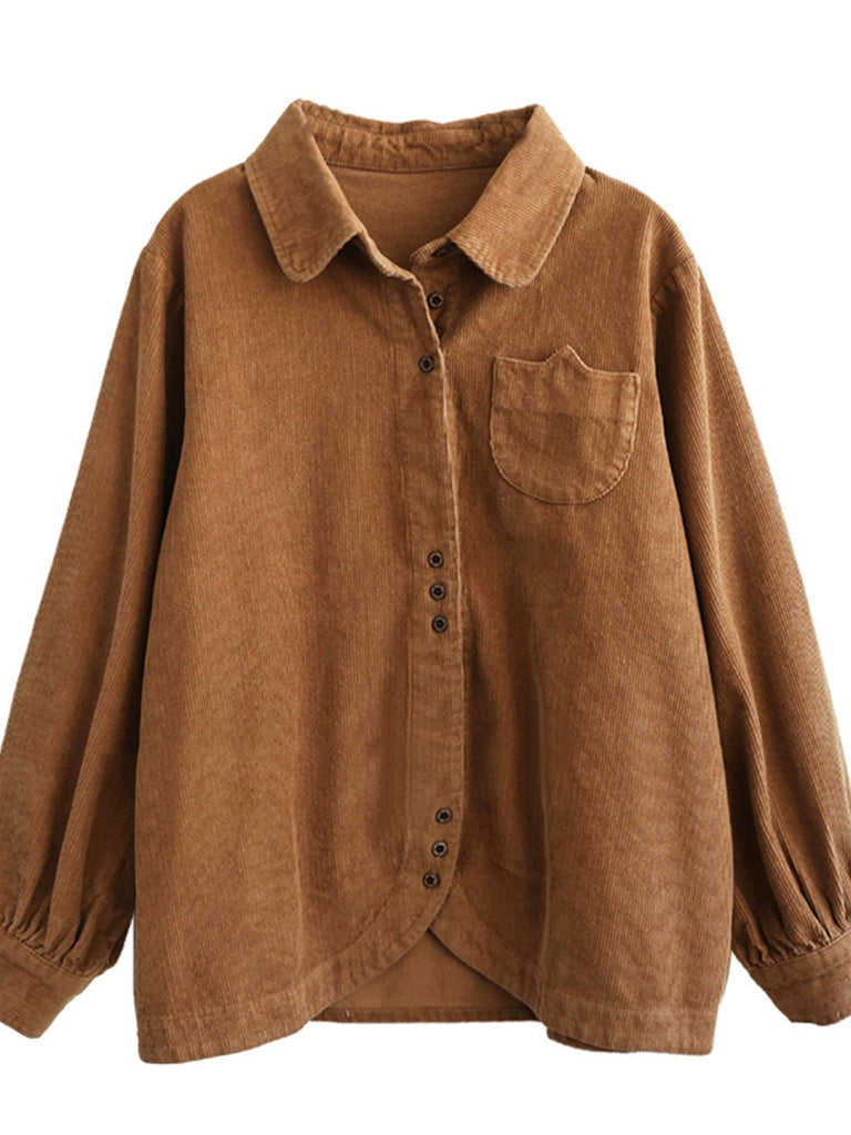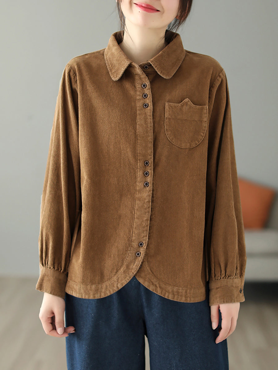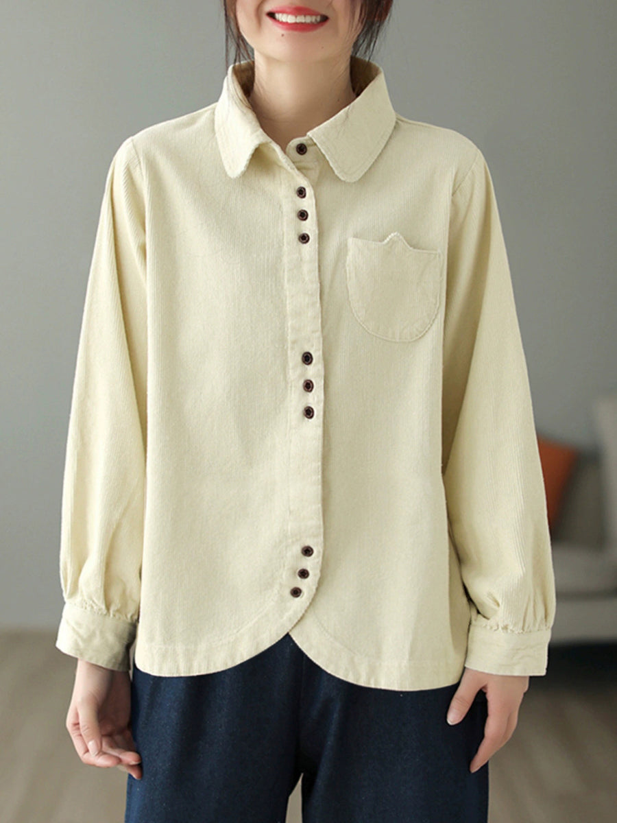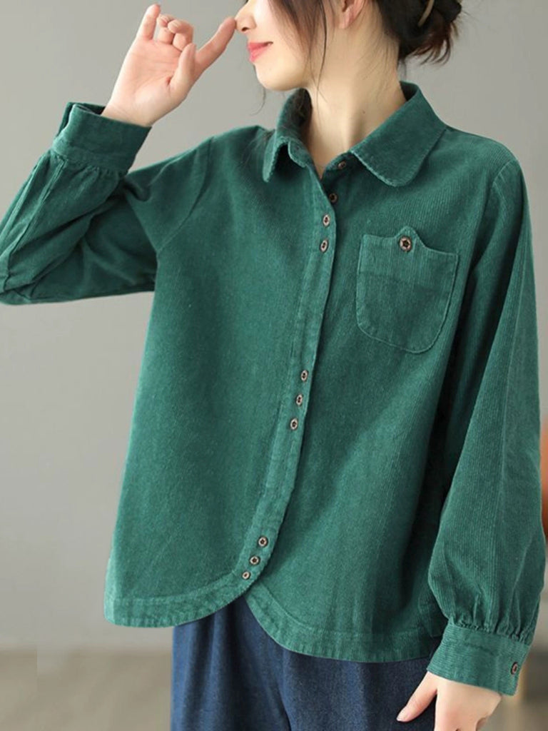 Dámská podzimní čistě barevná manšestrová košile s odkládacím límcem