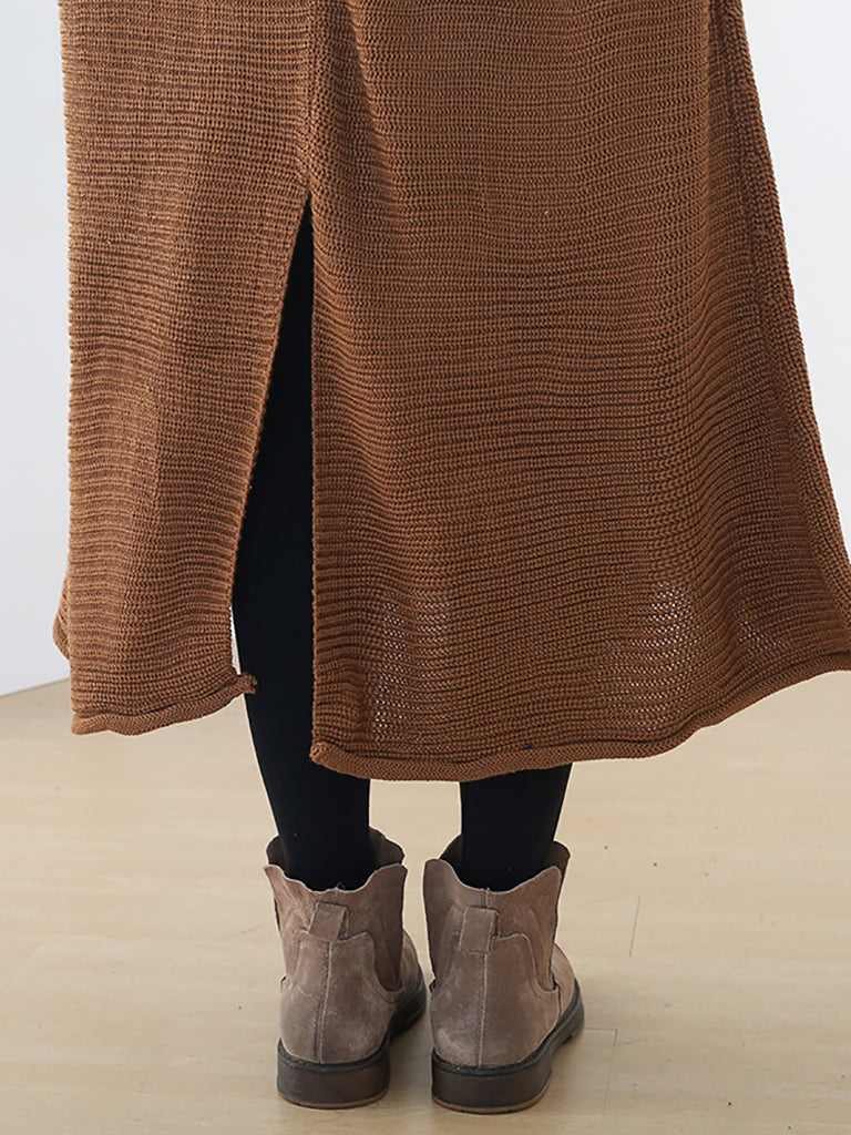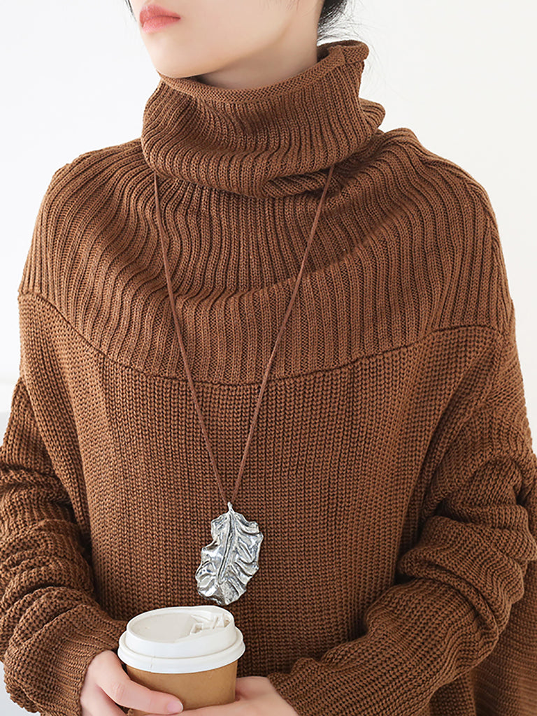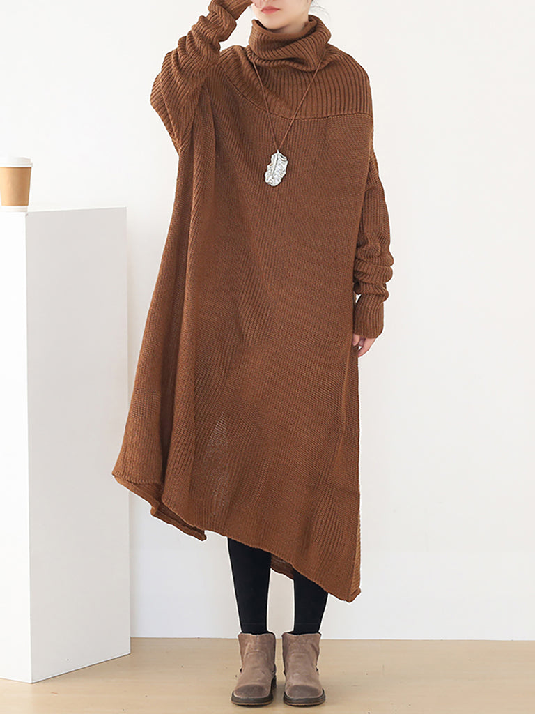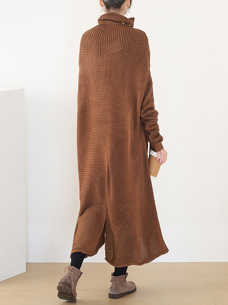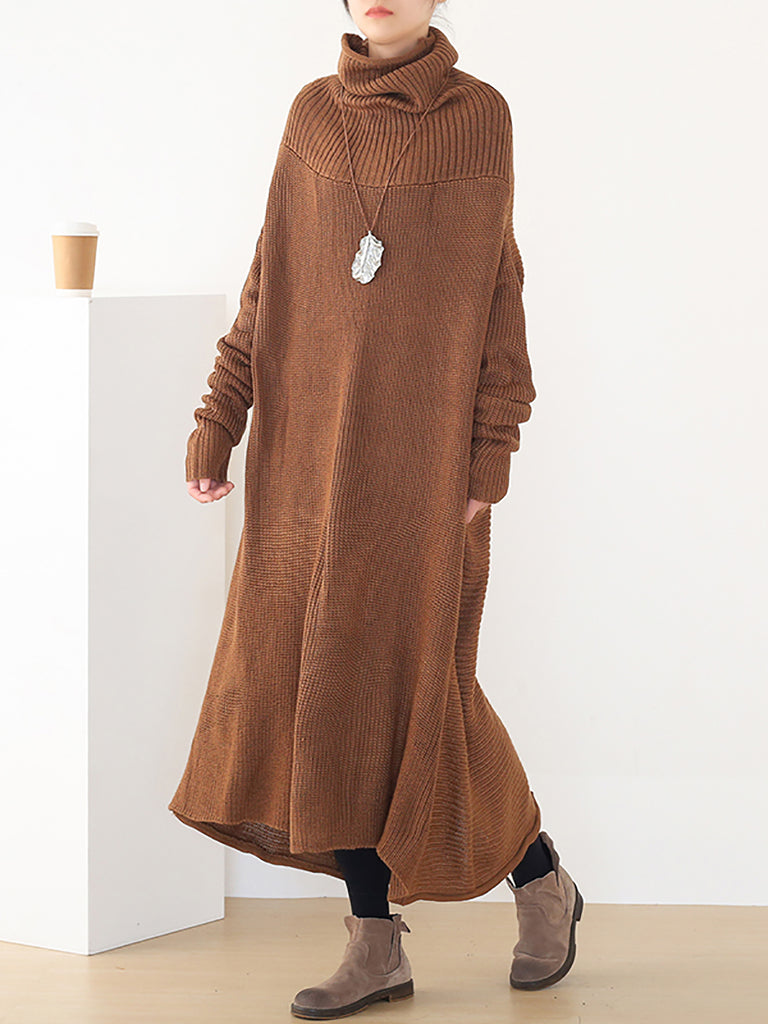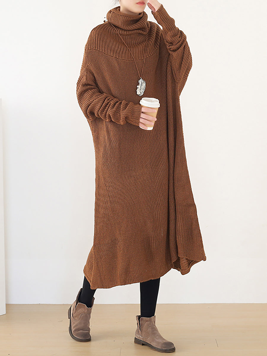 Dámské podzimní pletené volné šaty s rolákem v čisté barvě