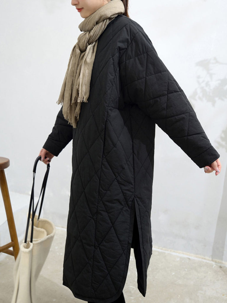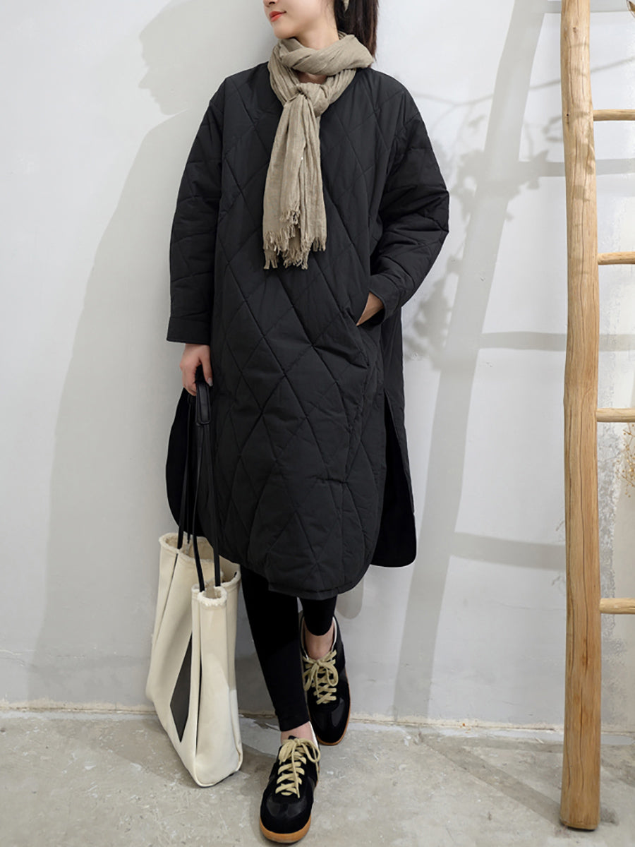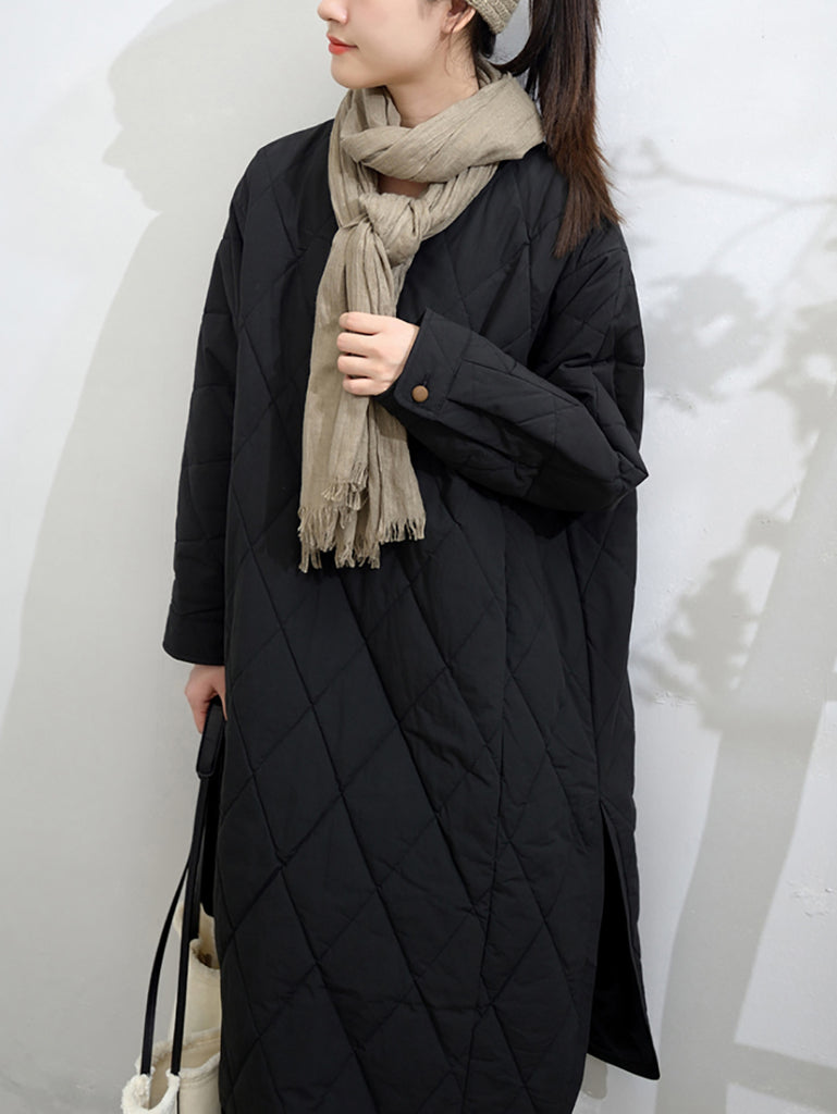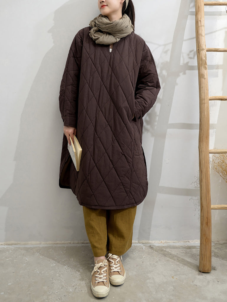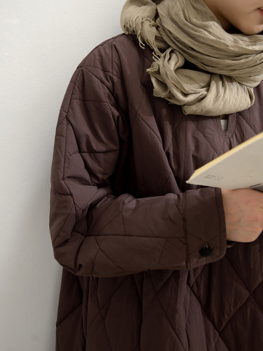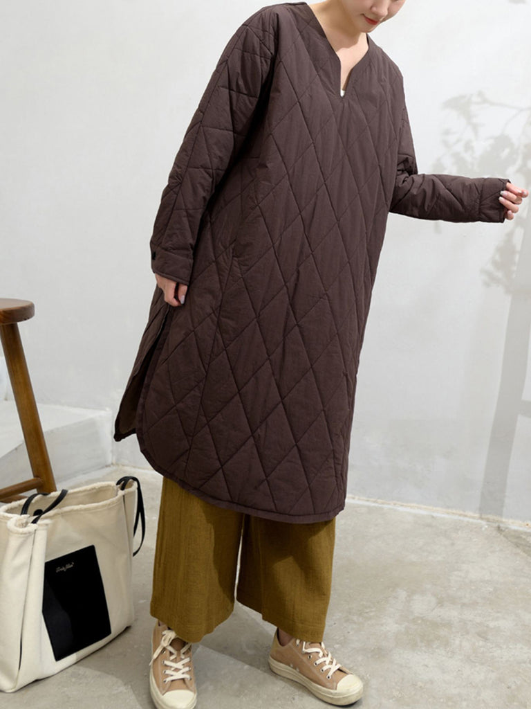 Dámské podzimní čisté barevné prošívané šaty s výstřihem do V