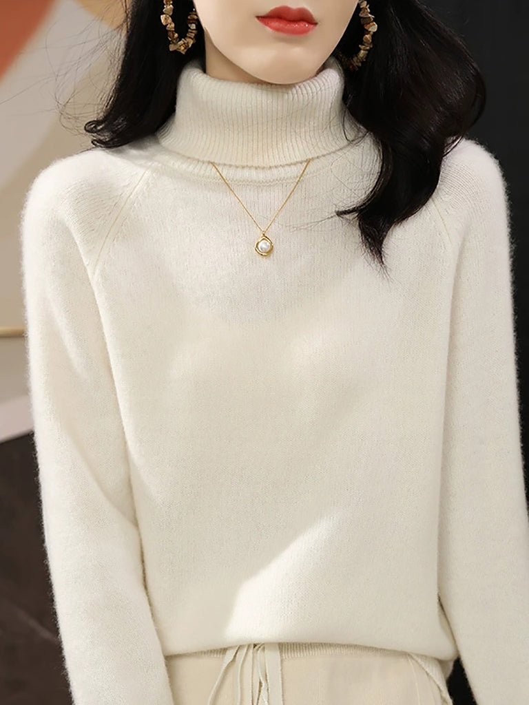 Dámský podzimní pletený svetr s čistě barevným vlněným rolákem