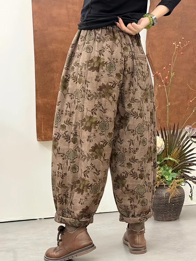 Dámské podzimní retro květinové harémové prošívané kalhoty