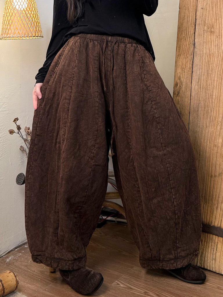 Dámské podzimní retro lněné kalhoty s prošívaným harémem