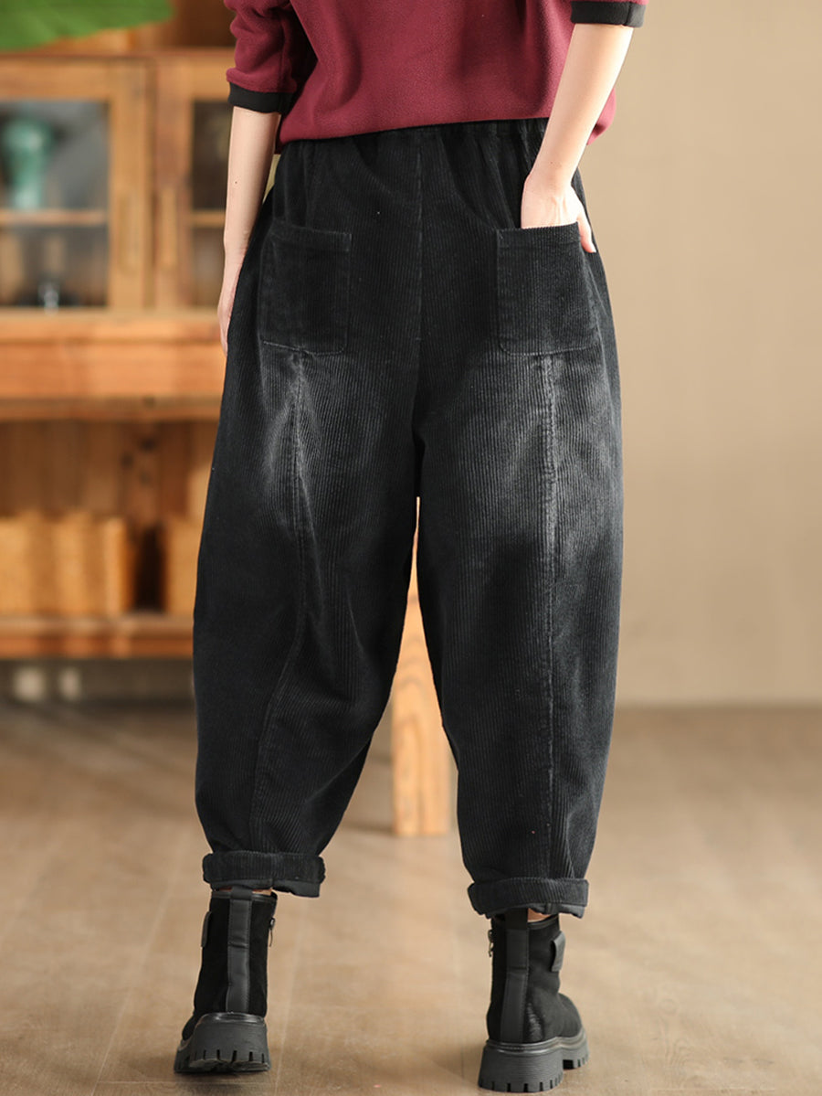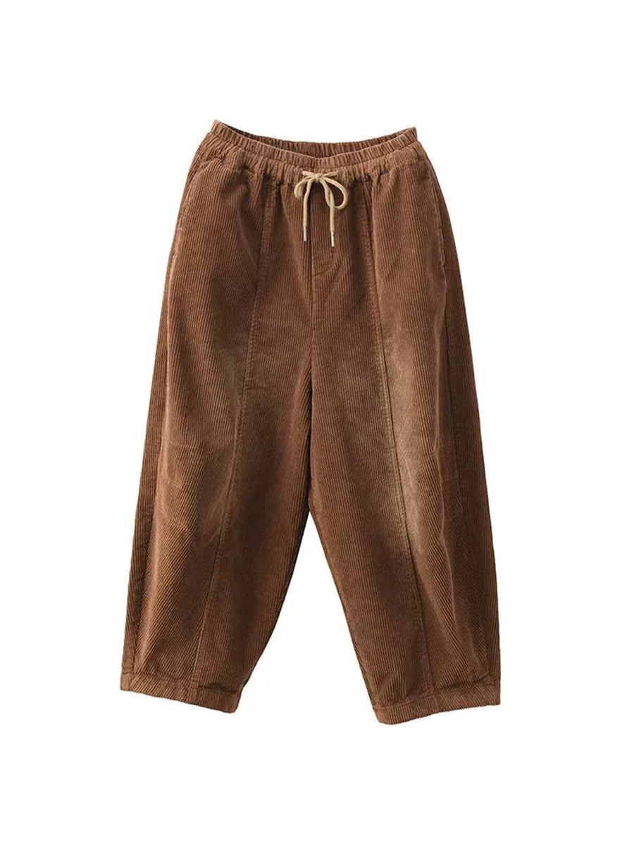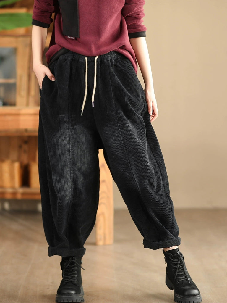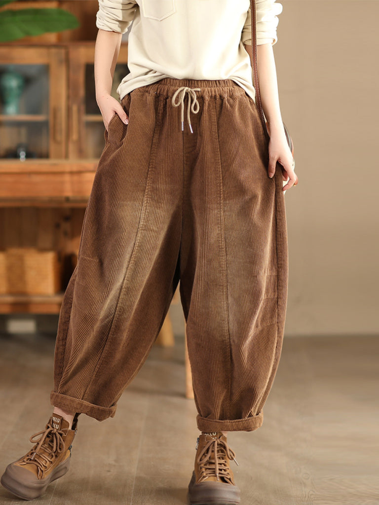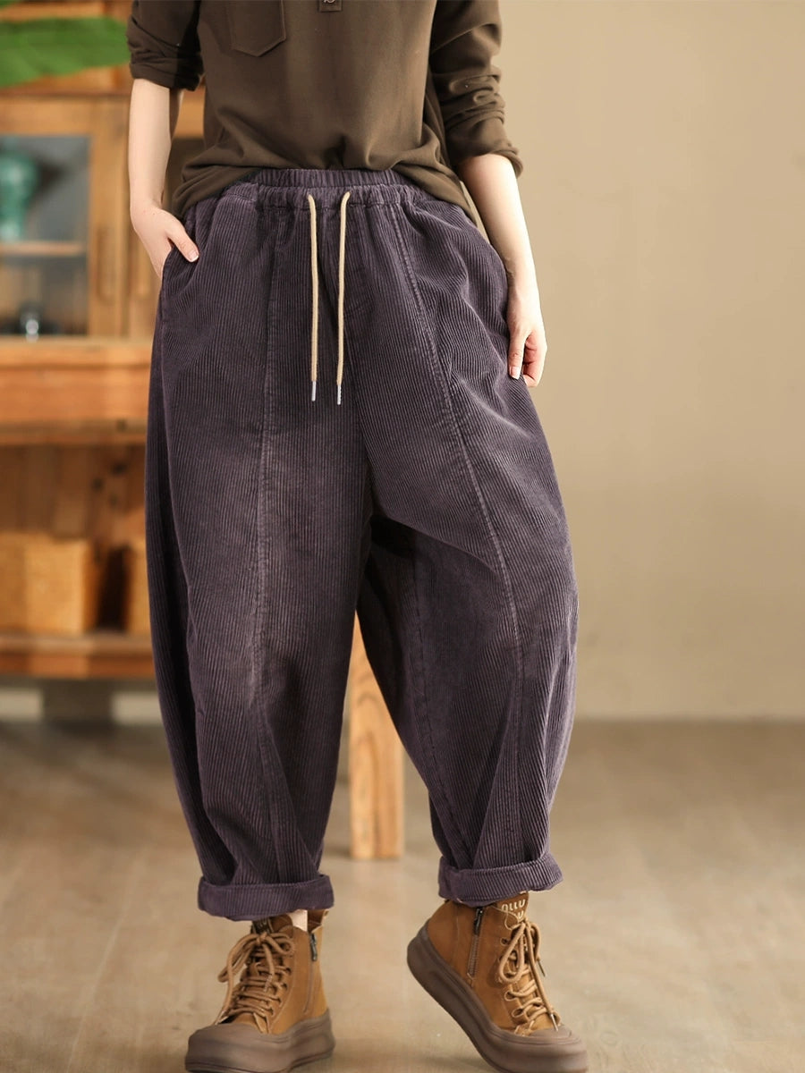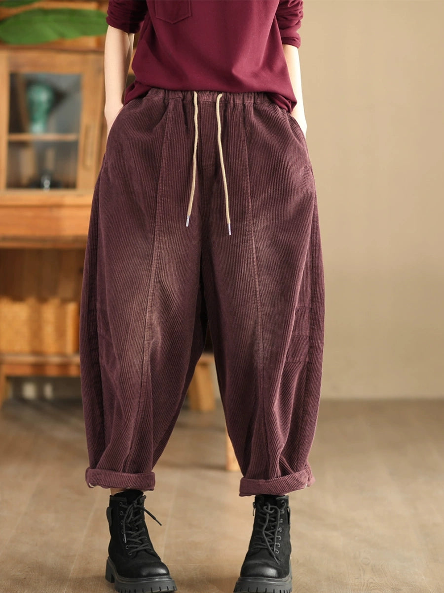 Dámské podzimní retro čisté barevné manšestrové harémové kalhoty