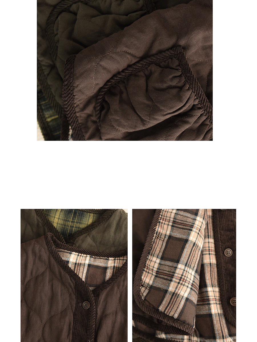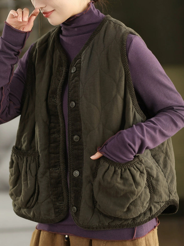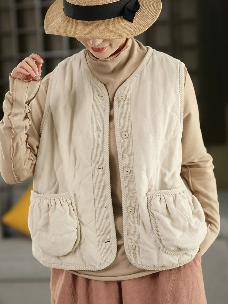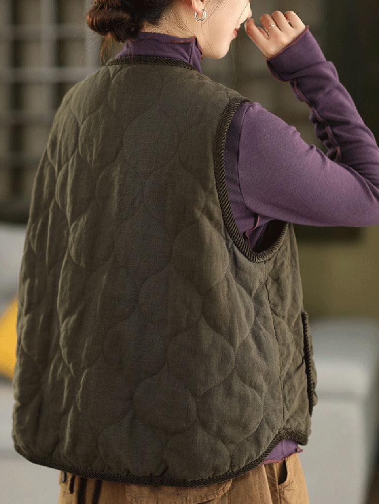 Dámská podzimní vesta s výstřihem do O-krku, 100% lněná prošívaná
