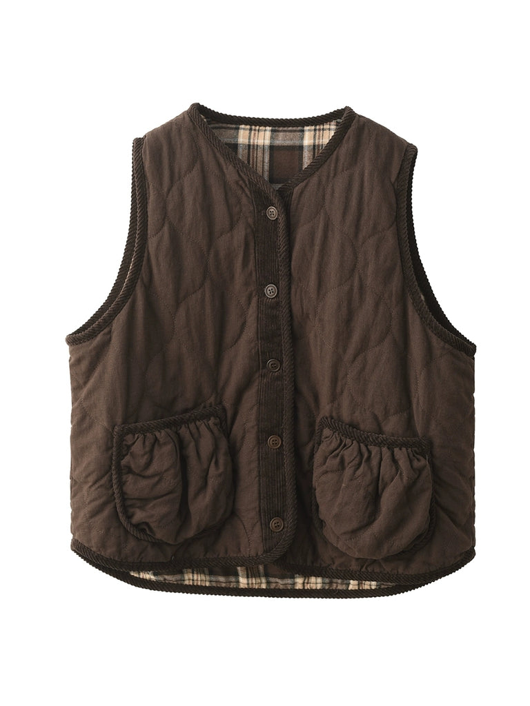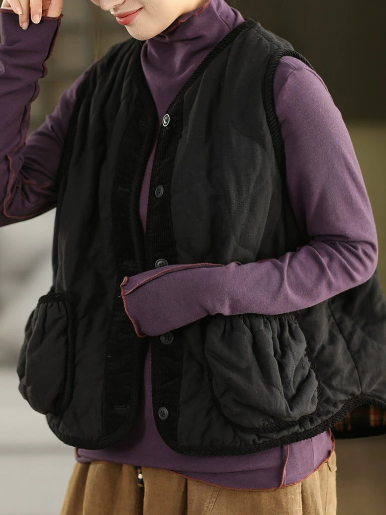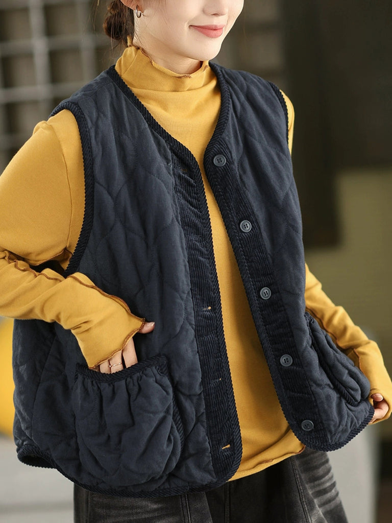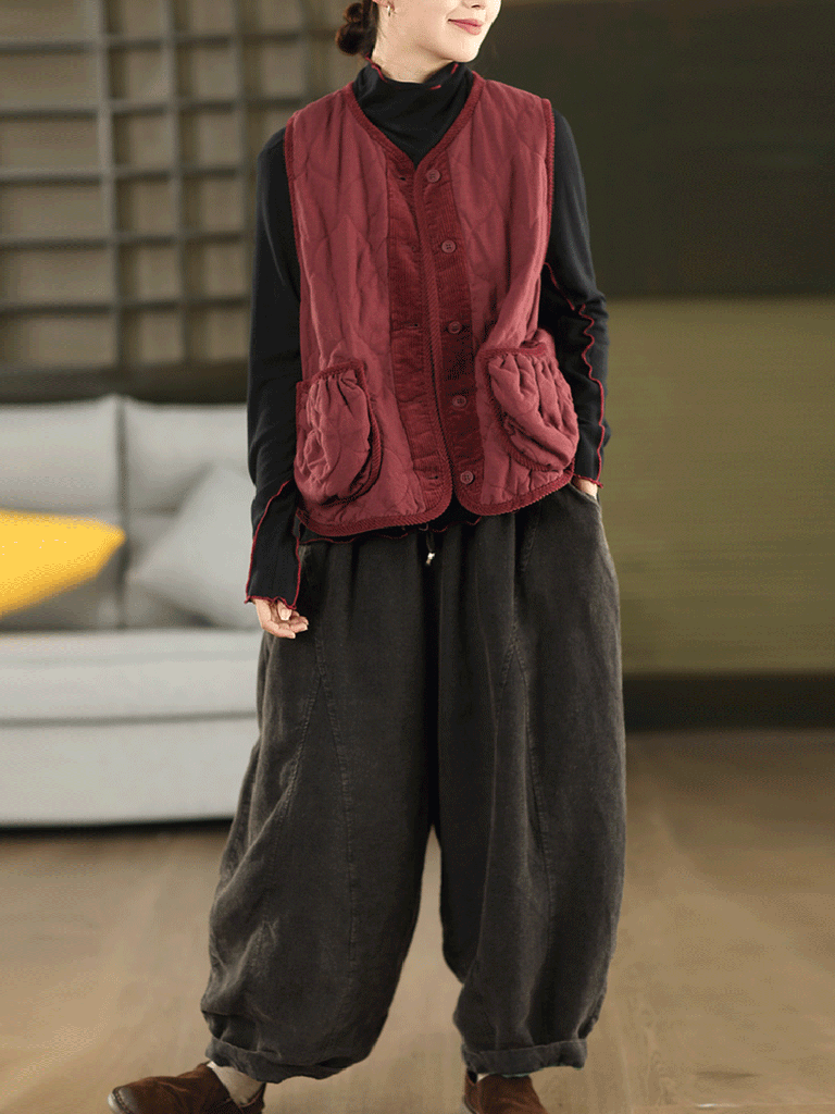 Dámská podzimní vesta s výstřihem do O-krku, 100% lněná prošívaná