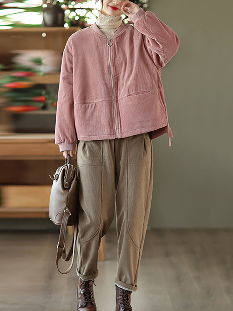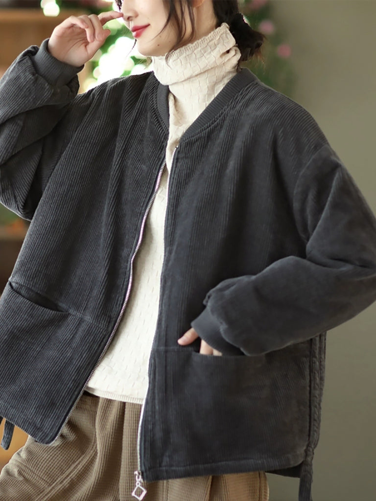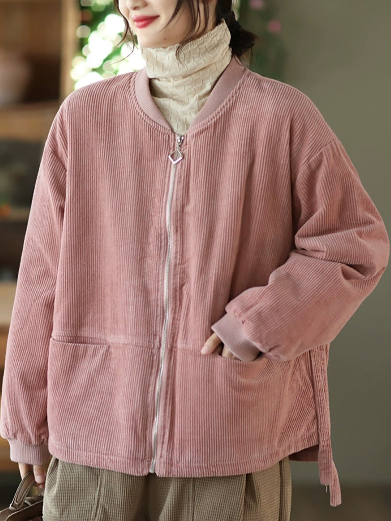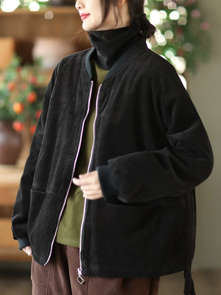 Dámská podzimní vintage čistě barevná manšestrová bunda