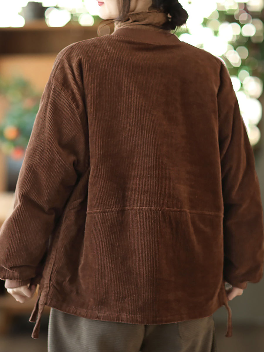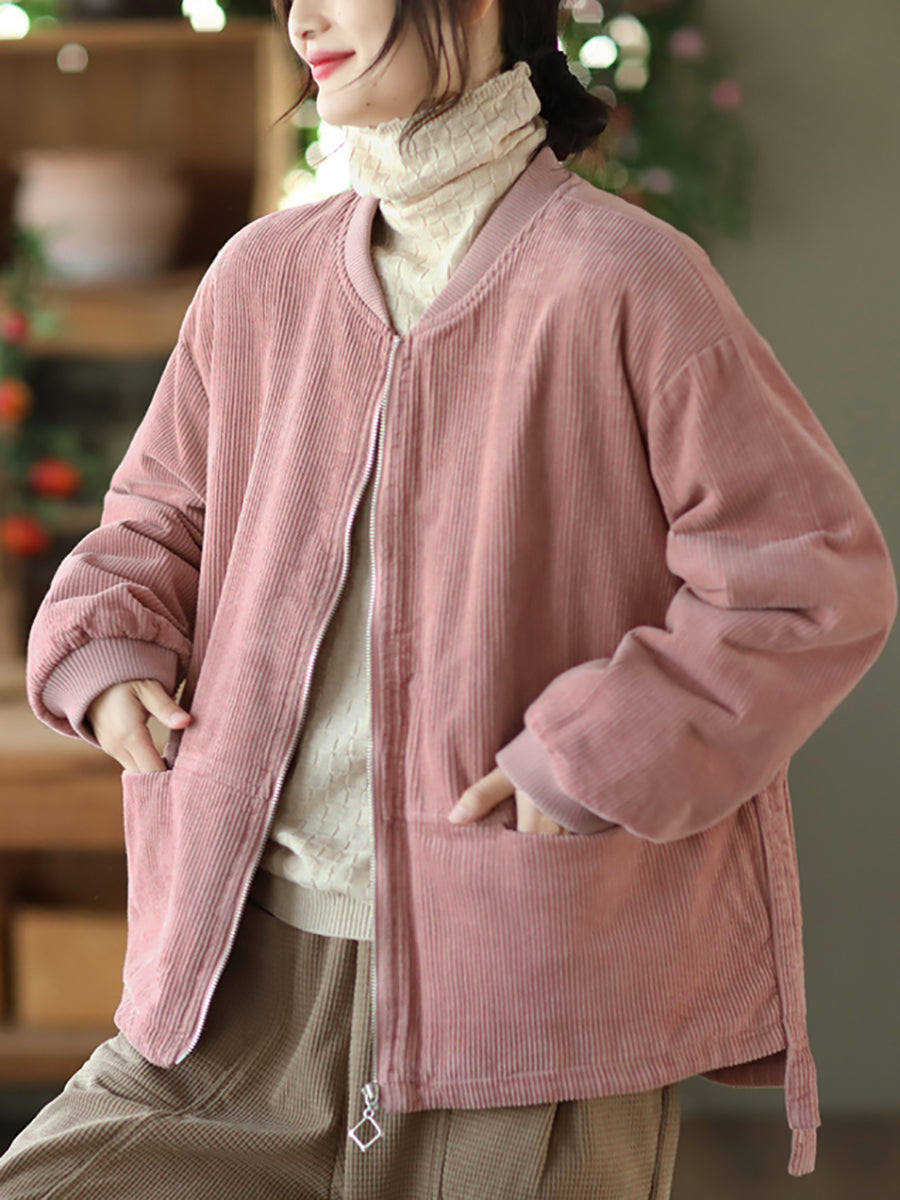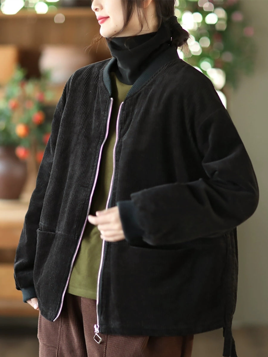 Dámská podzimní vintage čistě barevná manšestrová bunda