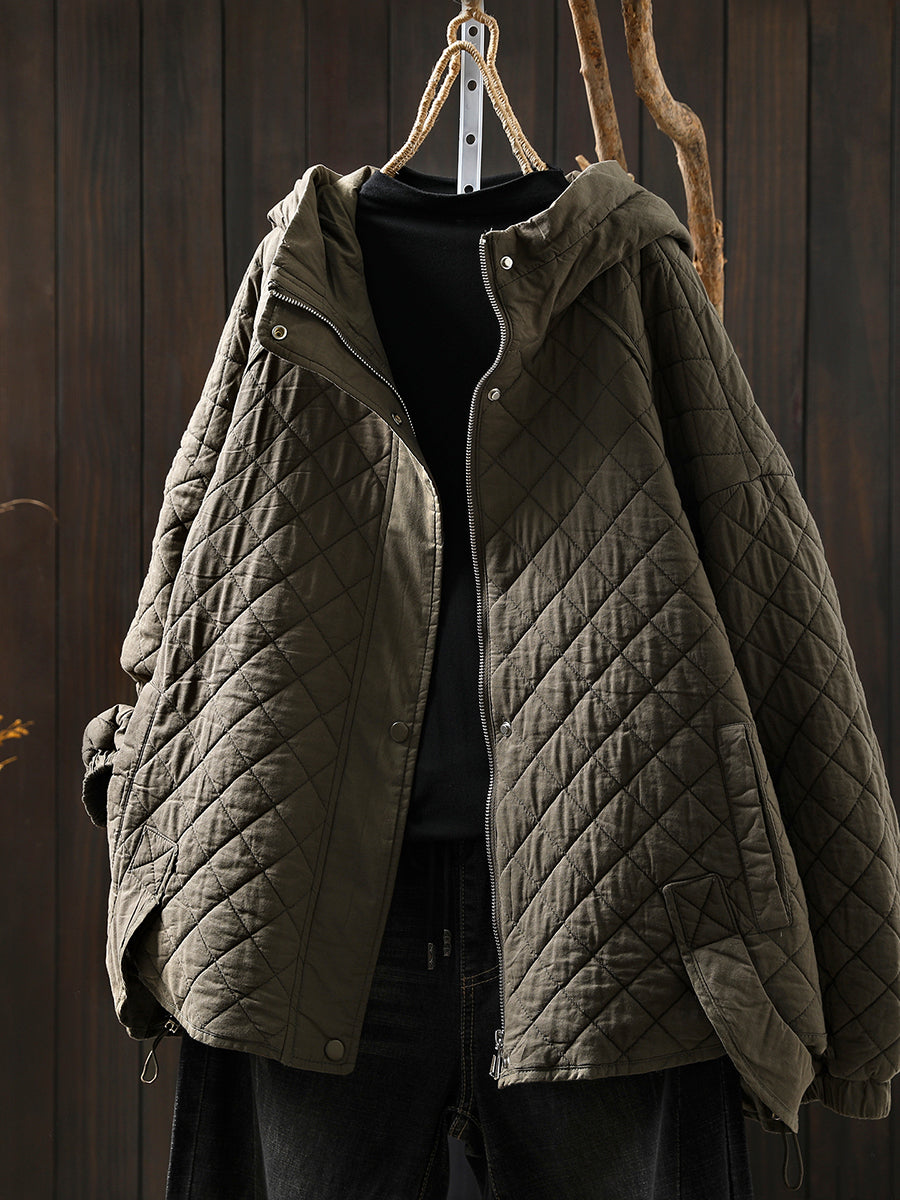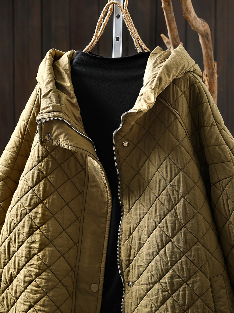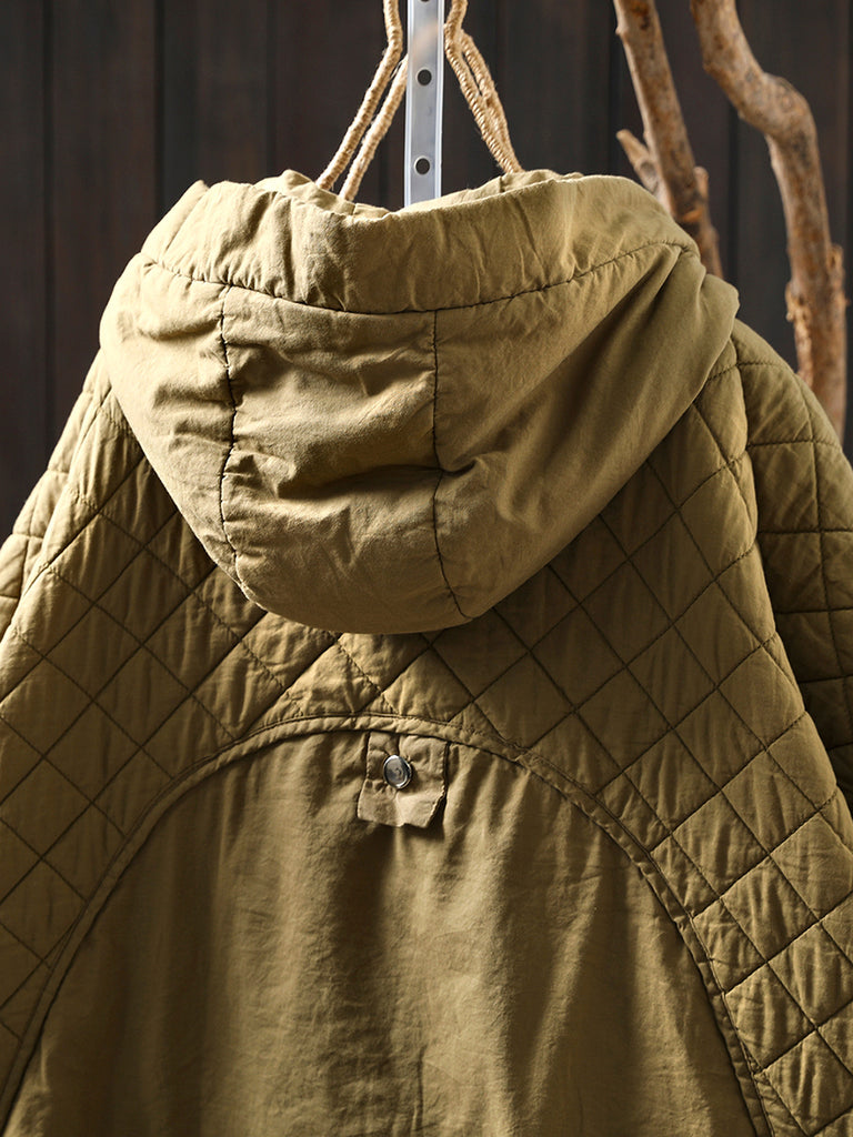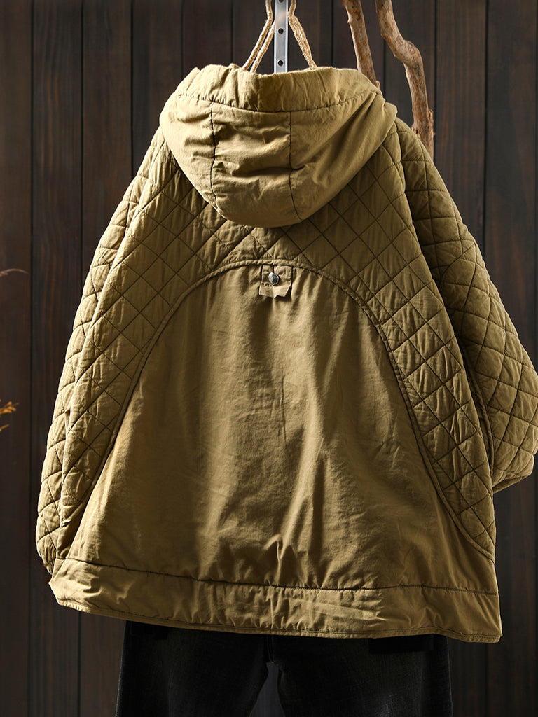 Dámská podzimní vintage čistě barevná bavlněná bunda s kapucí