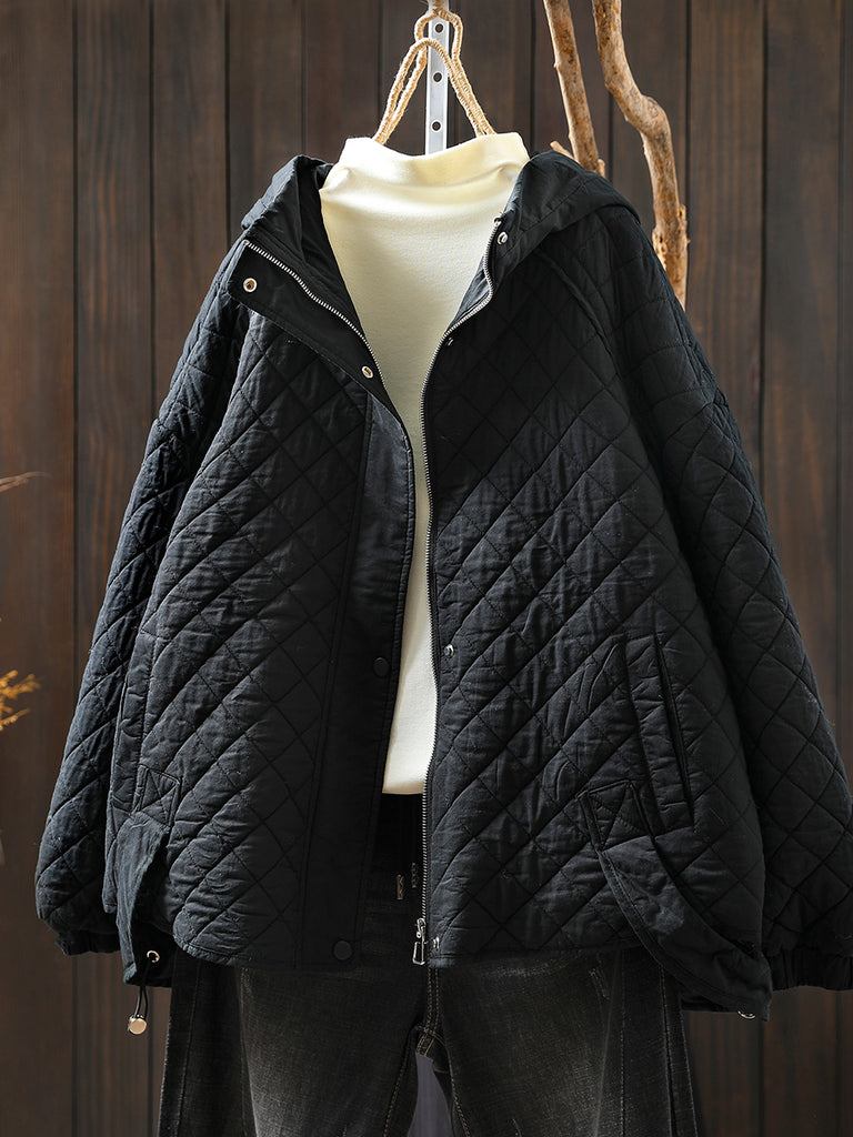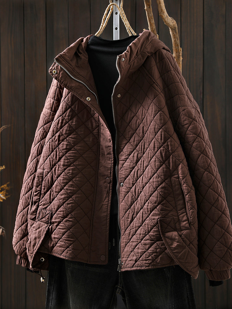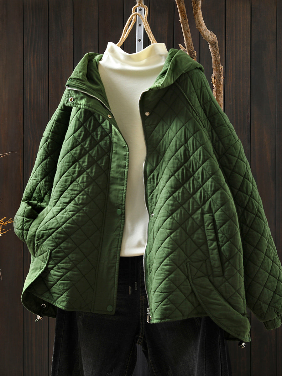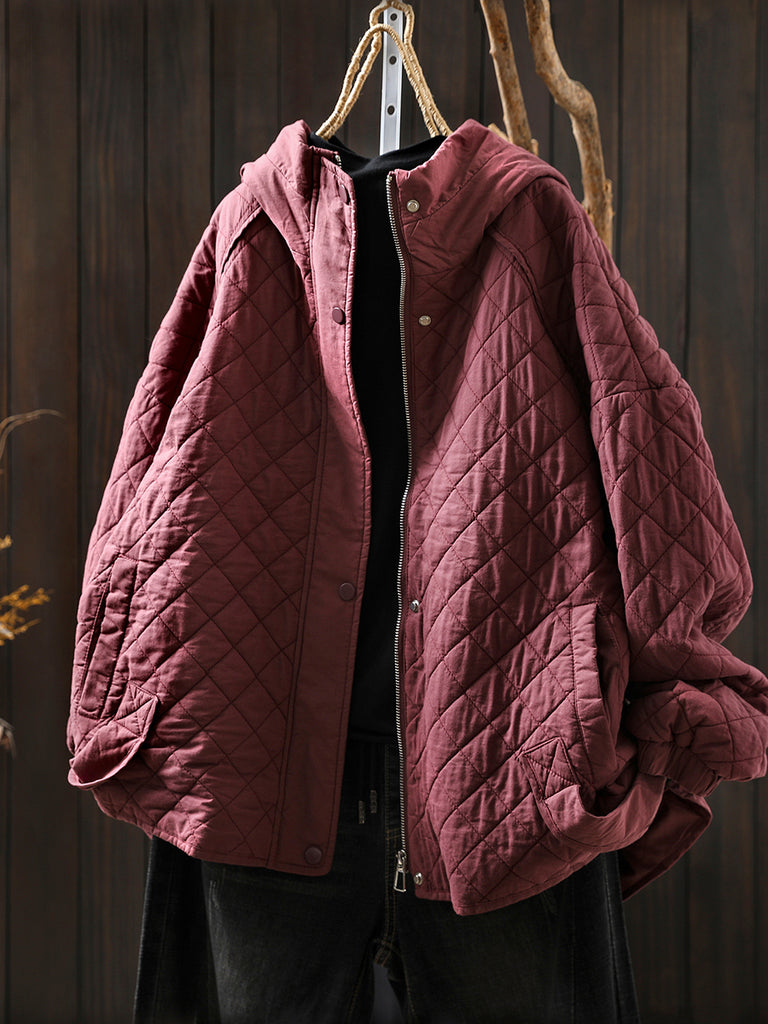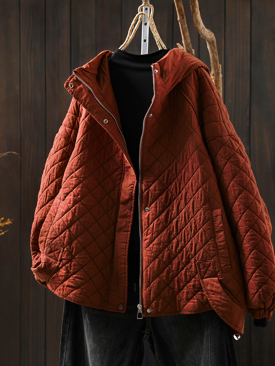 Dámská podzimní vintage čistě barevná bavlněná bunda s kapucí