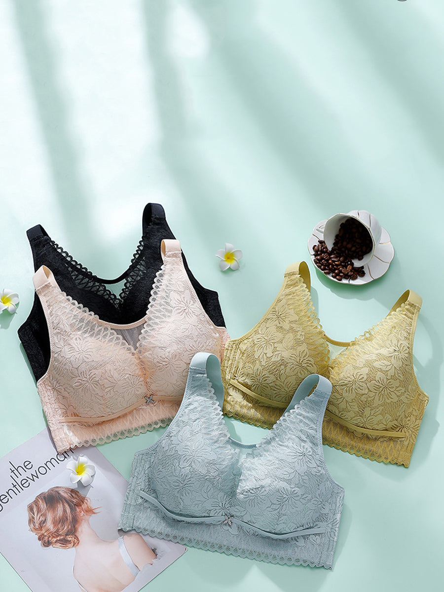 Dámská ležérní umělecká květinová krajková bezdrátová podprsenka