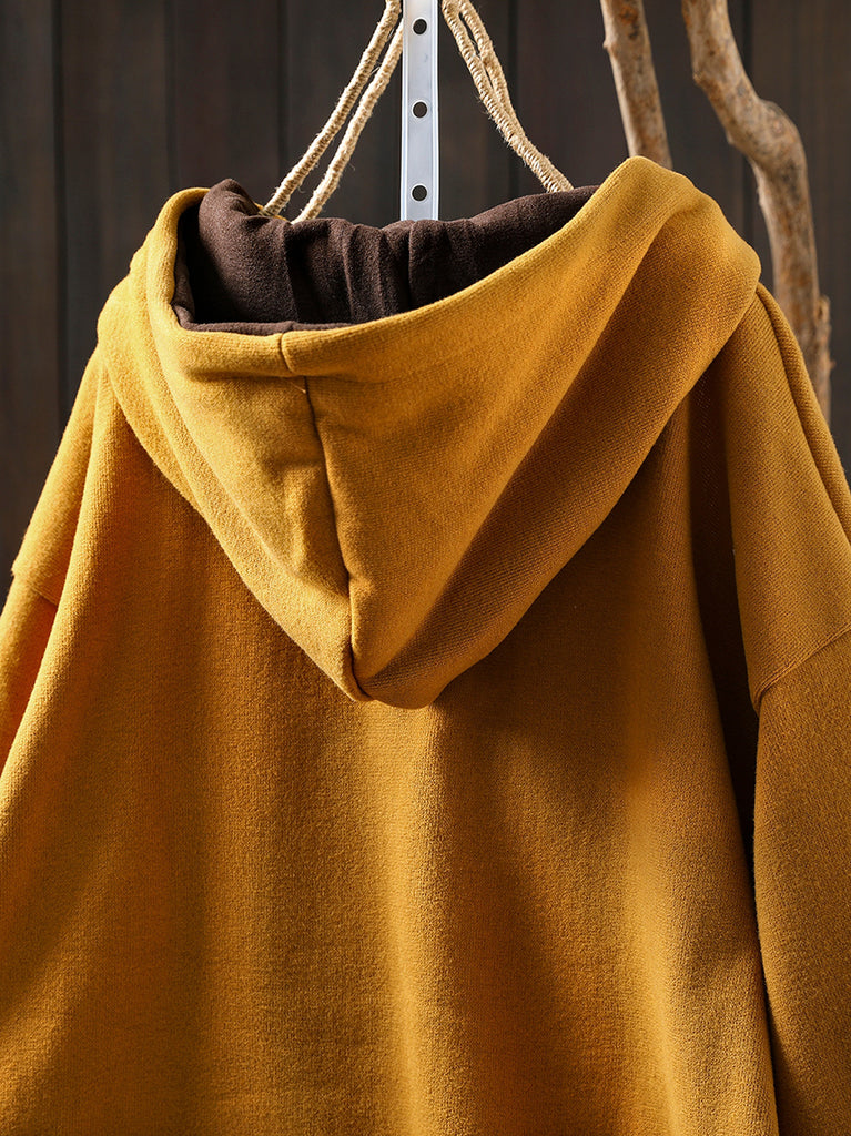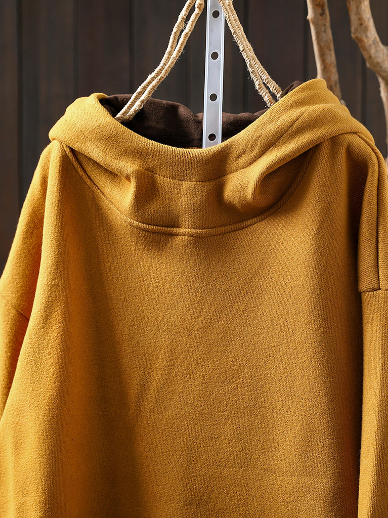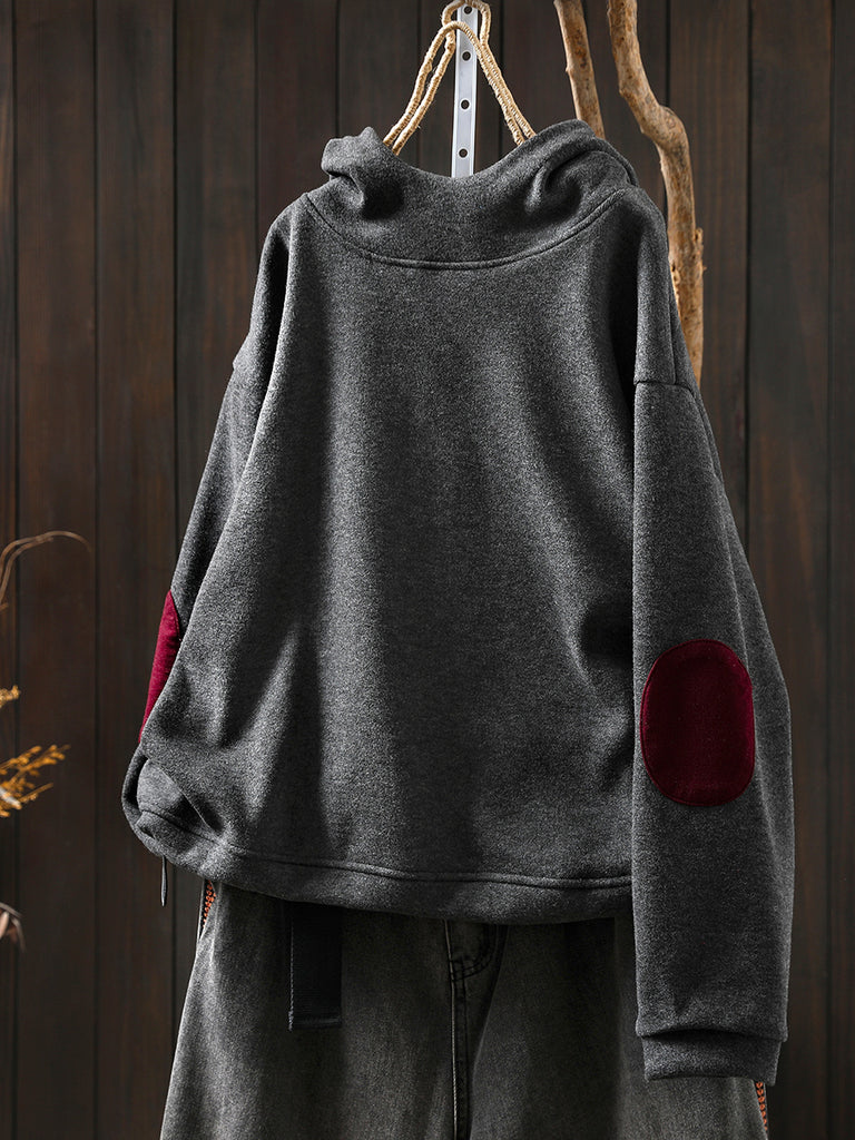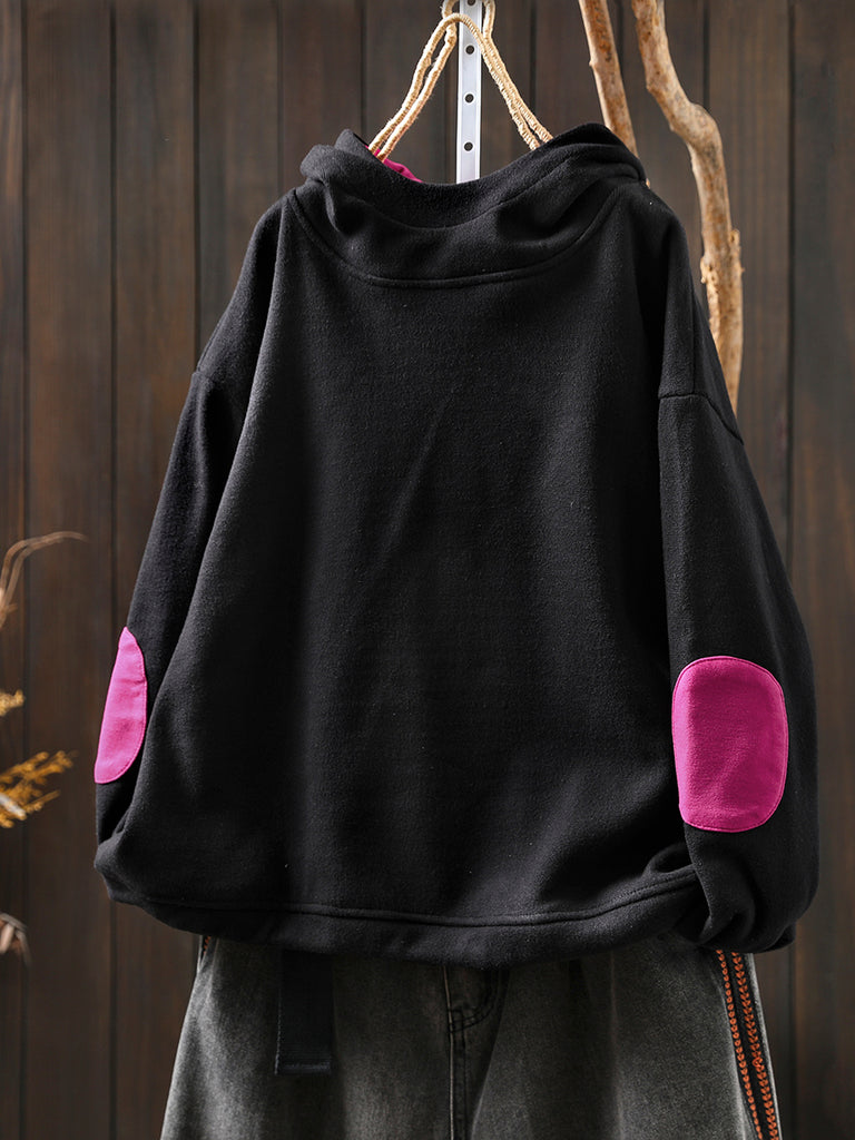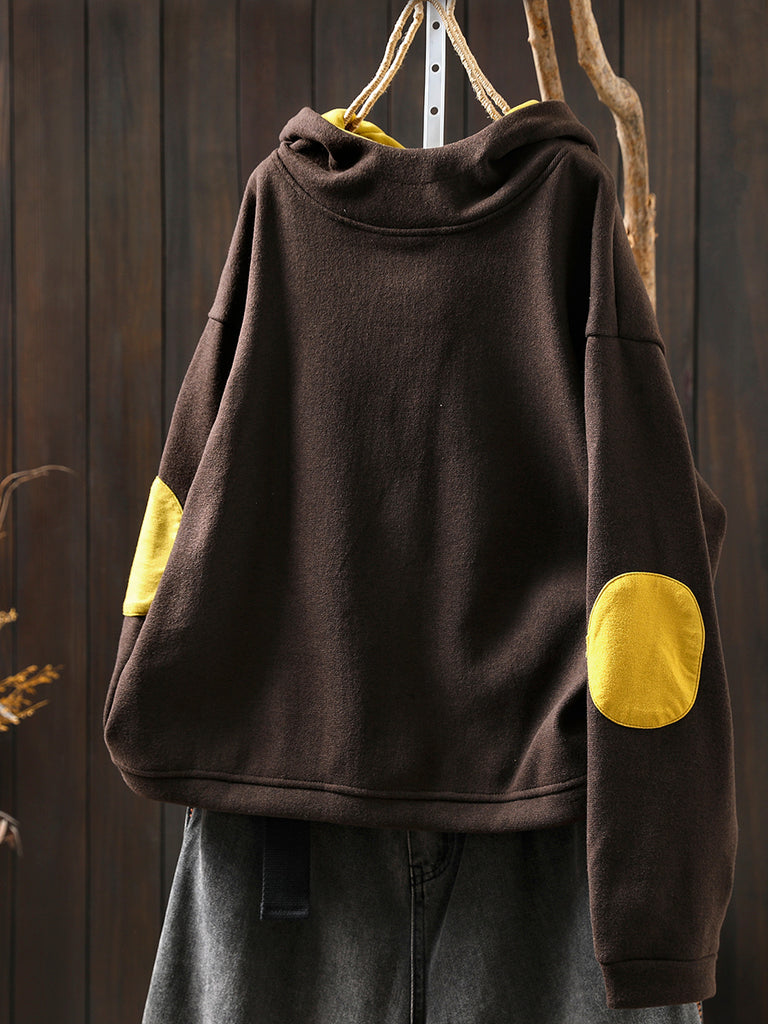 Dámská ležérní podzimní barevně blokovaná bavlněná mikina s fleecovou podšívkou