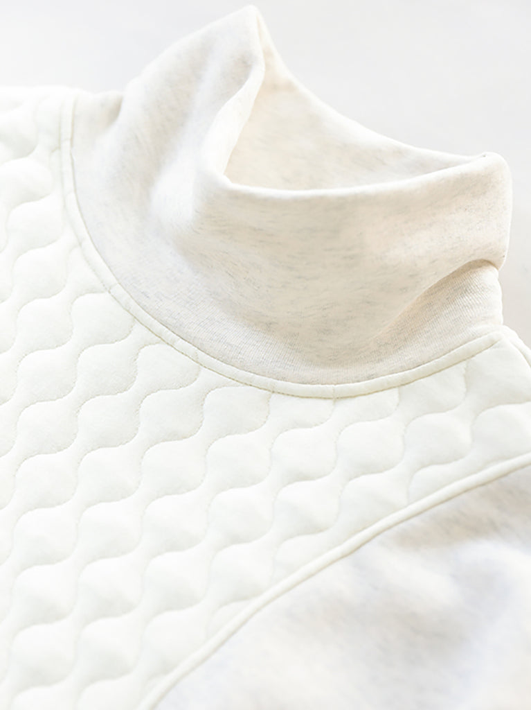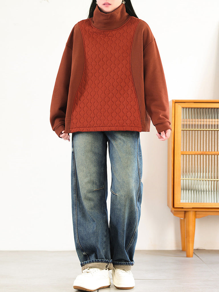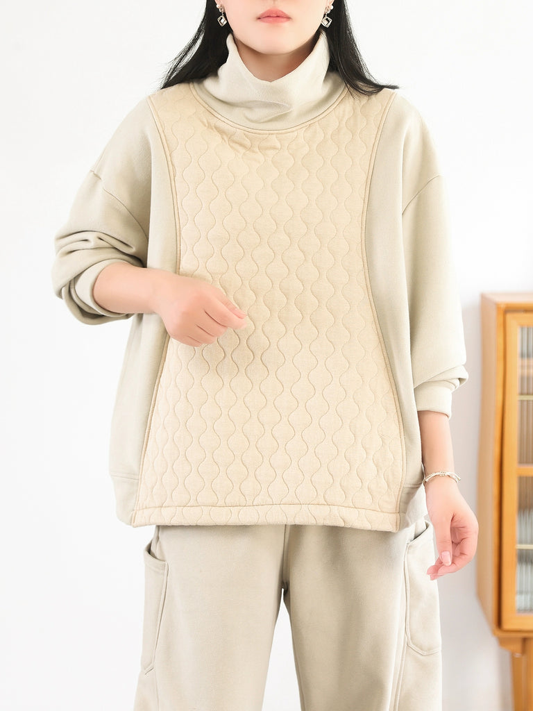 Tato halenka je vyrobena ze směsi 80 % polyesteru, 15 % vlny a 5 % spandexu, která nabízí pohodlí i teplo. Má jednobarevný design, rolák a dlouhé rukávy klasického střihu, které jsou uzpůsobeny pro ležérní nošení. Je ideální na podzimní a zimní nošení a kombinuje styl se sezónní praktičností.