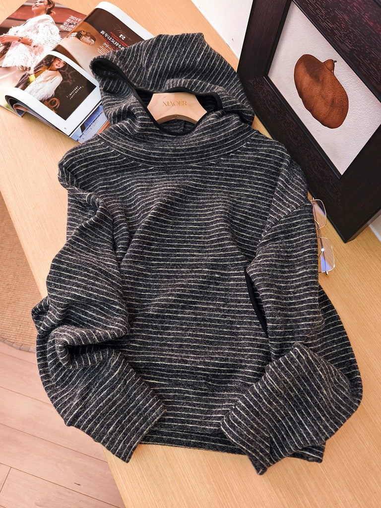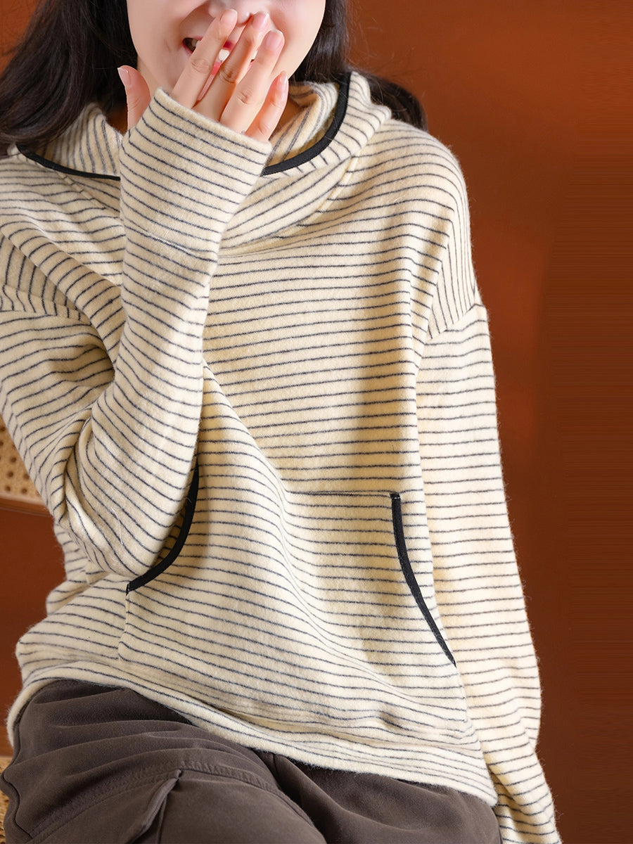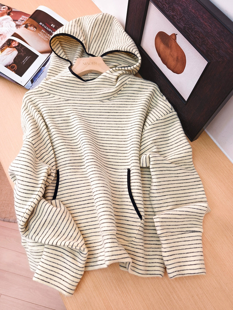 Dámská ležérní podzimní pruhovaná kapsa s měkkou mikinou