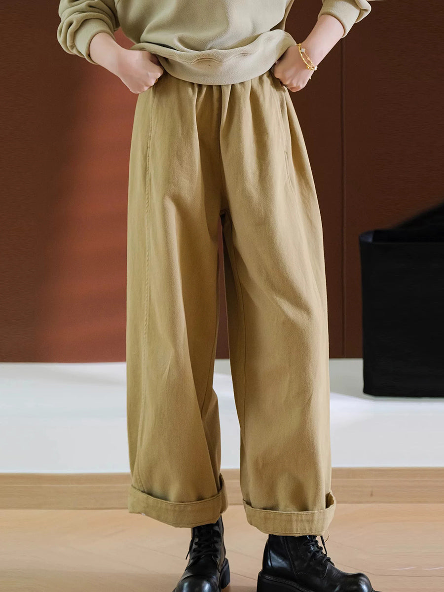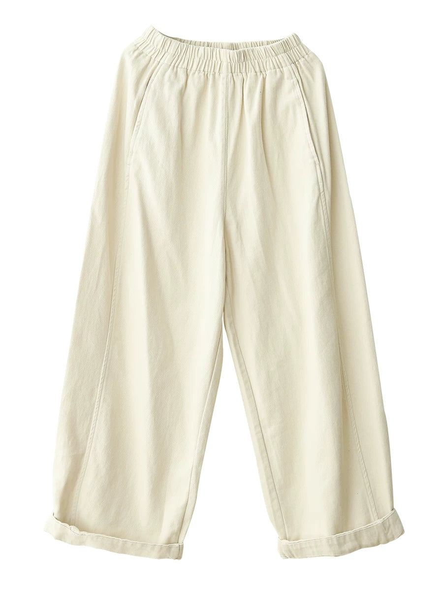 Dámské ležérní kalhoty s širokými nohavicemi, 100% bavlna, čisté barvy