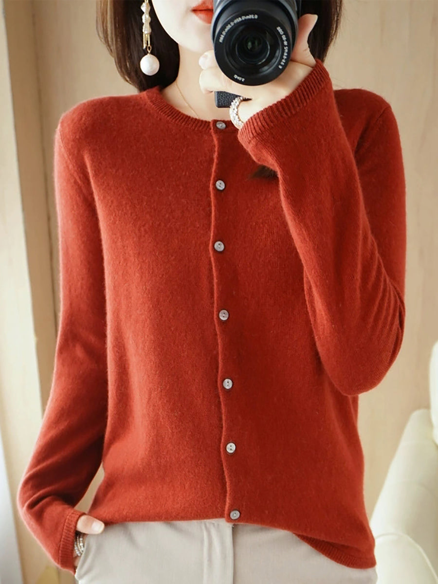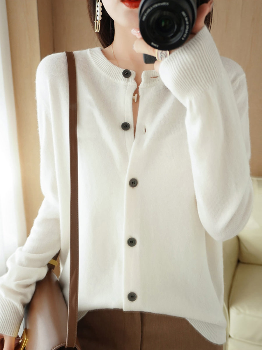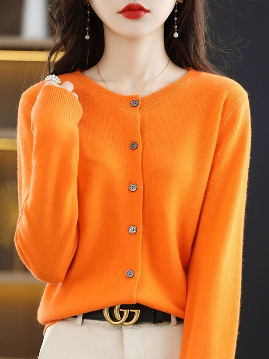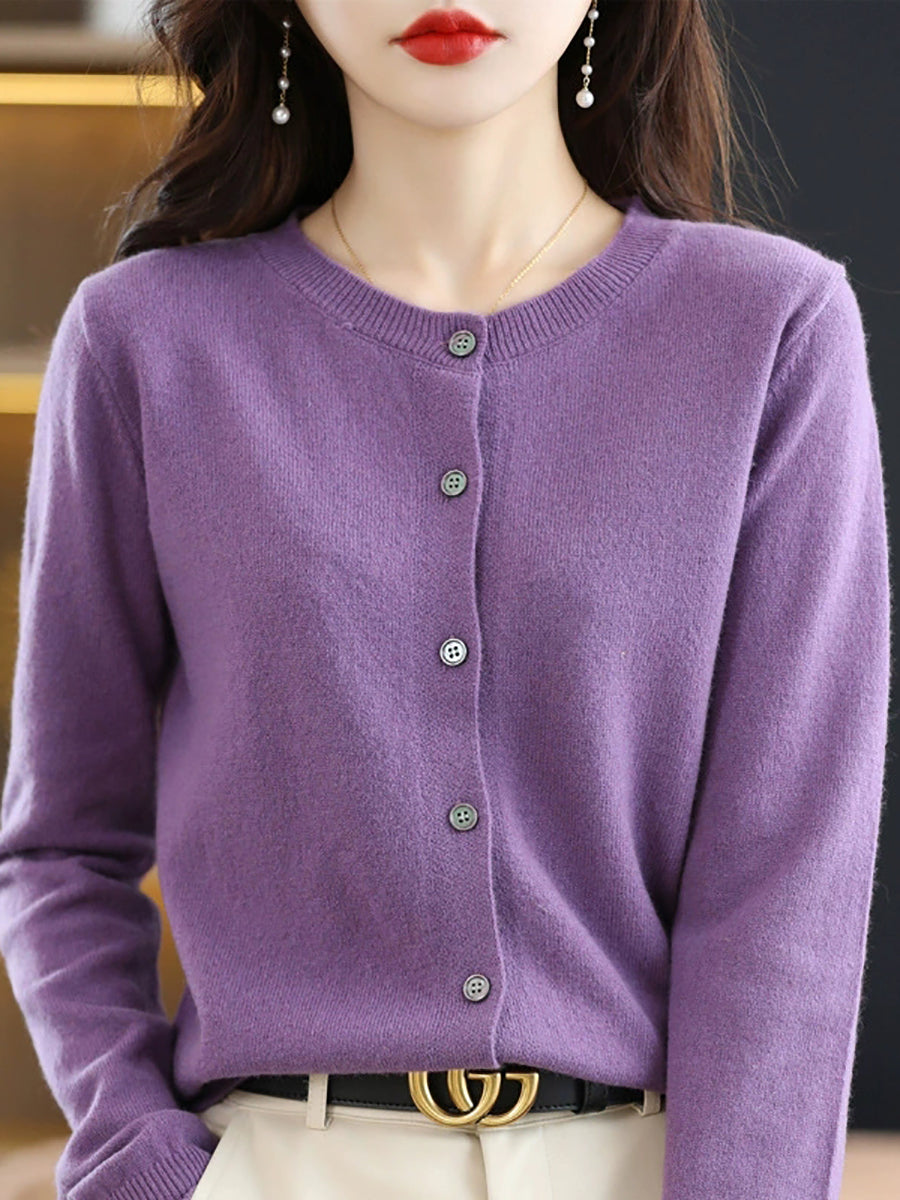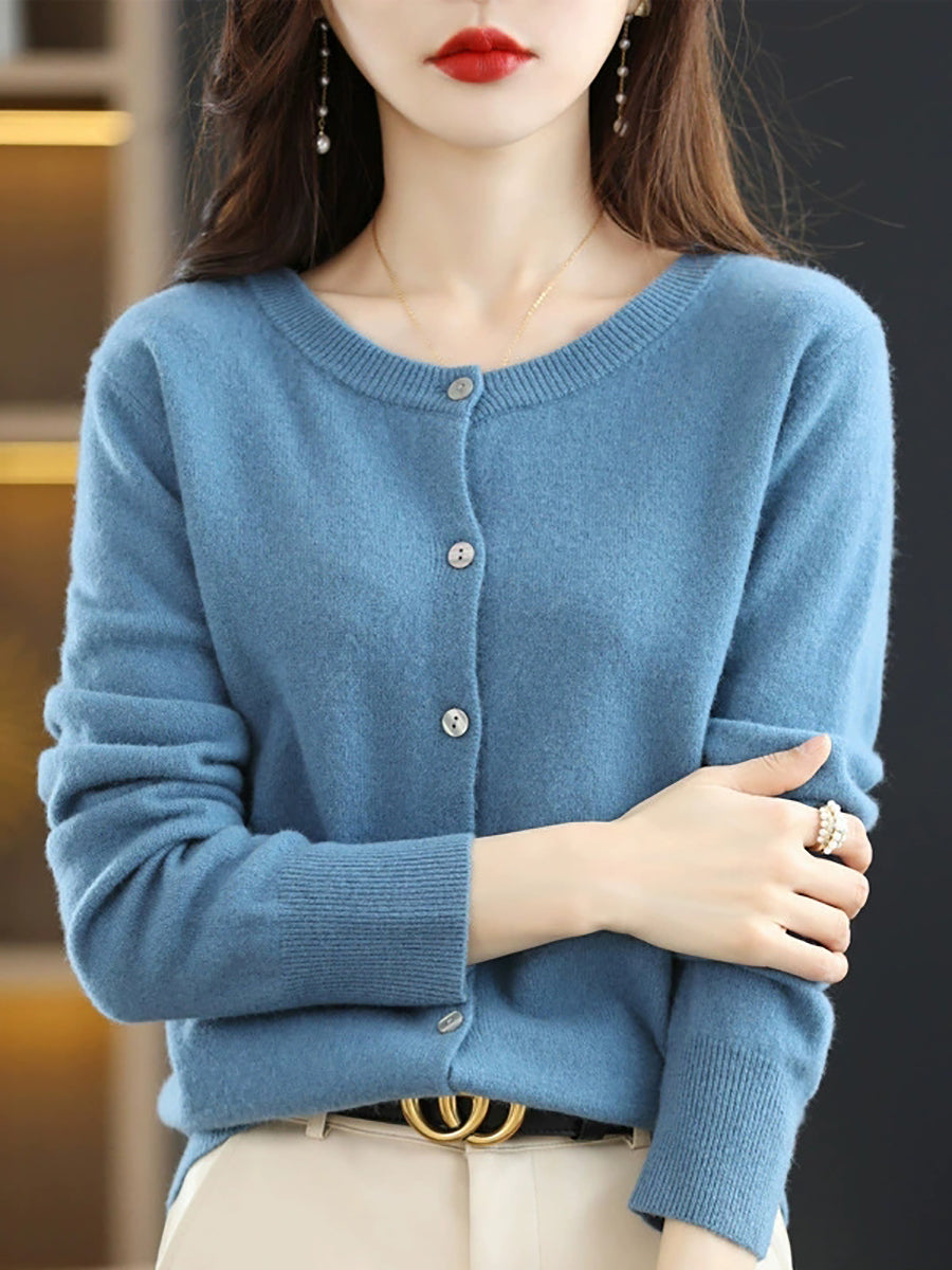 Dámský ležérní jarní čistě barevný svetr s výstřihem do O-neck