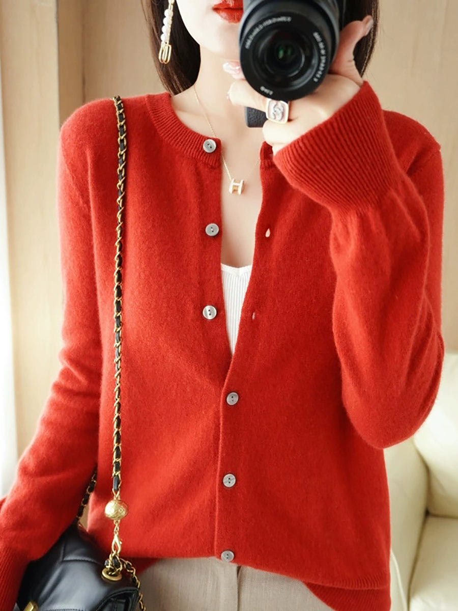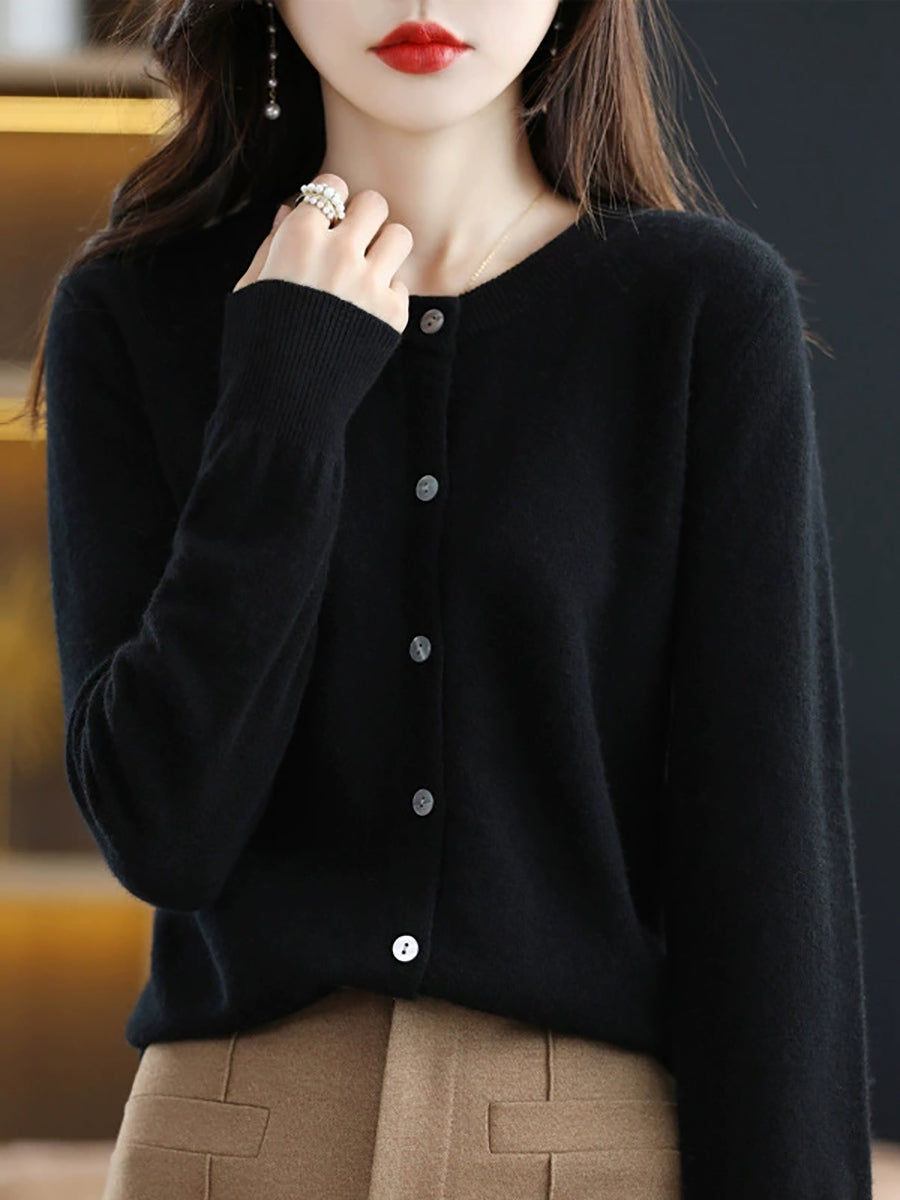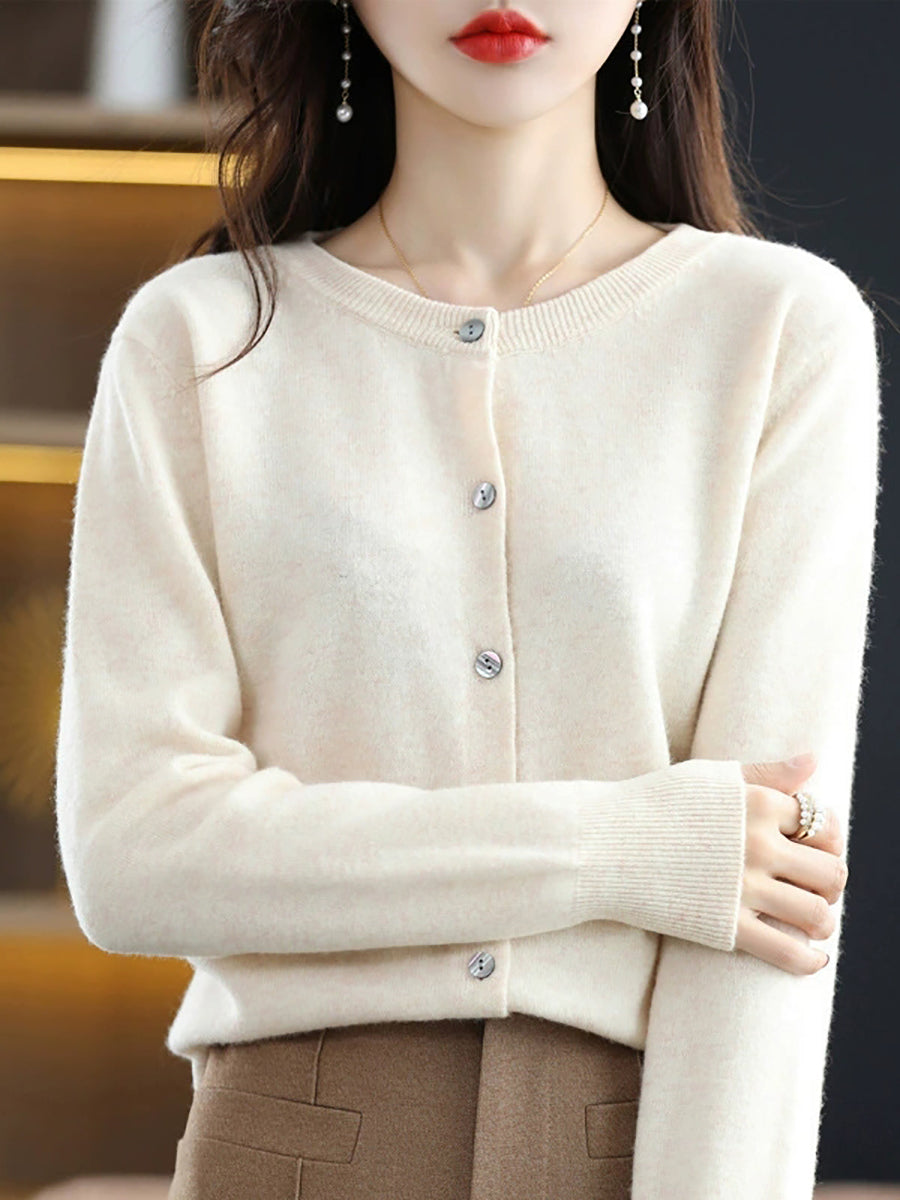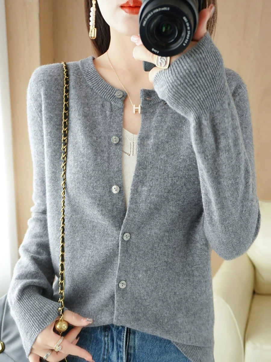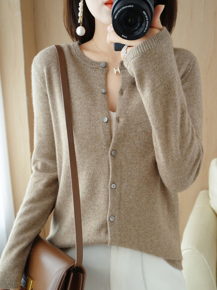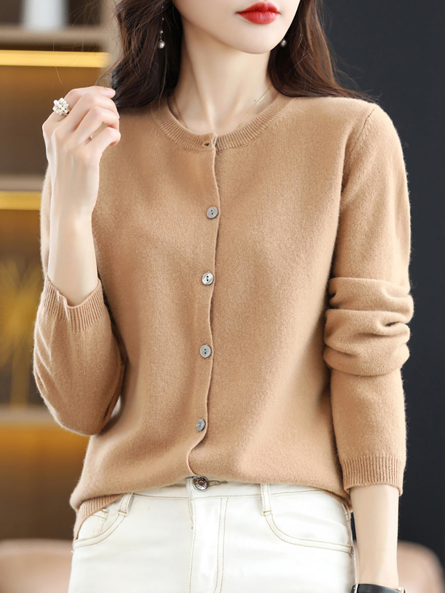 Dámský ležérní jarní čistě barevný svetr s výstřihem do O-neck
