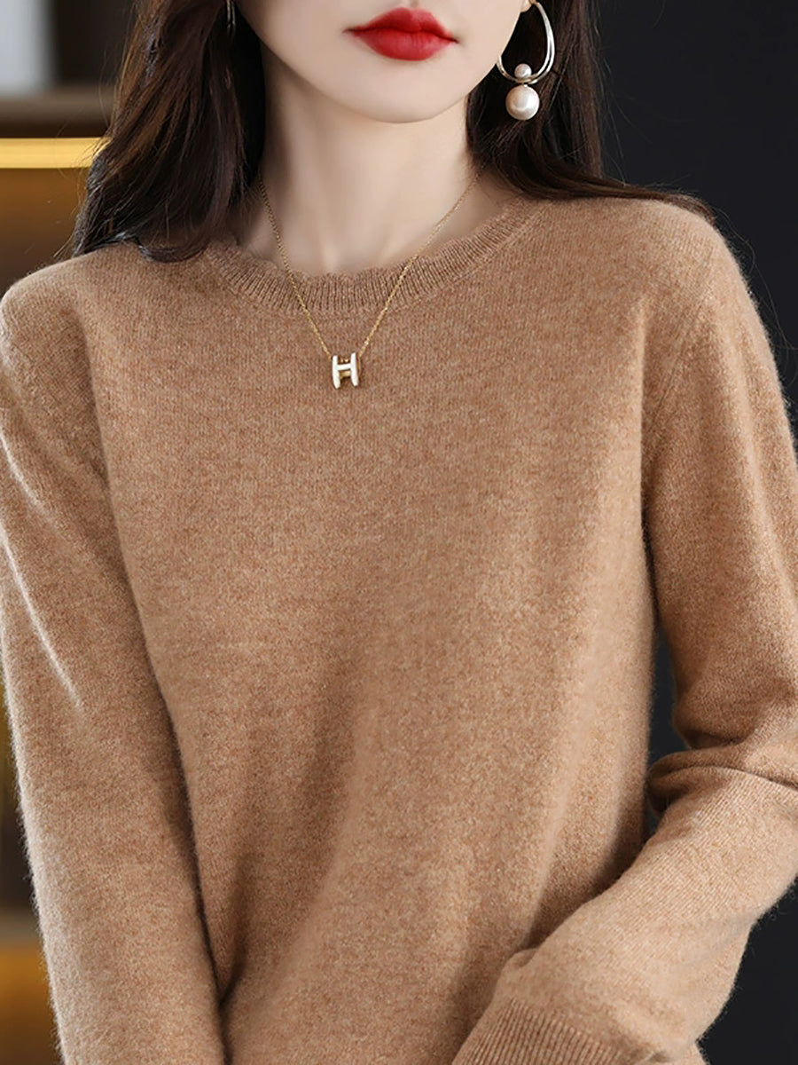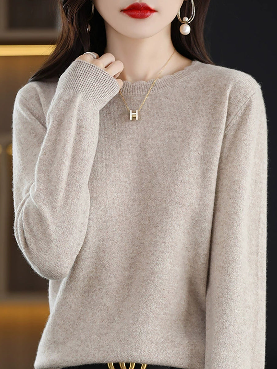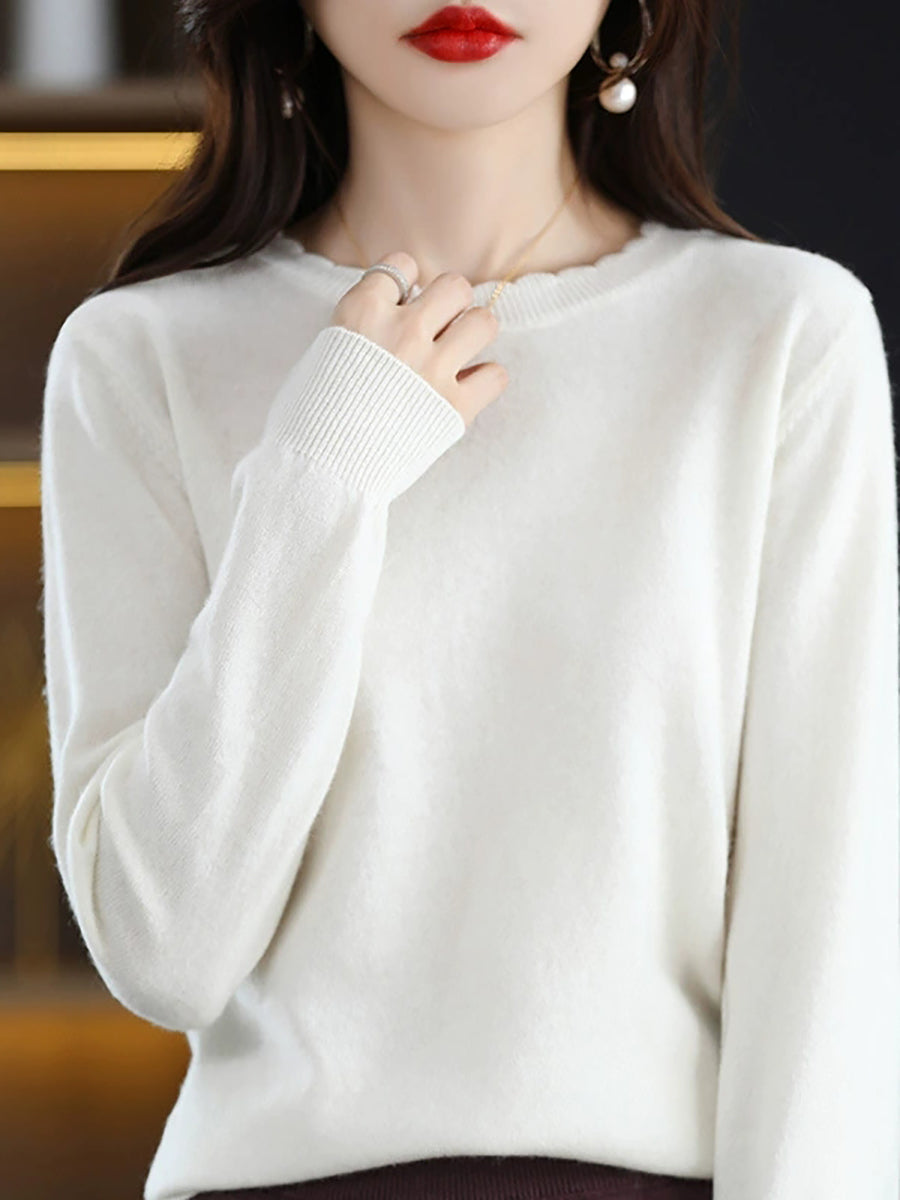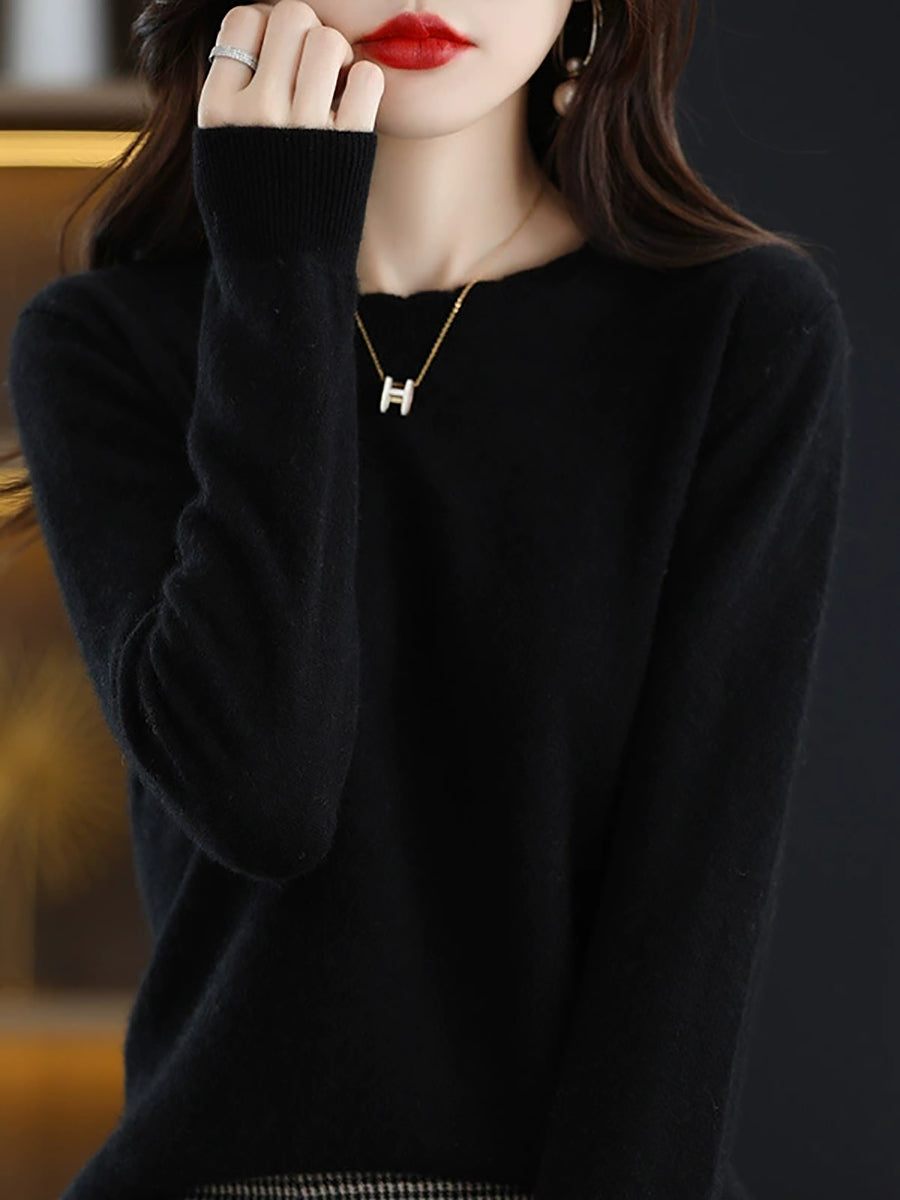 Dámský ležérní jarní čistě barevný svetr s výstřihem do O-neck