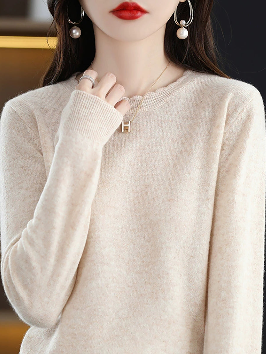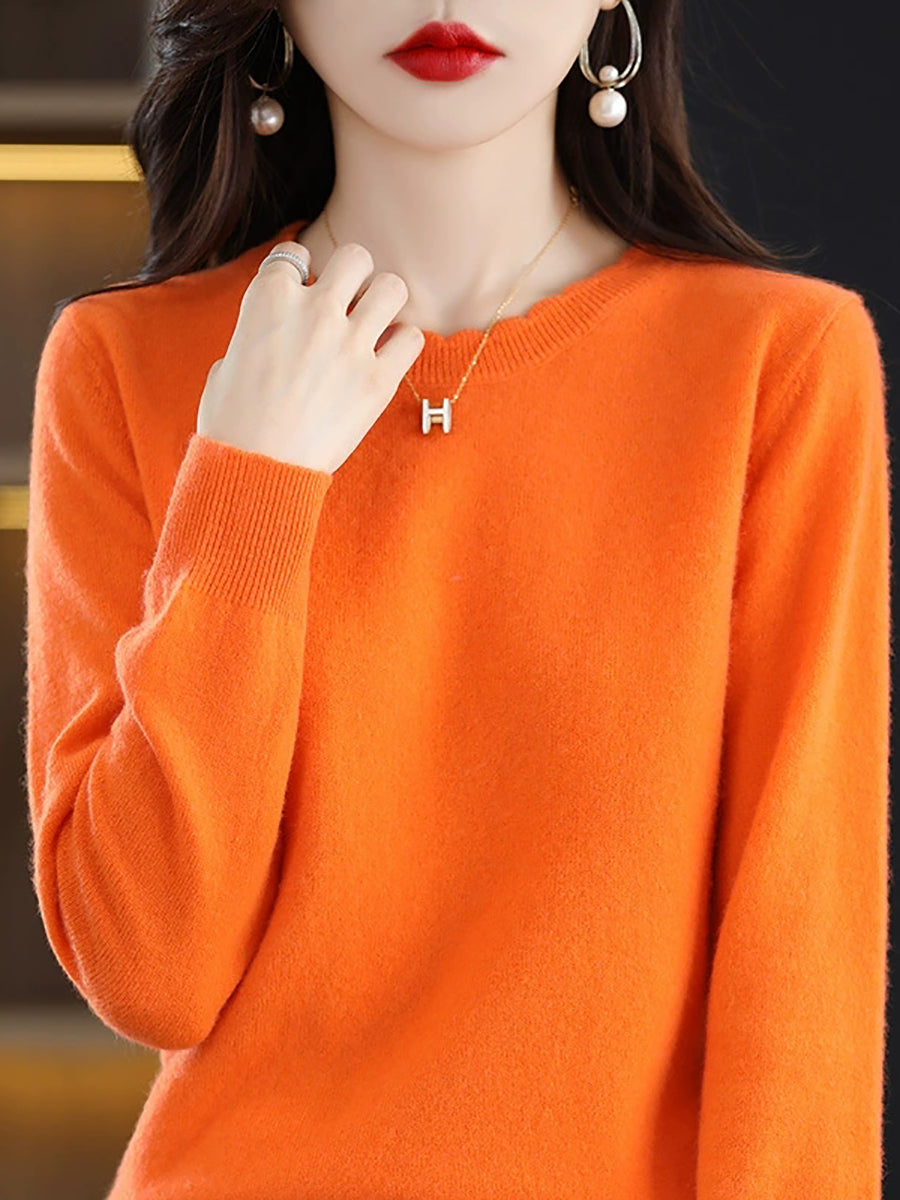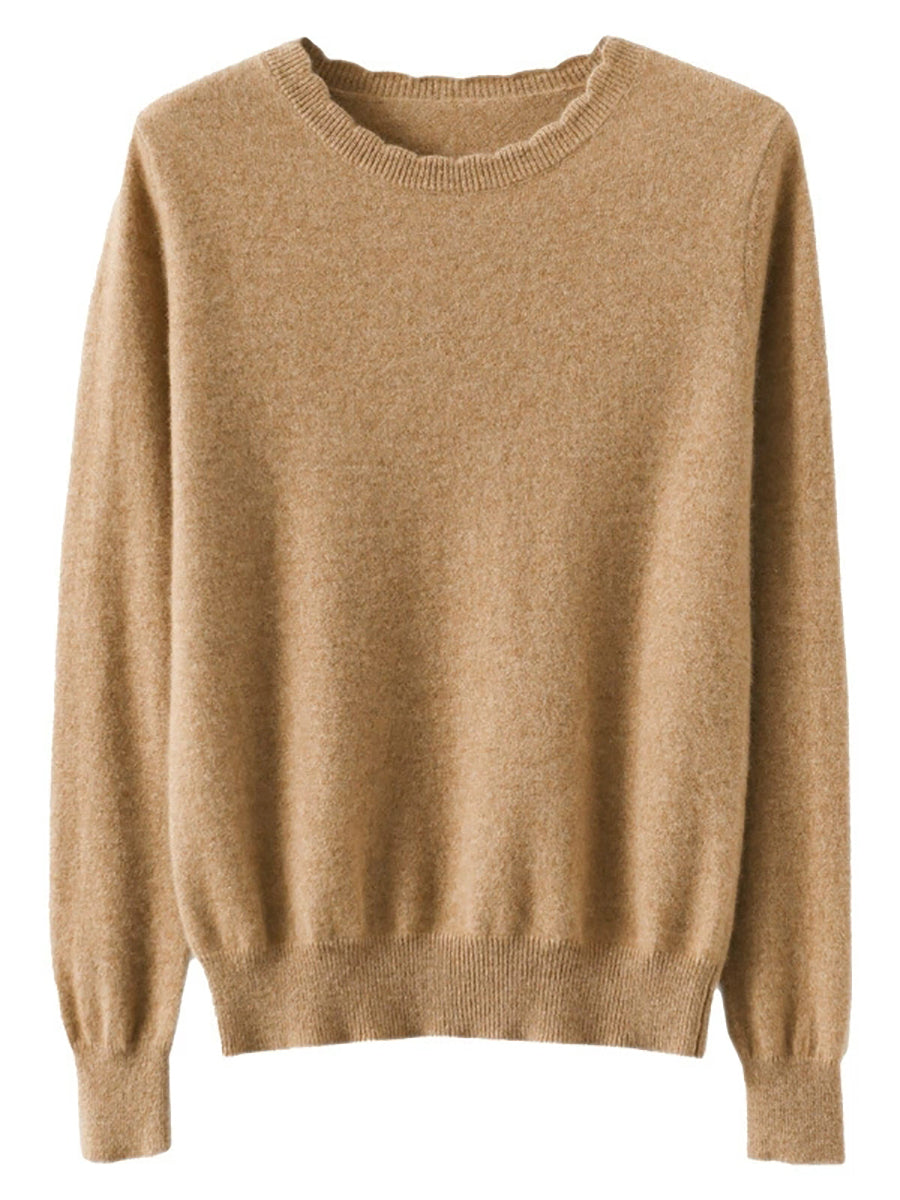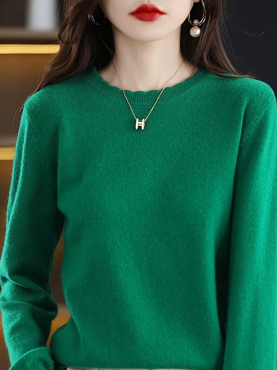 Dámský ležérní jarní čistě barevný svetr s výstřihem do O-neck