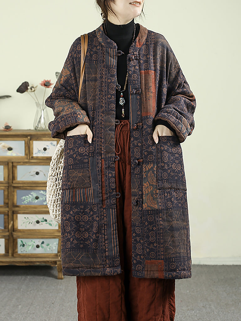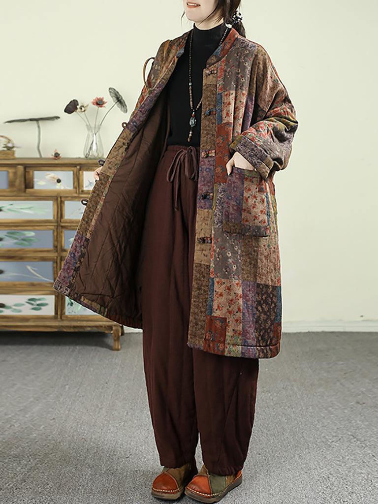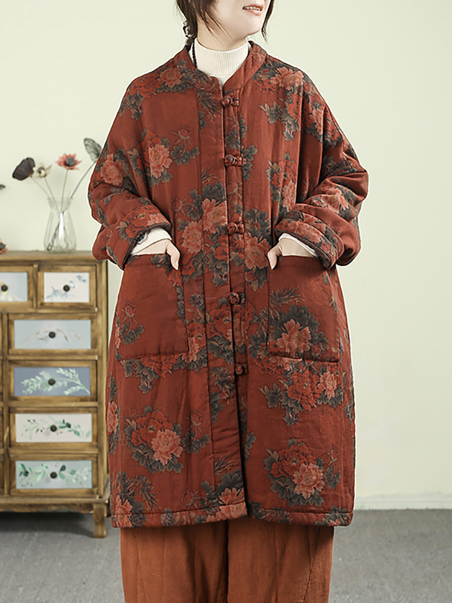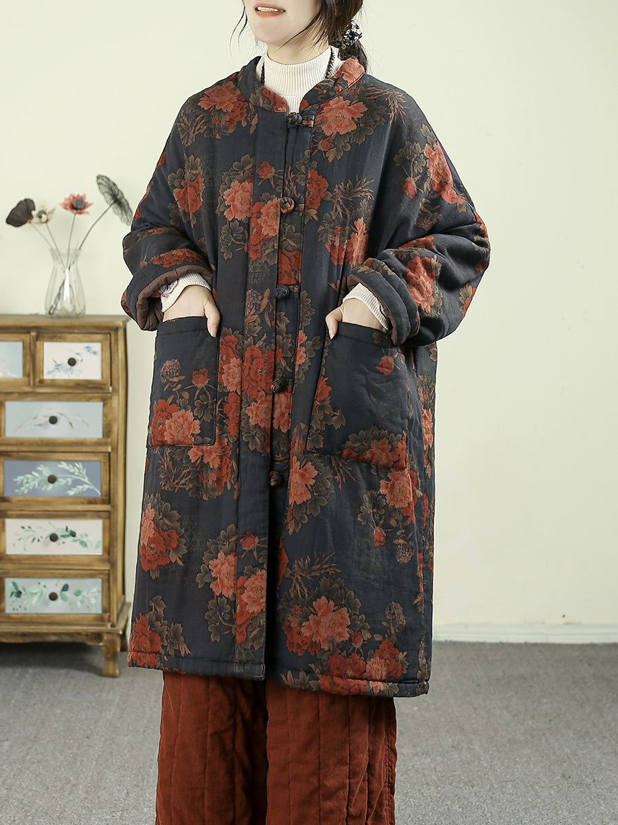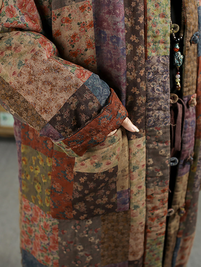 Dámský etnický podzimní květinový prošívaný kabát ze 100% bavlny