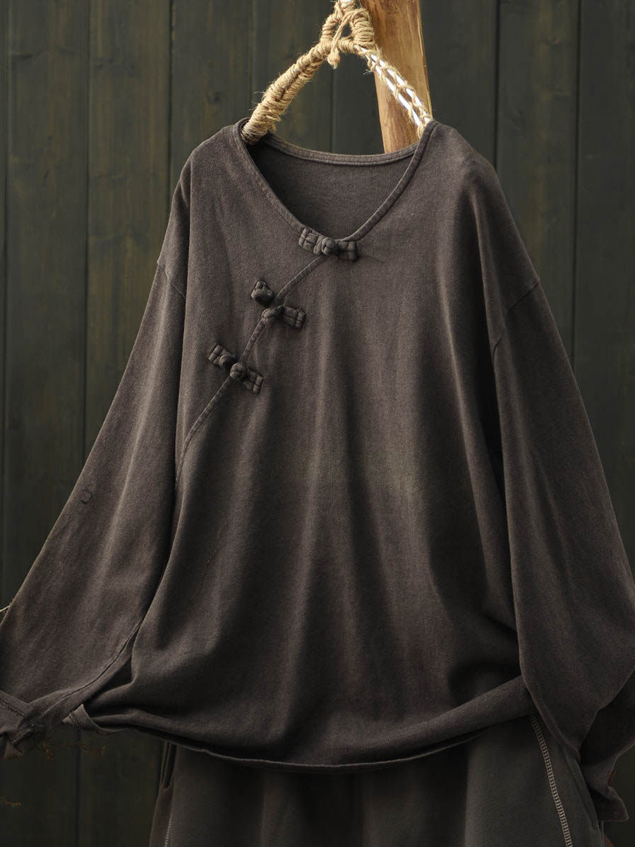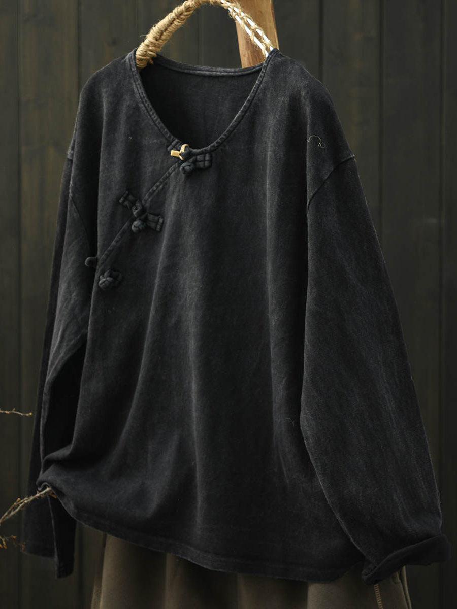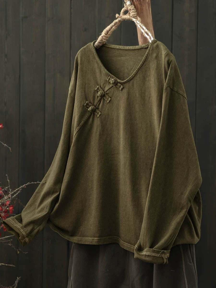 Dámské etnické jarní čisté barevné bavlněné tričko s výstřihem do O-neck