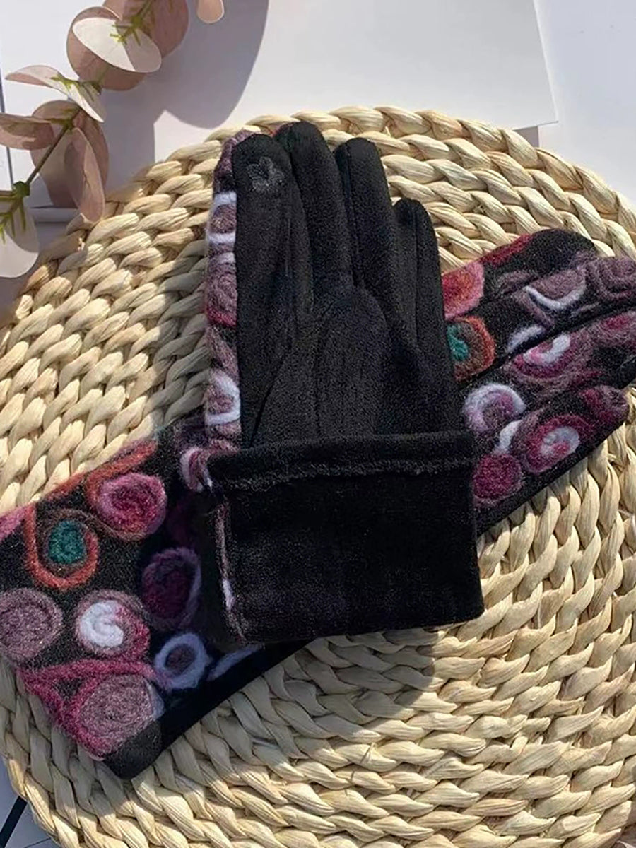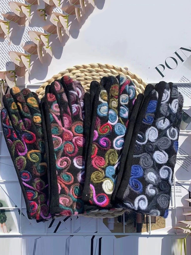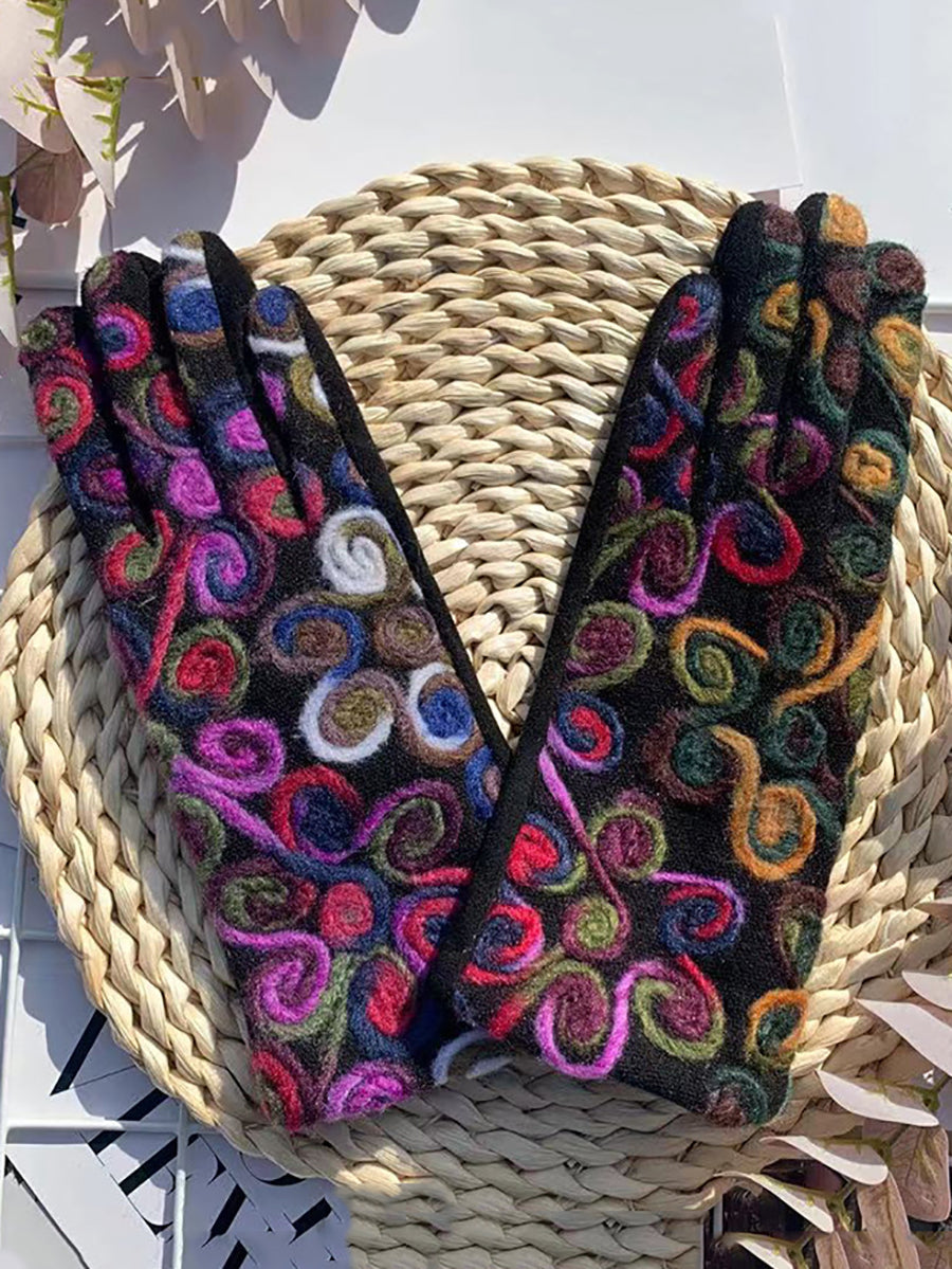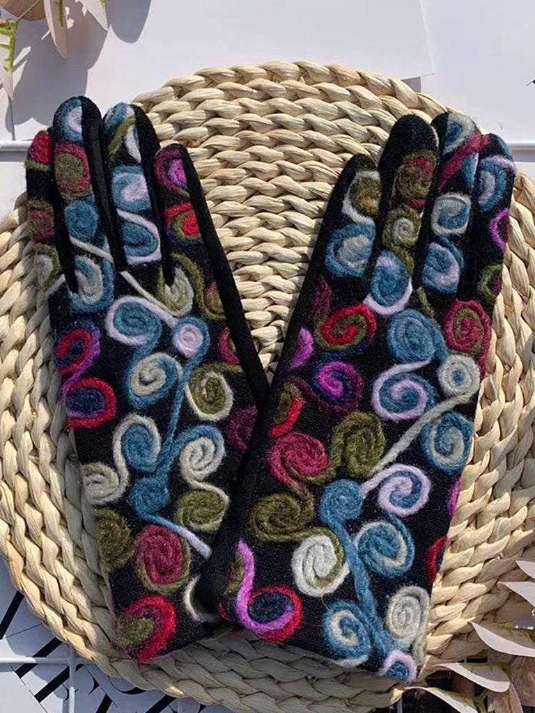 Dámské teplé cyklistické rukavice s retro výšivkou